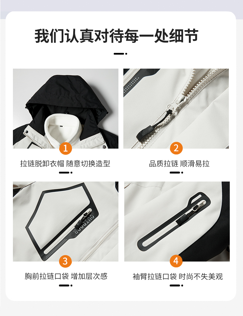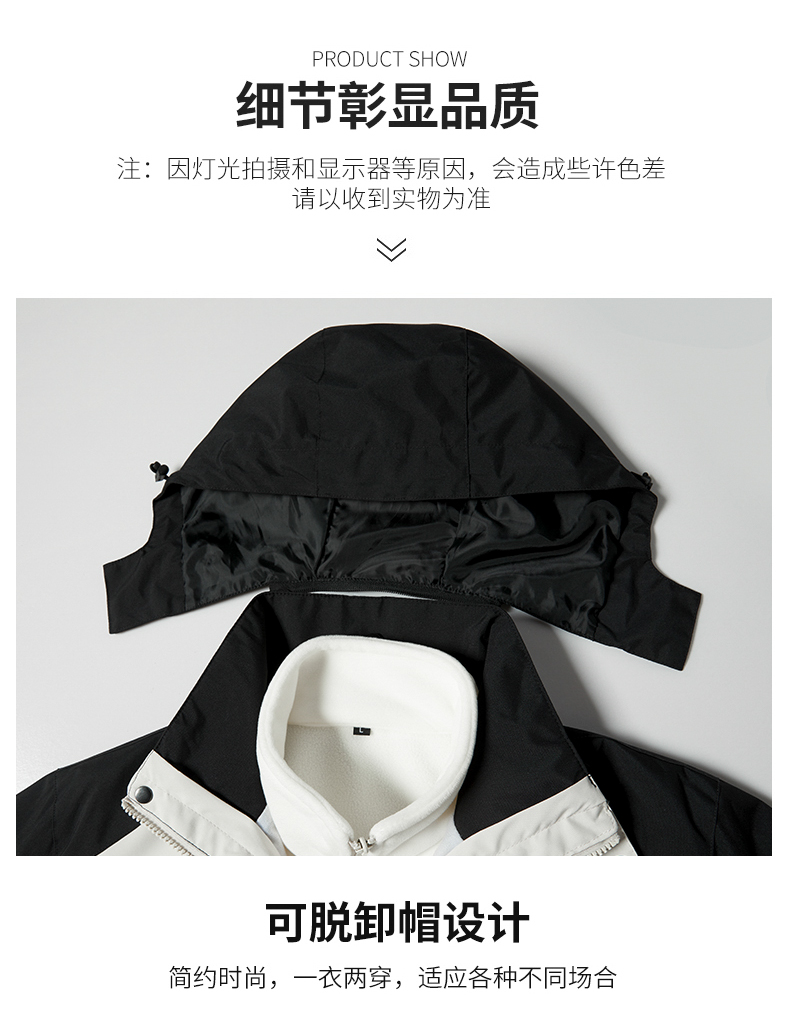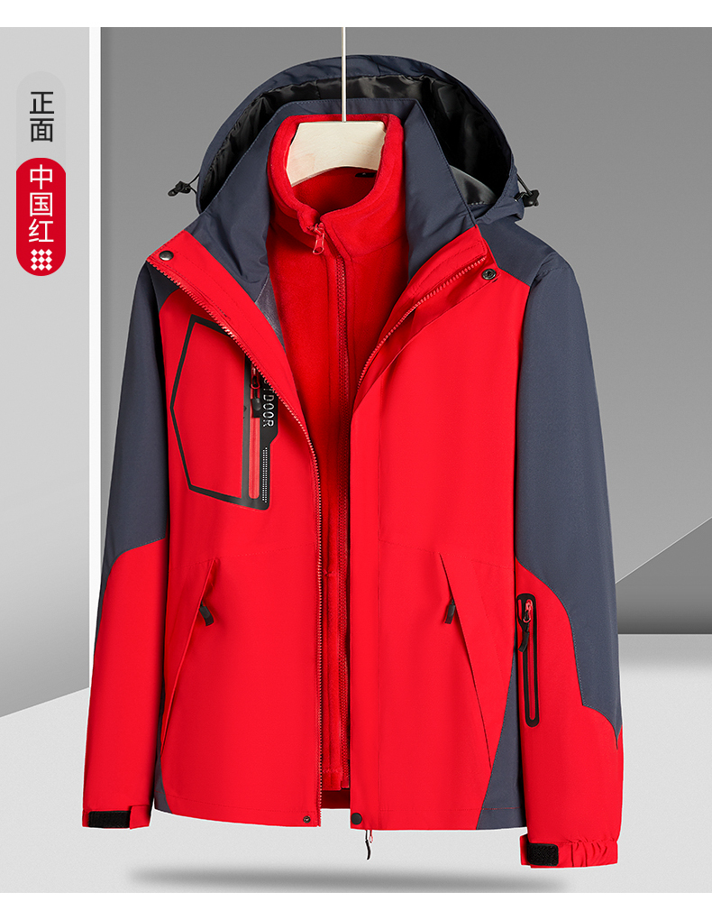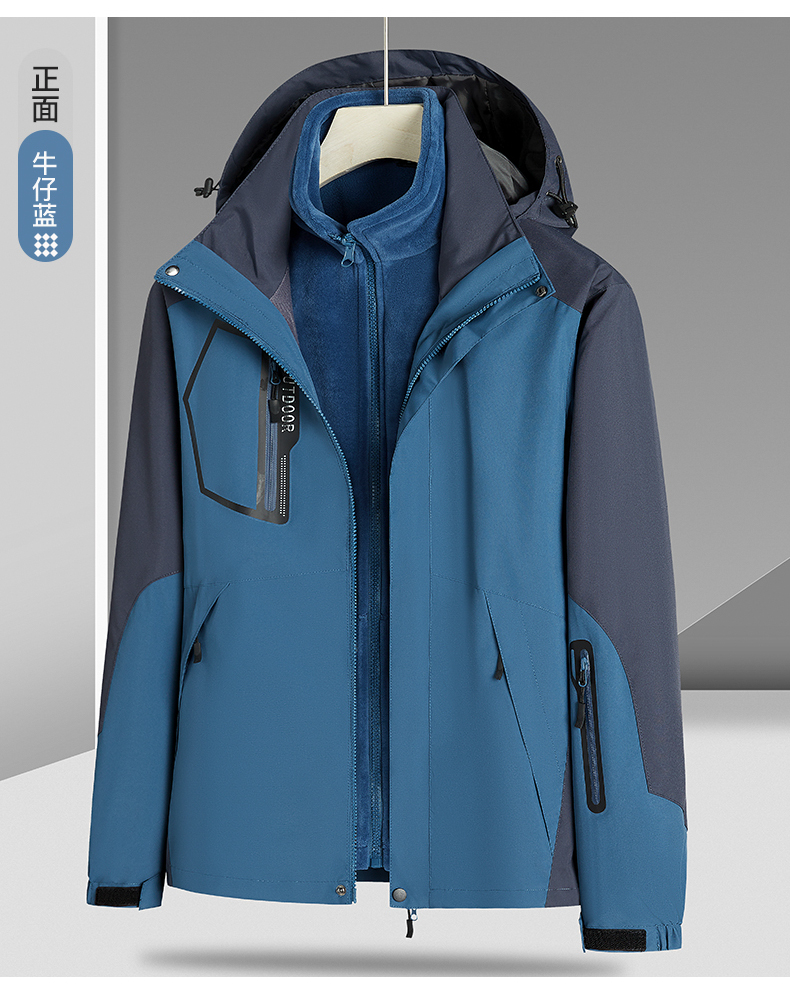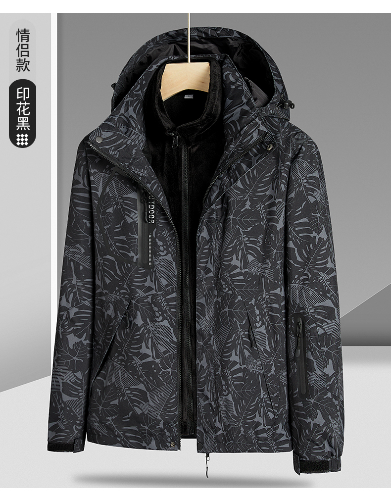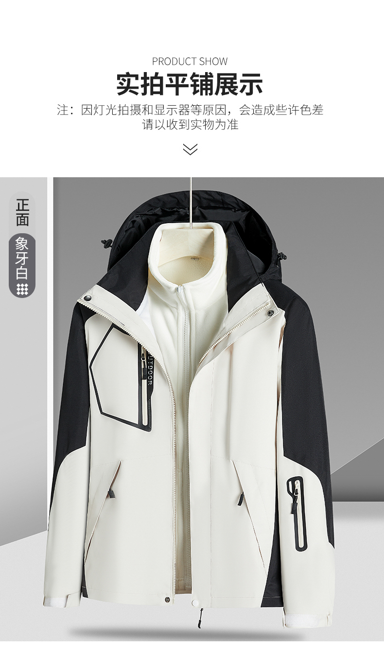 【Q】【新款DNY】大依优型大码三合一冲锋衣加绒保暖两件套内胆可拆防风防水户外加肥加大号外套男士上衣