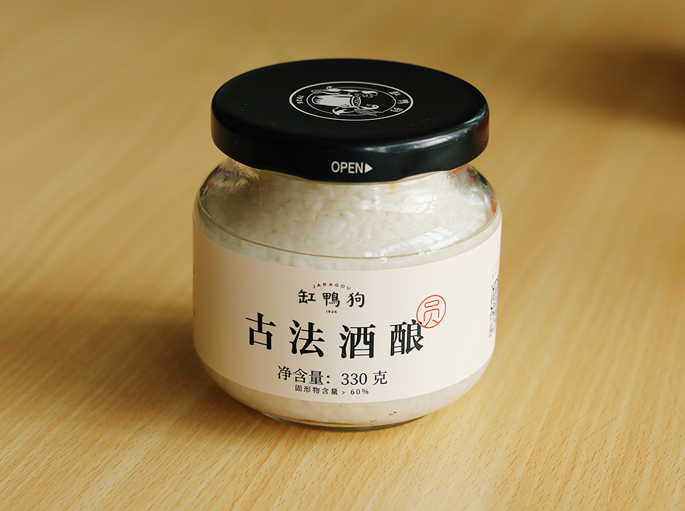 幸好,古法酒酿的技艺还在传承有序。百年老字号缸鸭狗,一直以来都秉承古法酿造的纯正酒酿。用诚意,也用时间,精细化地掌控工序、温度和发酵时间,只为保证古法酒酿被更多人所熟知和吃到