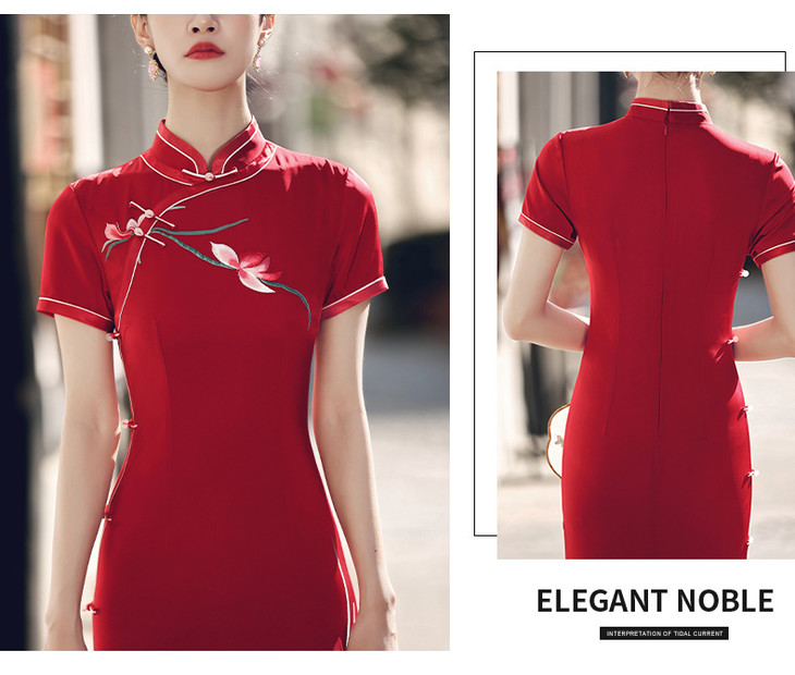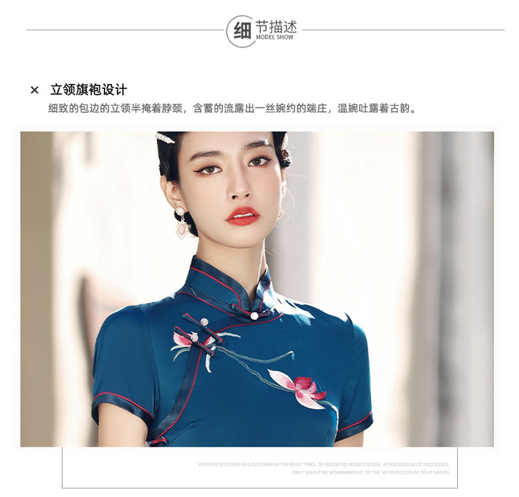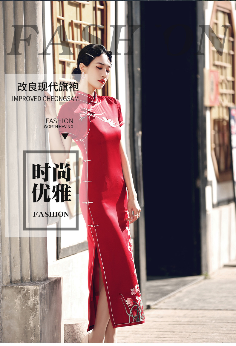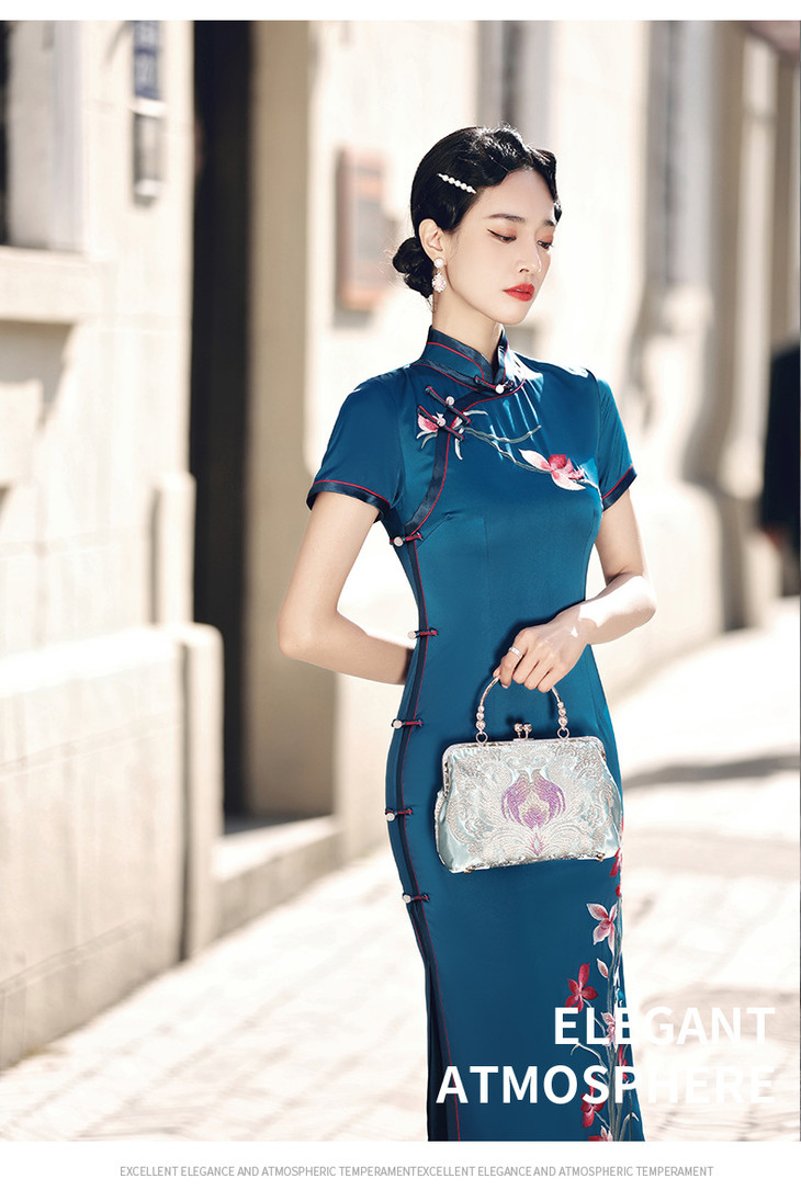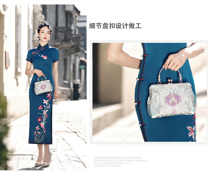 ML- 1607. 2021新款中国风复古绣花旗袍 端庄气质长款醋酸旗袍礼服