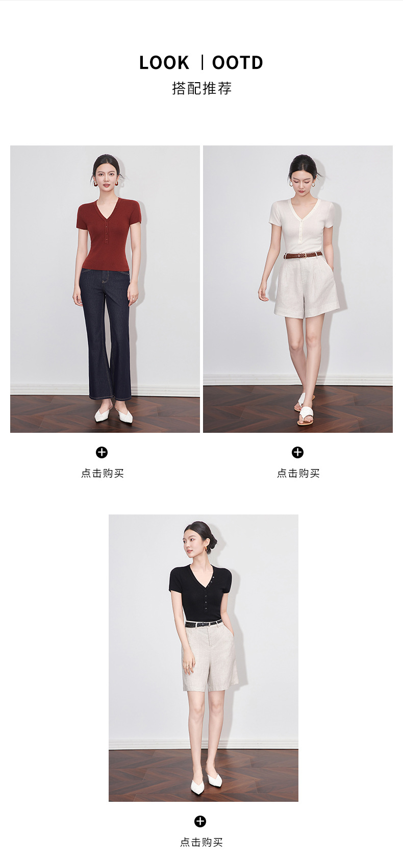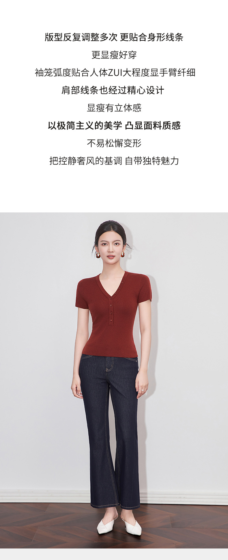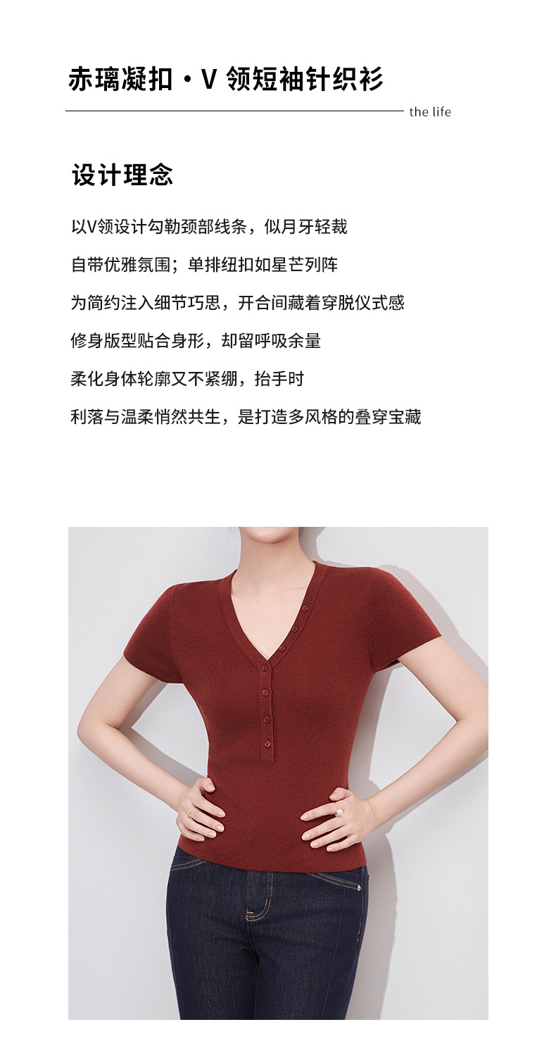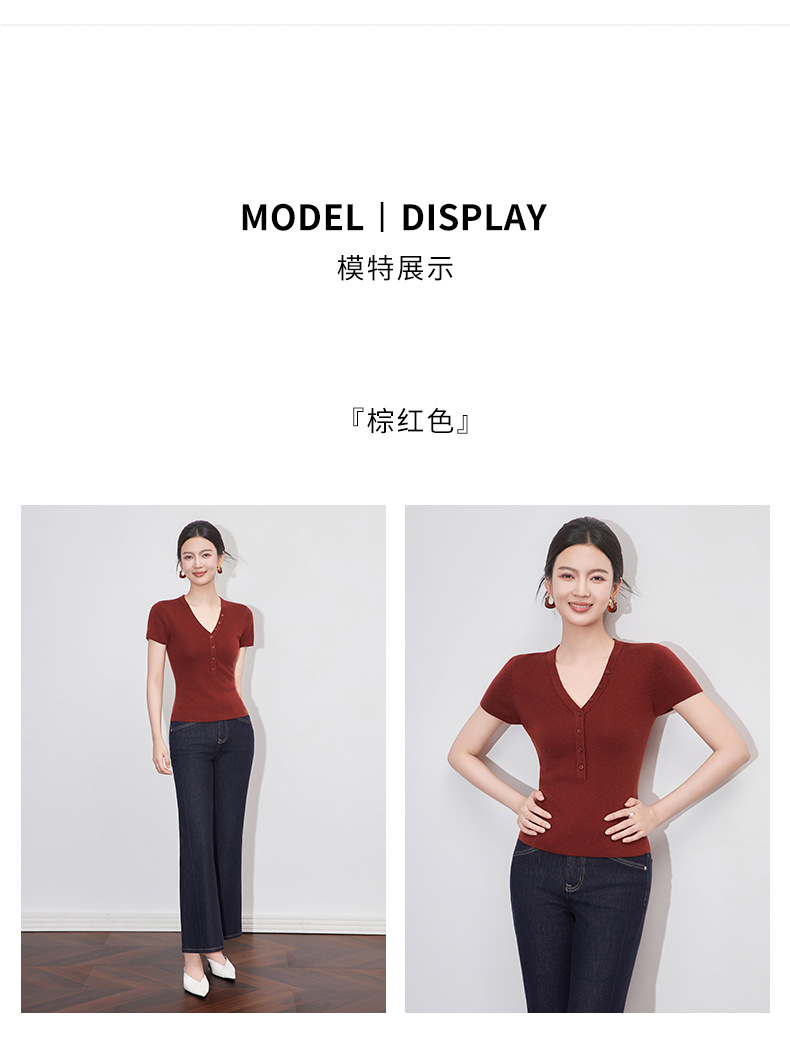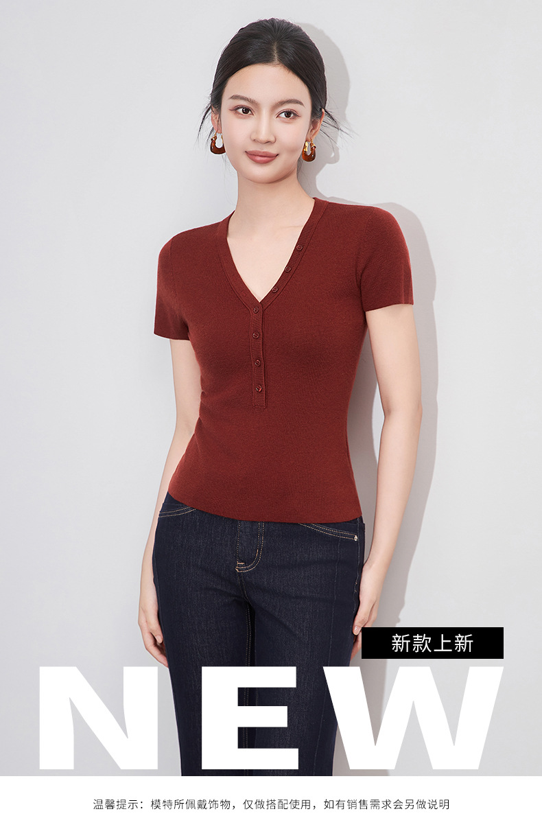 「高货wl」全新升级【铂金会员174/天猫229/差价55】(03453)洛诗琳简约通勤气质上衣2025夏季超细美丽诺羊毛针织T恤