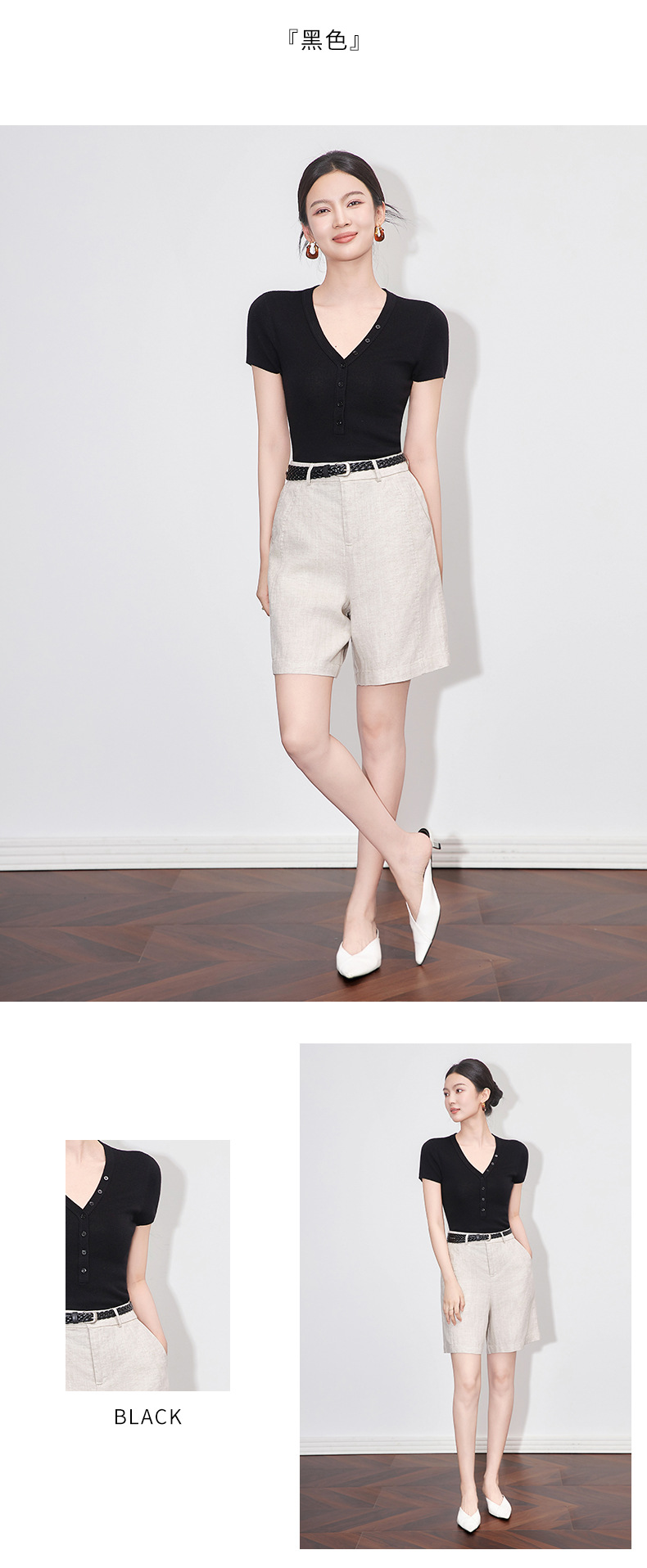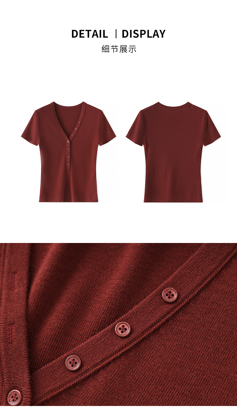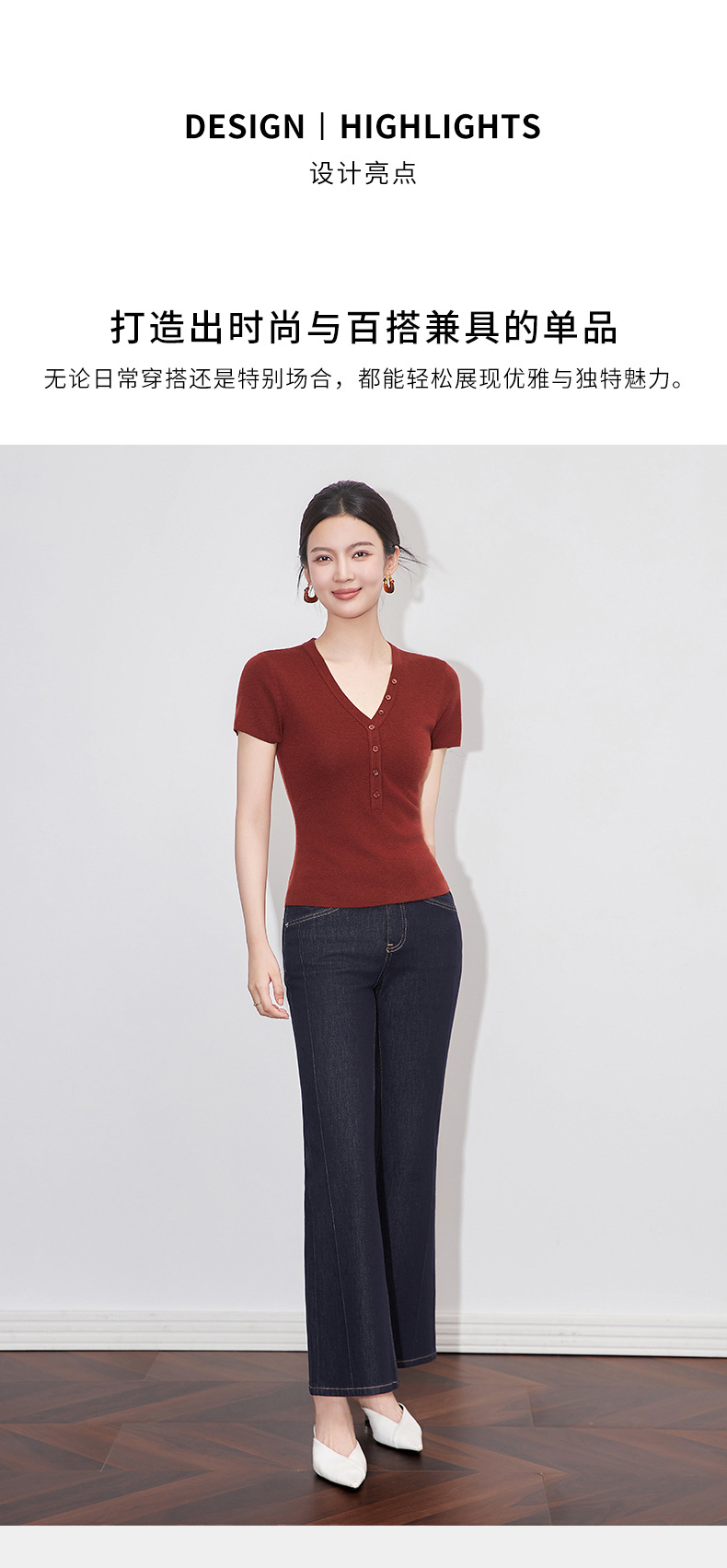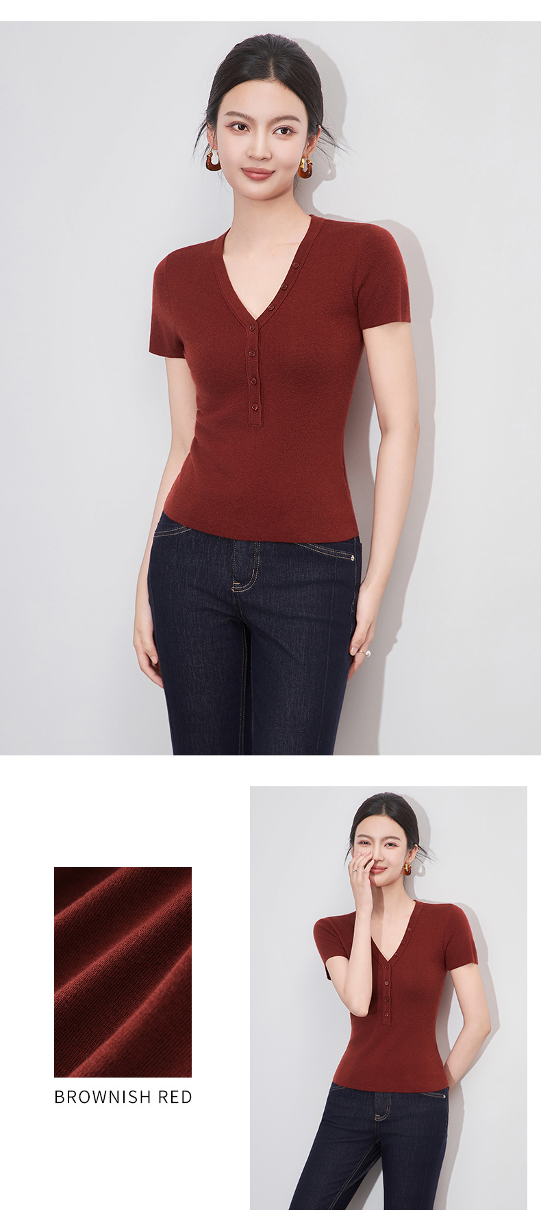 「高货wl」全新升级【铂金会员174/天猫229/差价55】(03453)洛诗琳简约通勤气质上衣2025夏季超细美丽诺羊毛针织T恤