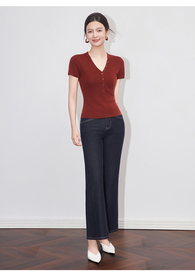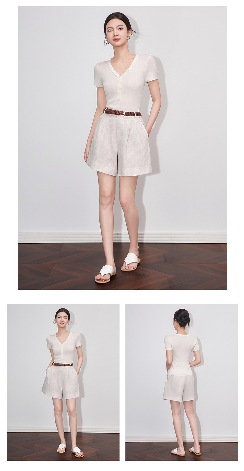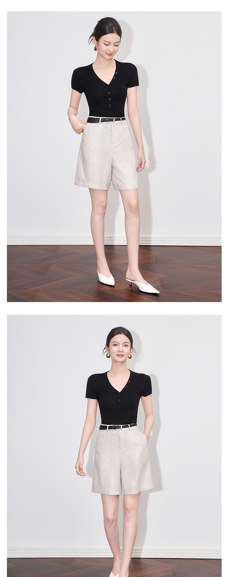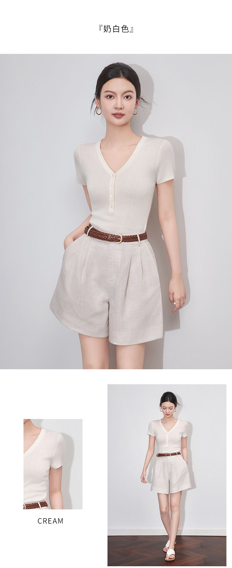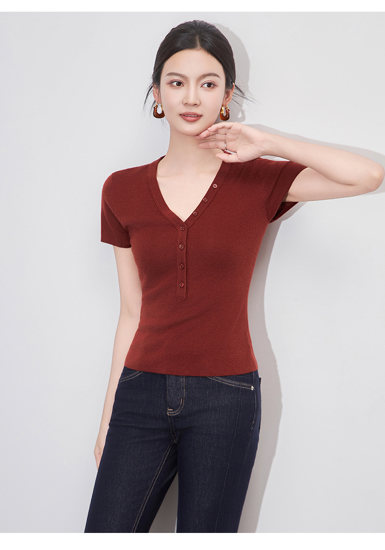 「高货wl」全新升级【铂金会员174/天猫229/差价55】(03453)洛诗琳简约通勤气质上衣2025夏季超细美丽诺羊毛针织T恤