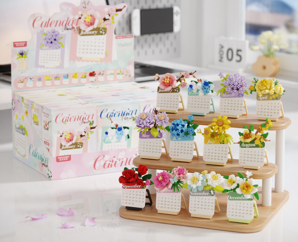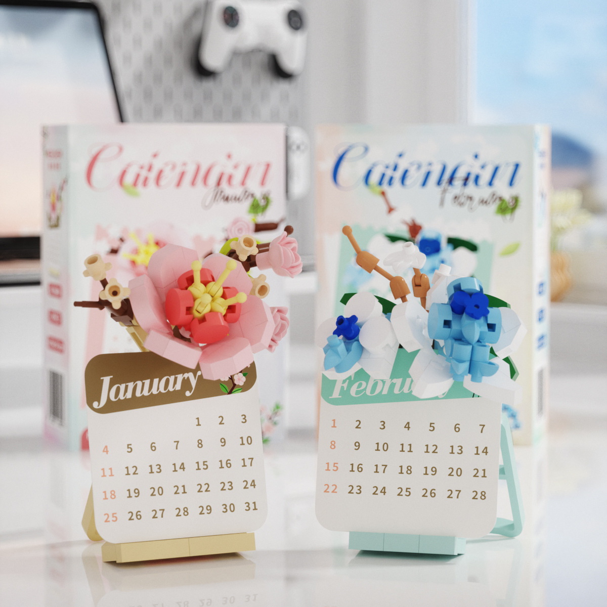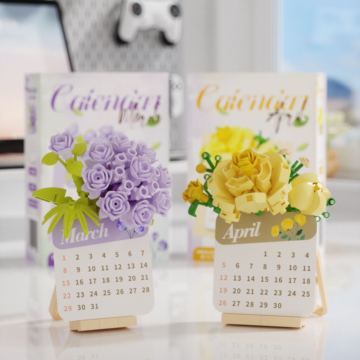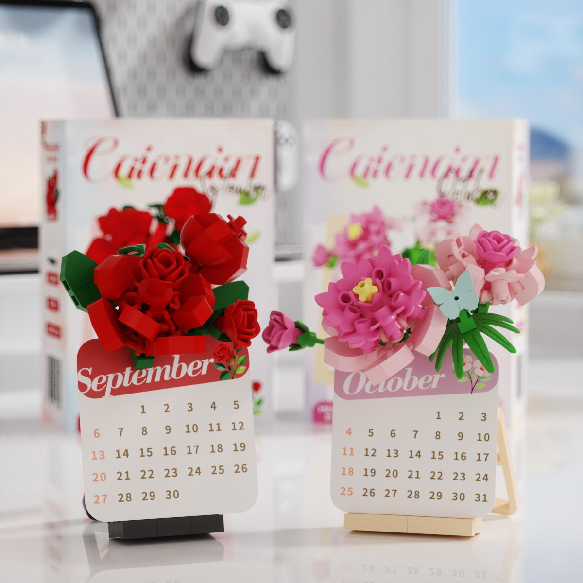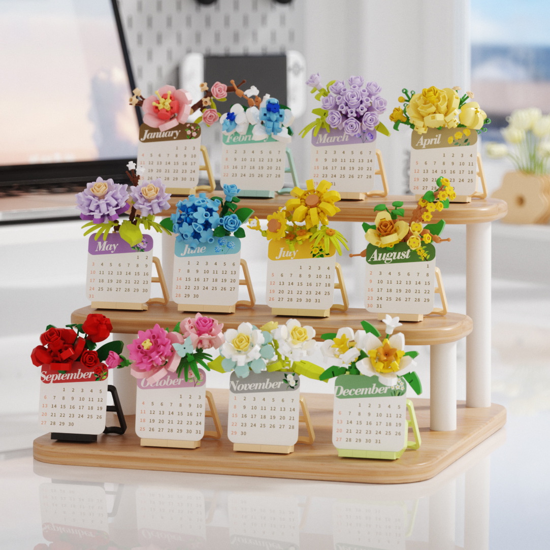 【2026花卉积木日历】十二月永生花卉桌面日历摆件拼装积木