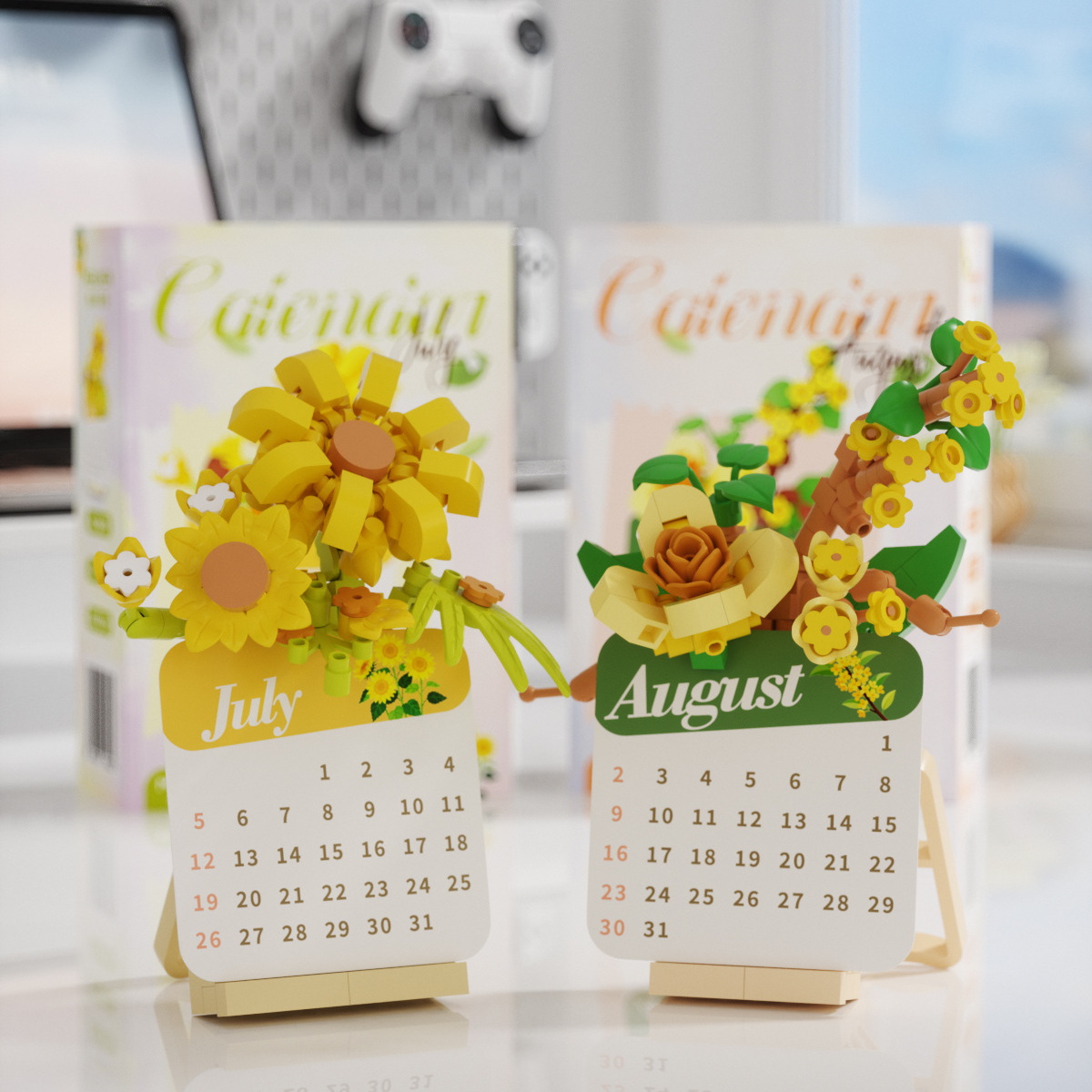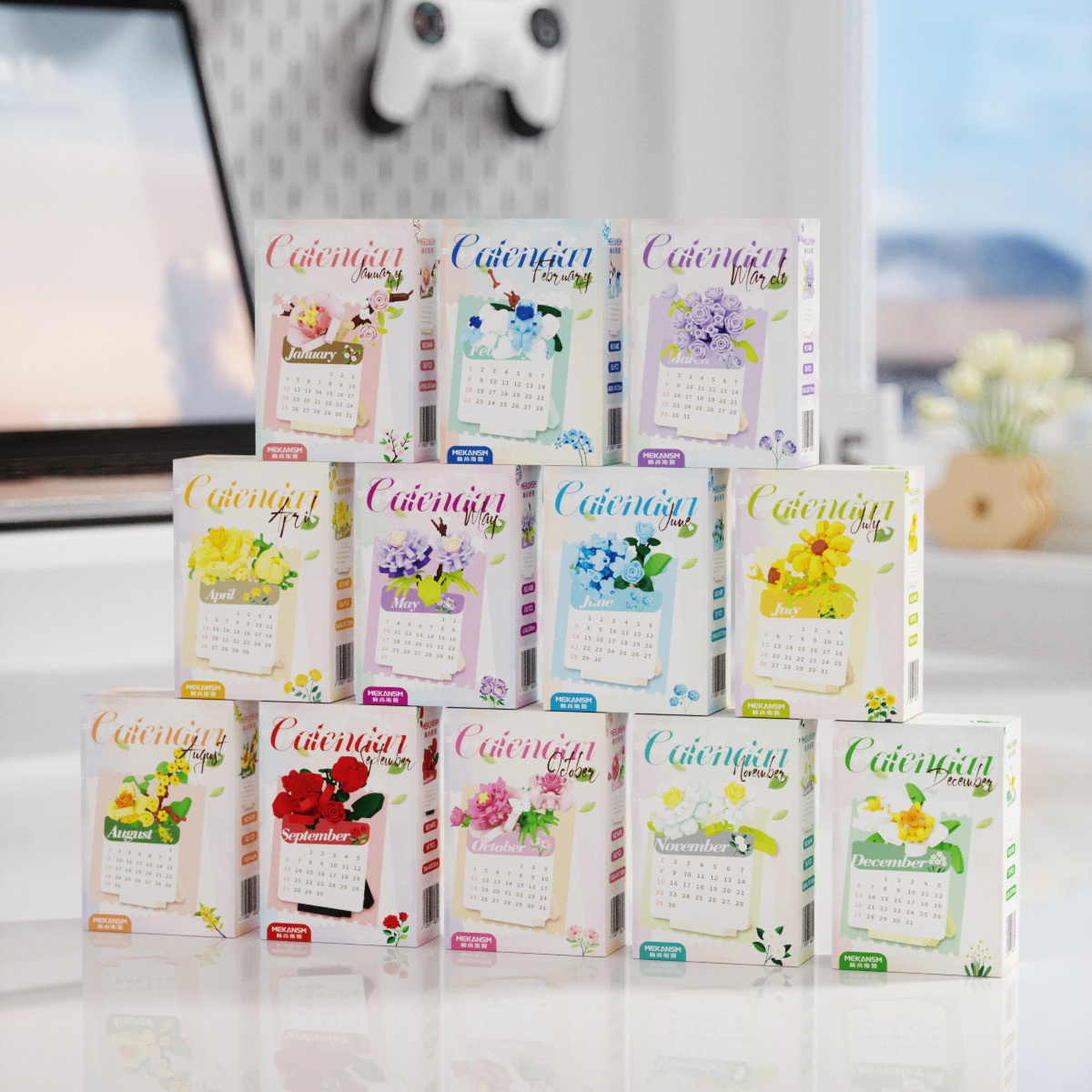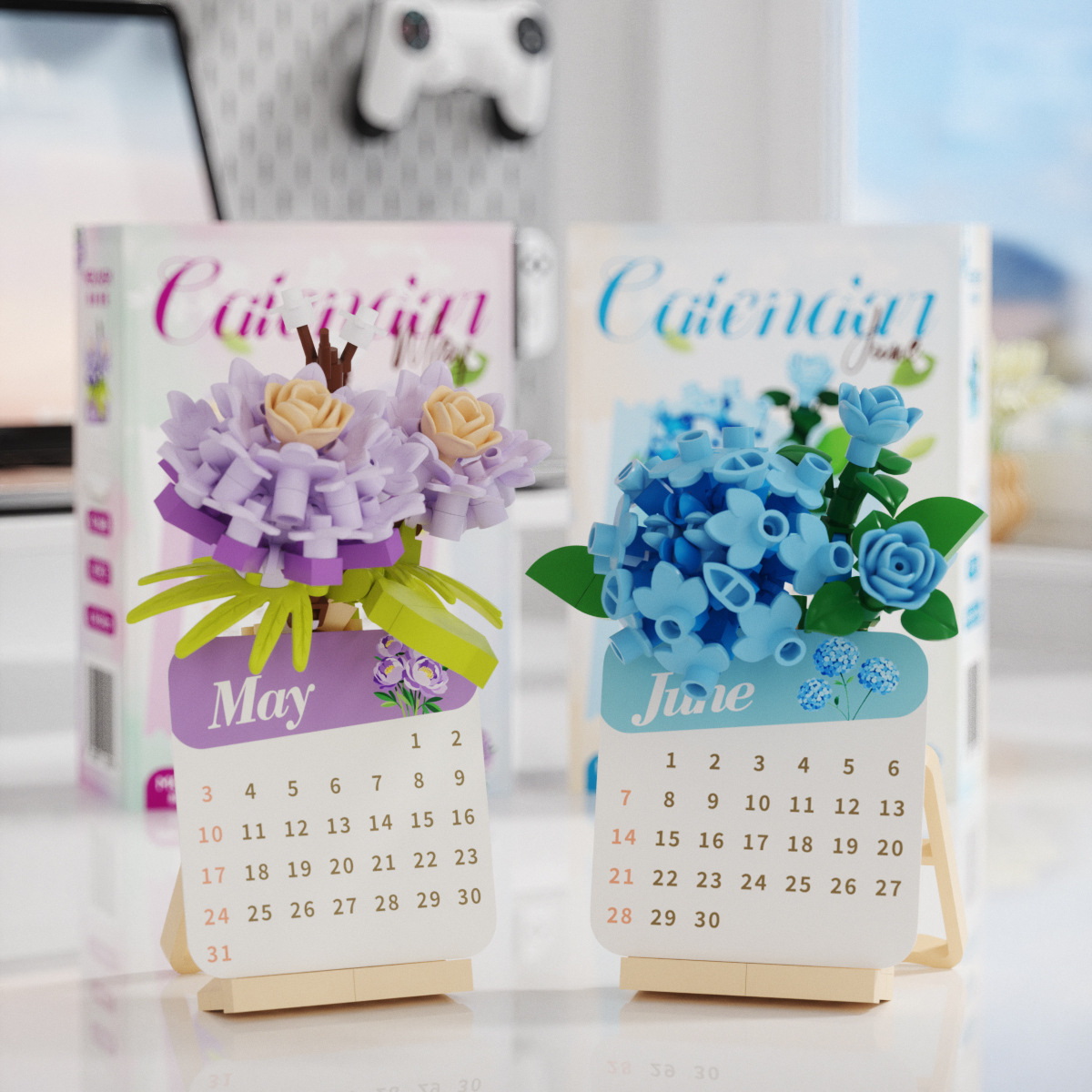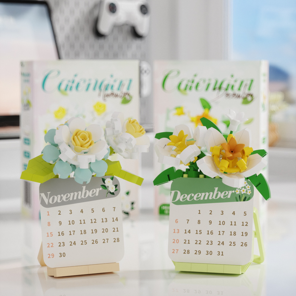 【2026花卉积木日历】十二月永生花卉桌面日历摆件拼装积木