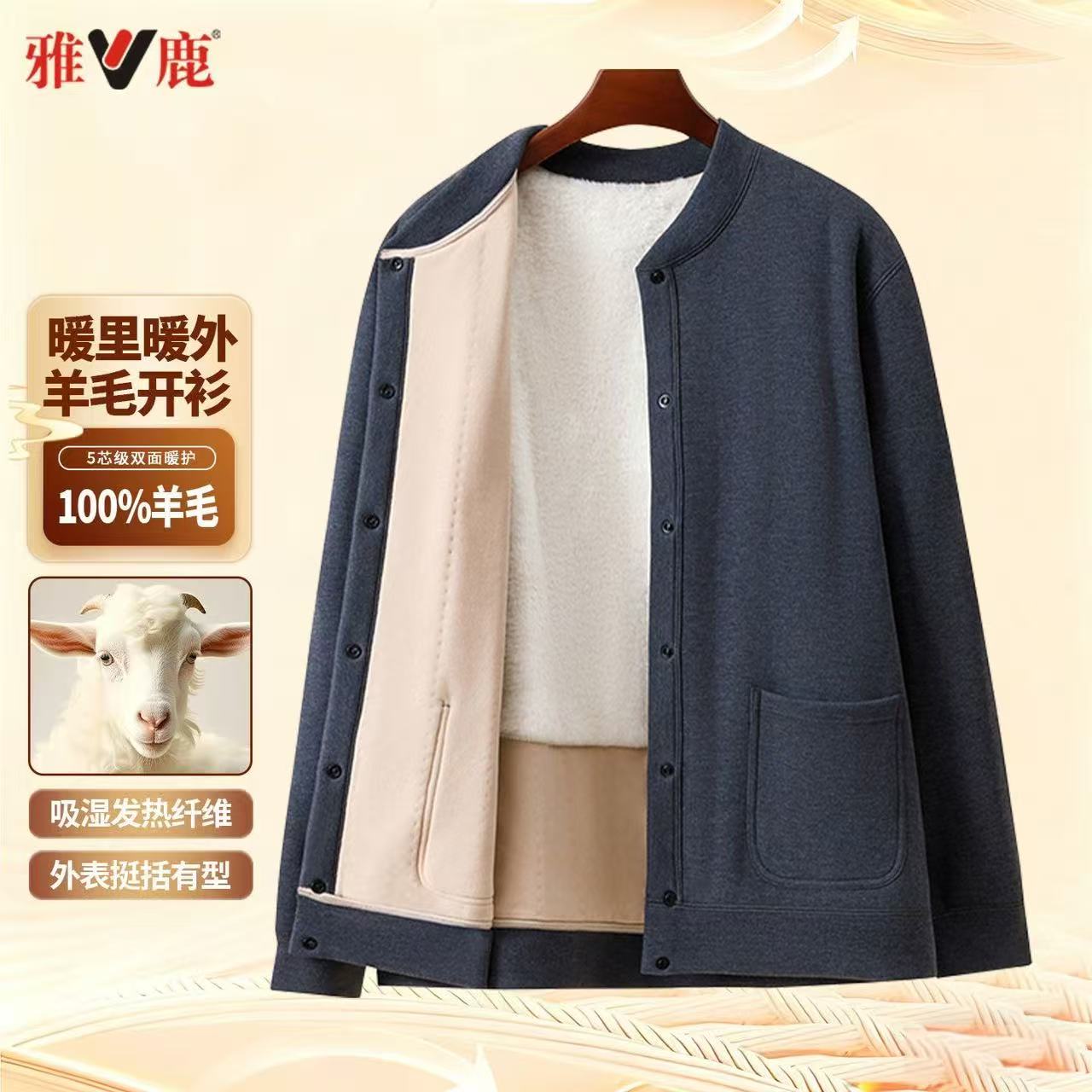【羊毛填充】雅鹿冬季中老年加绒加厚棉衣男士保暖棉袄外套男