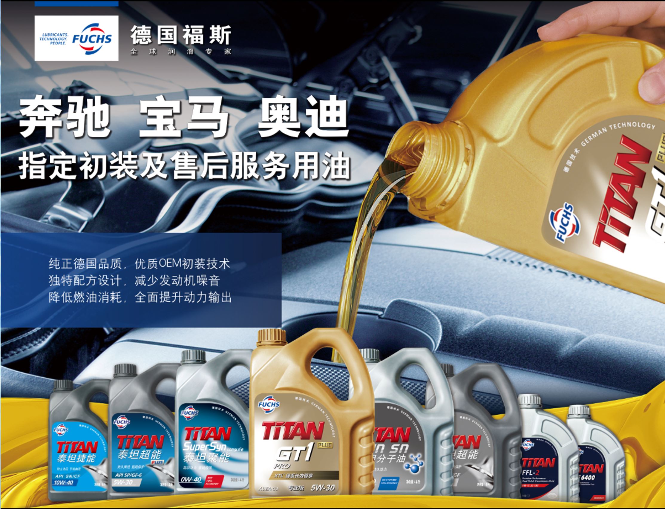德国福斯机油全球润滑专家,奔驰、宝马、大众、通用初装及服务用油