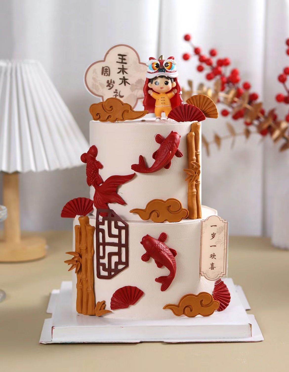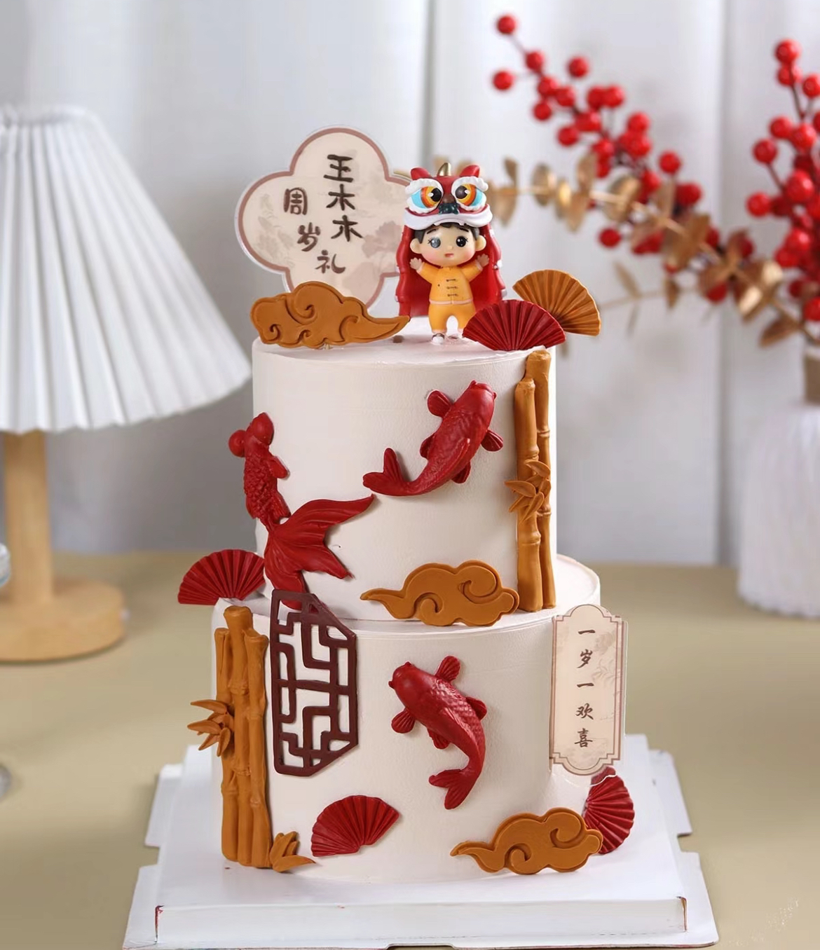 中式双层虎宝周岁蛋糕