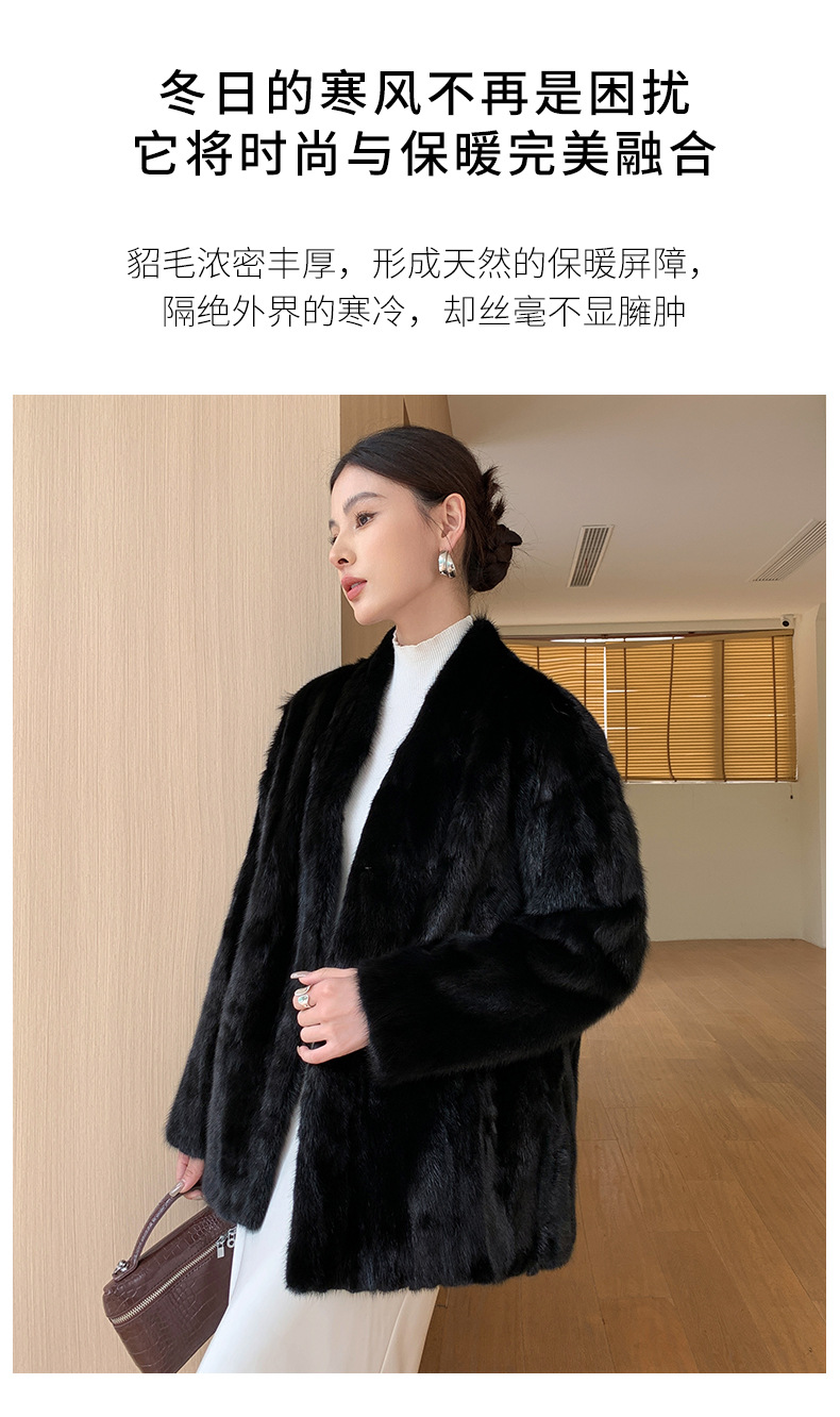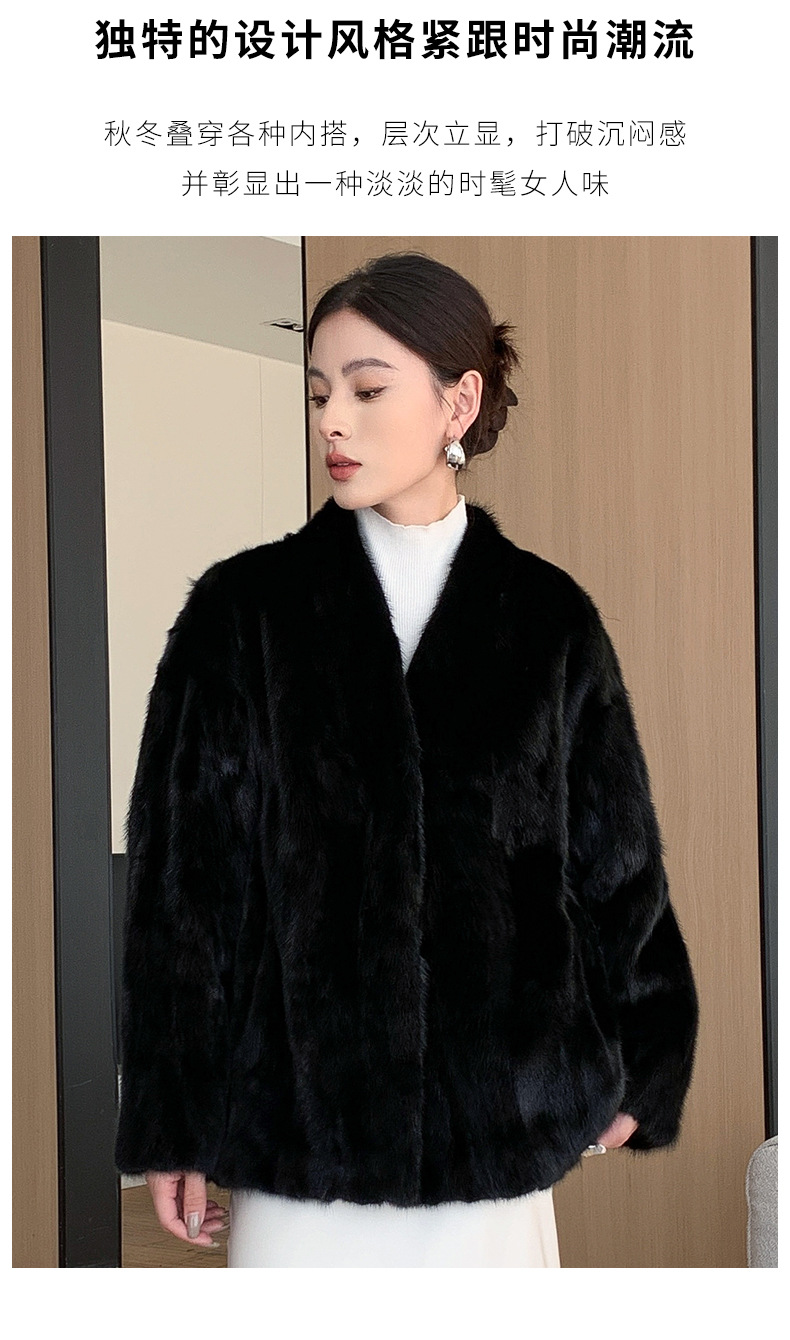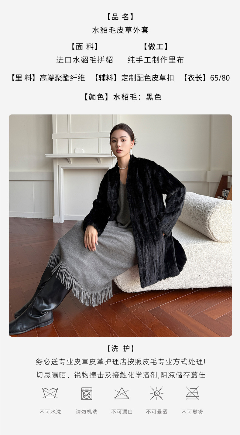 丁摩宁新款进口貂皮大衣女真貂水貂毛外套裘皮拼貂皮草年轻款ALW601