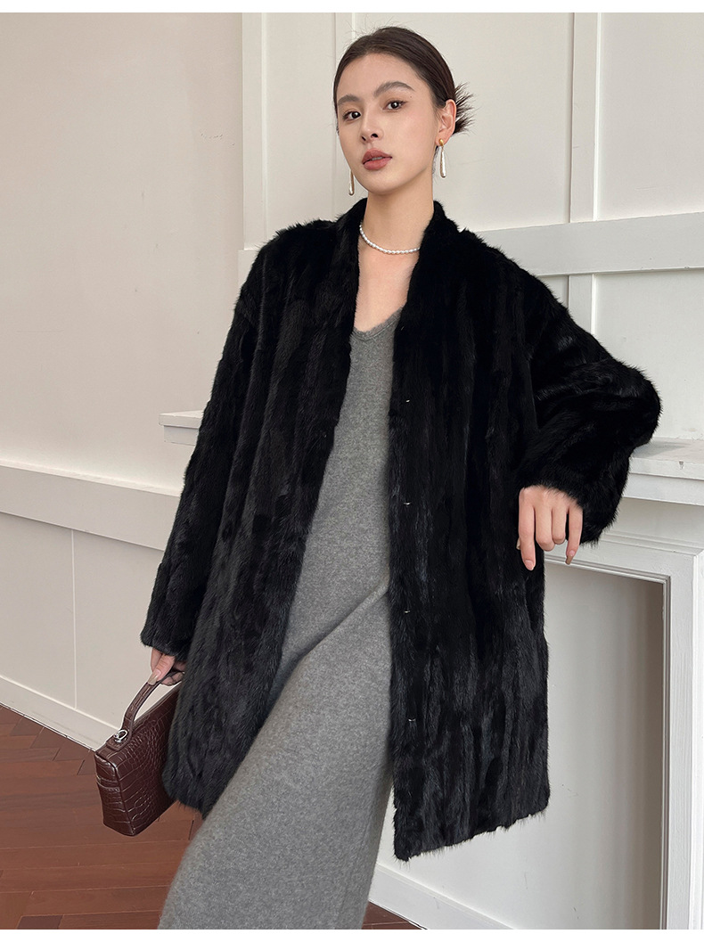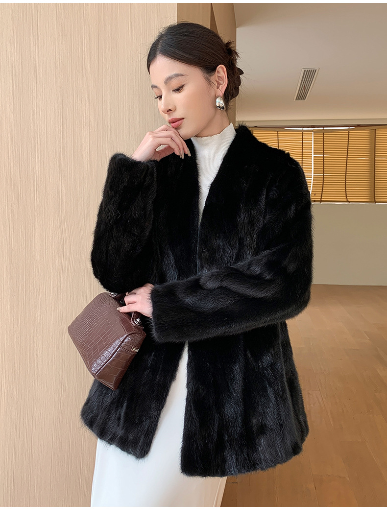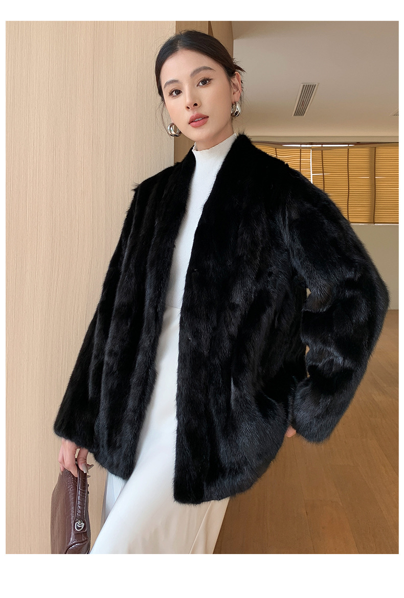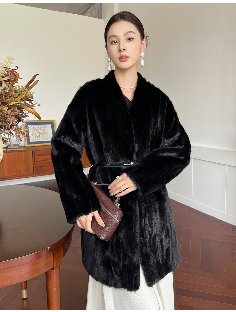 丁摩宁新款进口貂皮大衣女真貂水貂毛外套裘皮拼貂皮草年轻款ALW601
