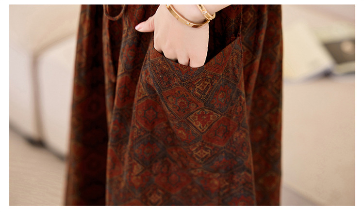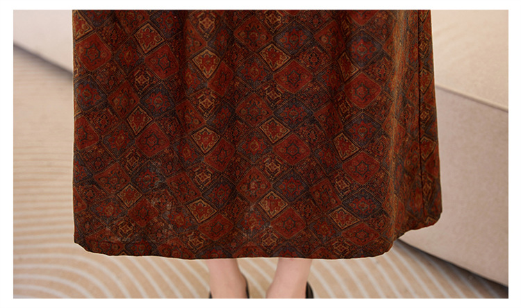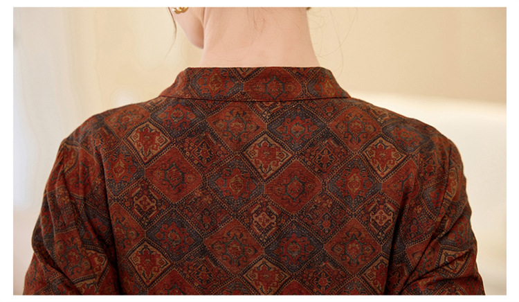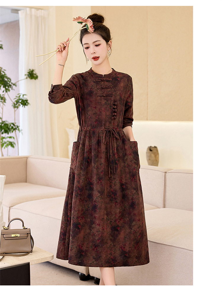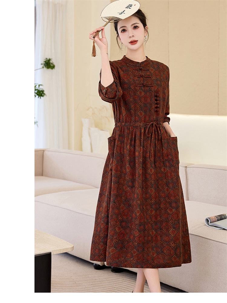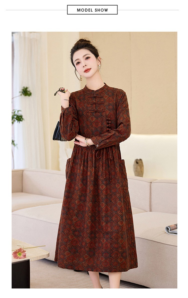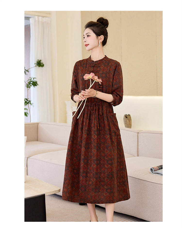 韩国绒印花长款修身长袖旗袍,复古中国风中老年女士旗袍SYK179402