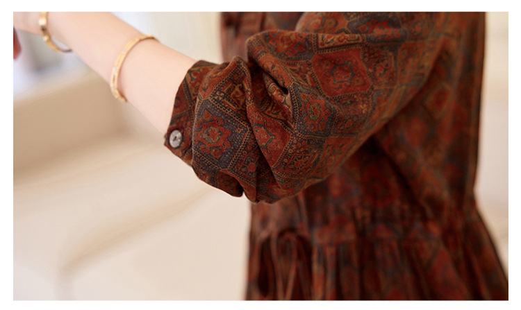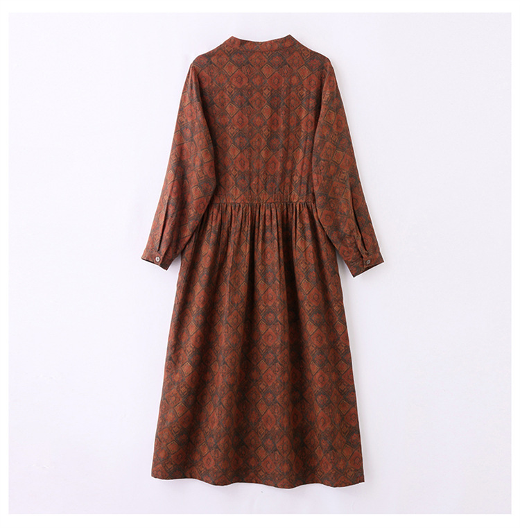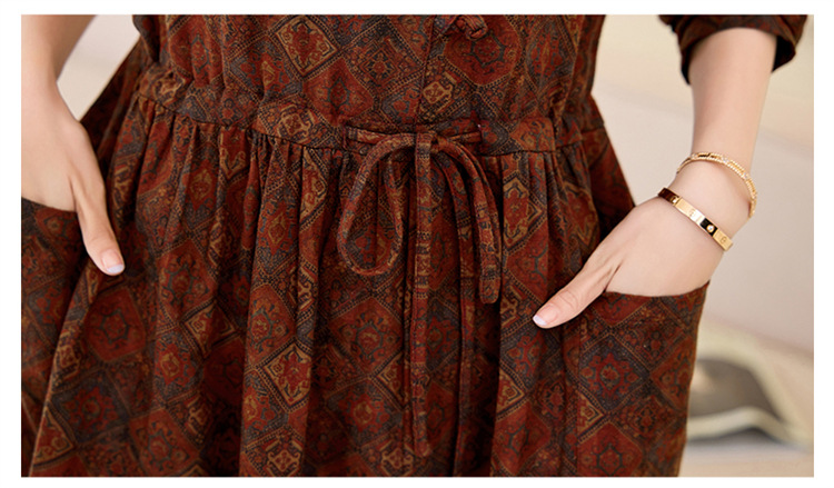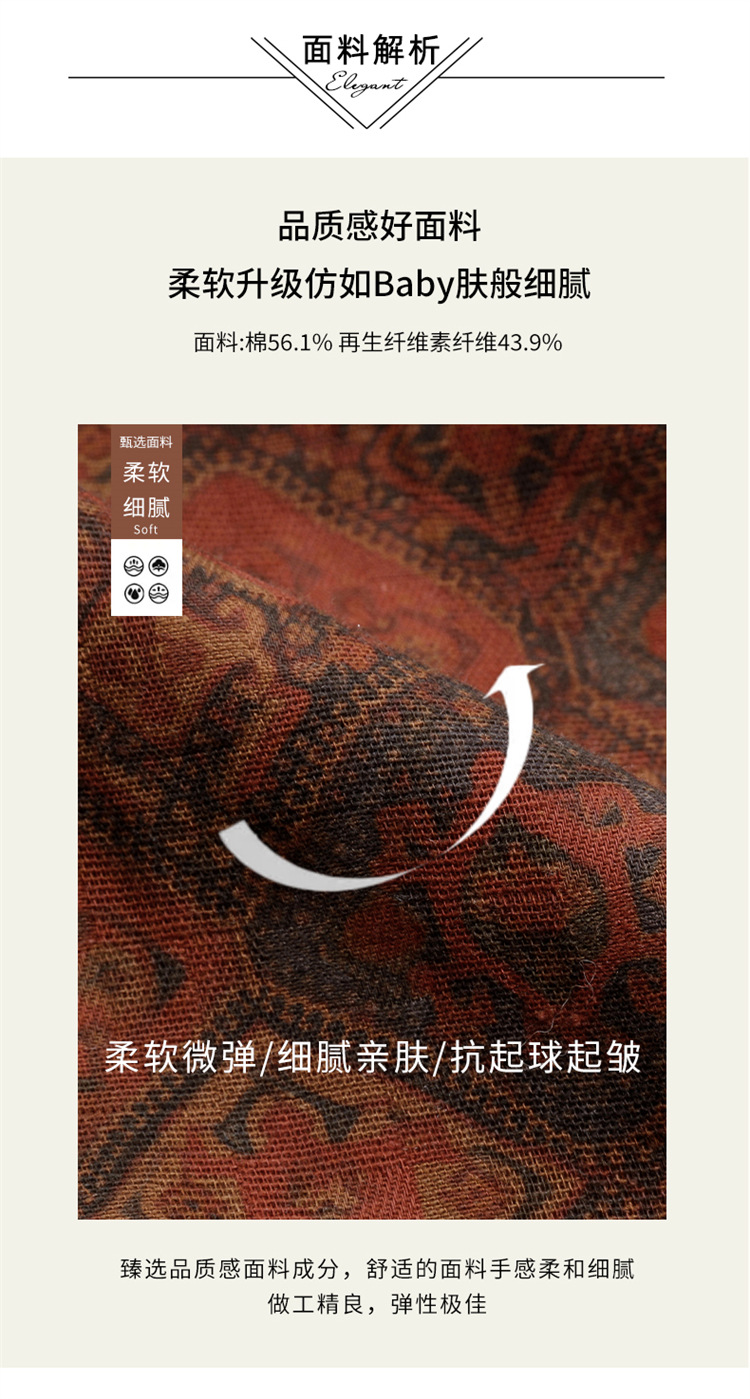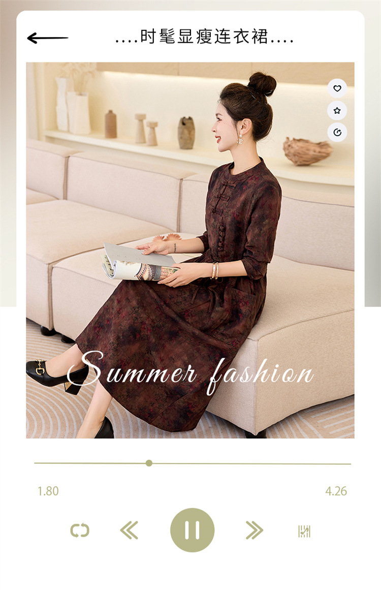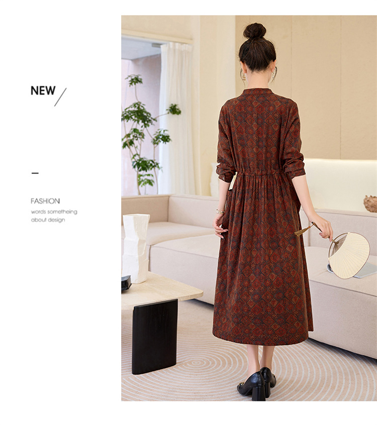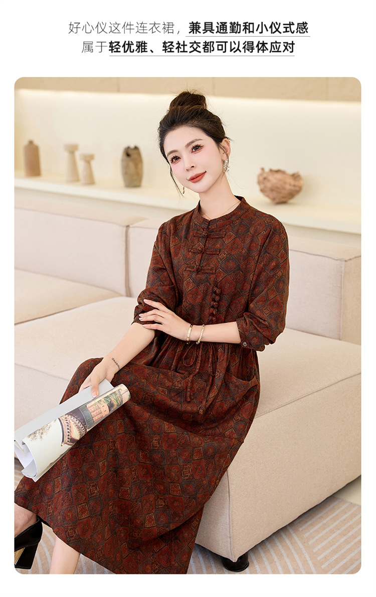 新中式复古盘扣碎花连衣裙,抽绳收腰气质棉麻长裙子HR-NYMYZ3307