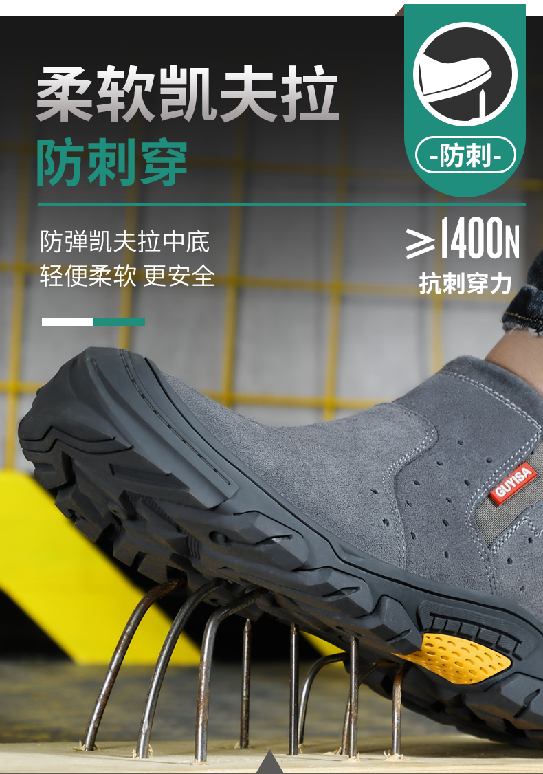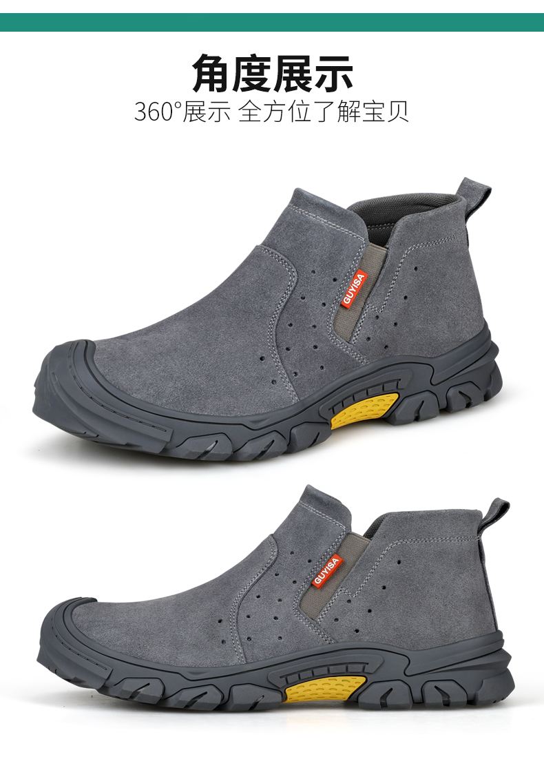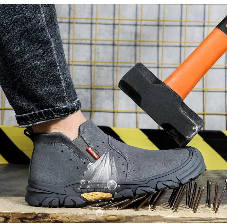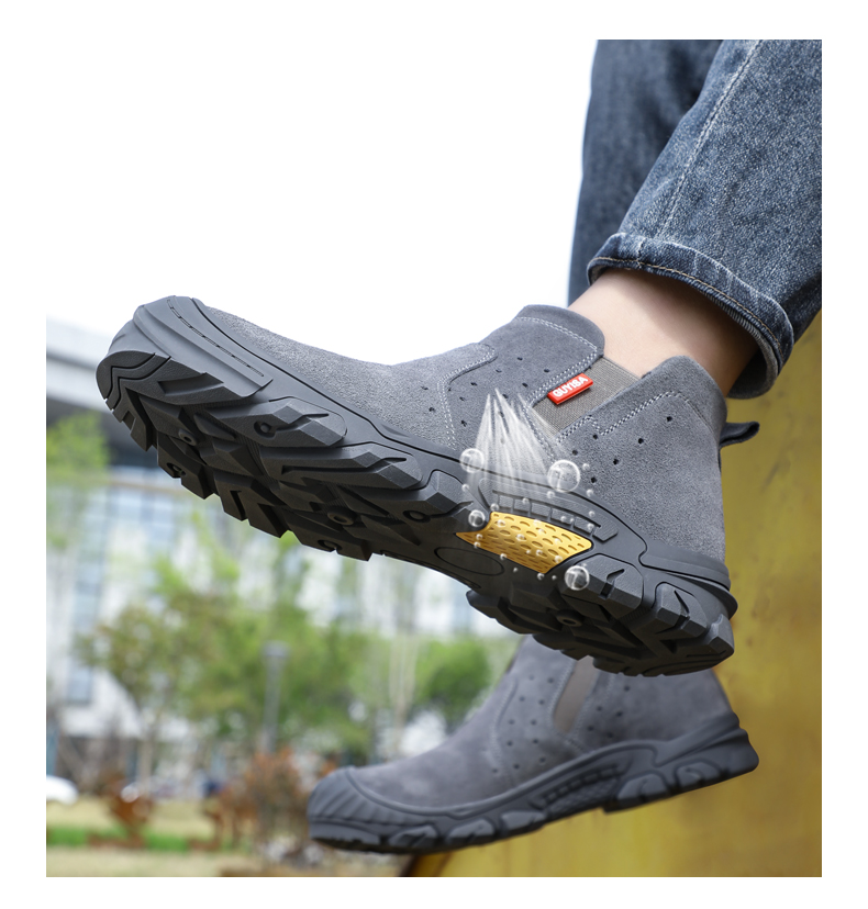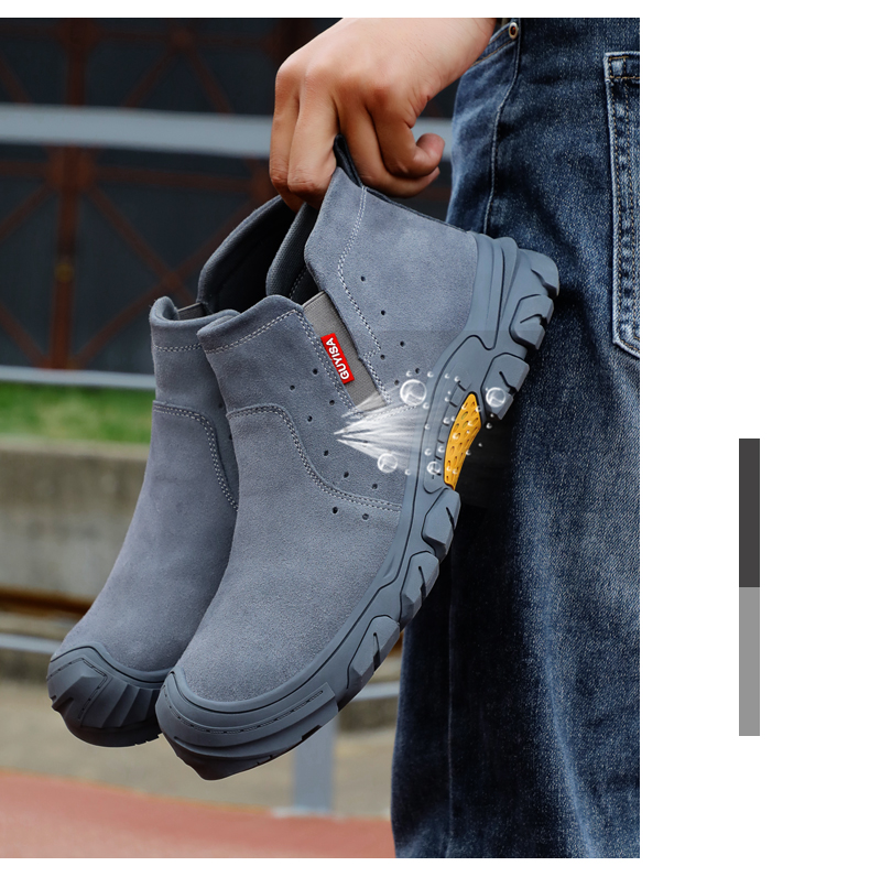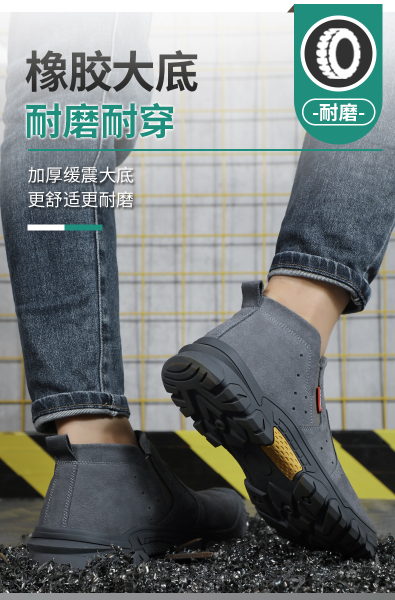 新款灰色反绒皮防烫劳保鞋钢包头防砸防刺耐磨橡胶底舒适防臭安全工作鞋