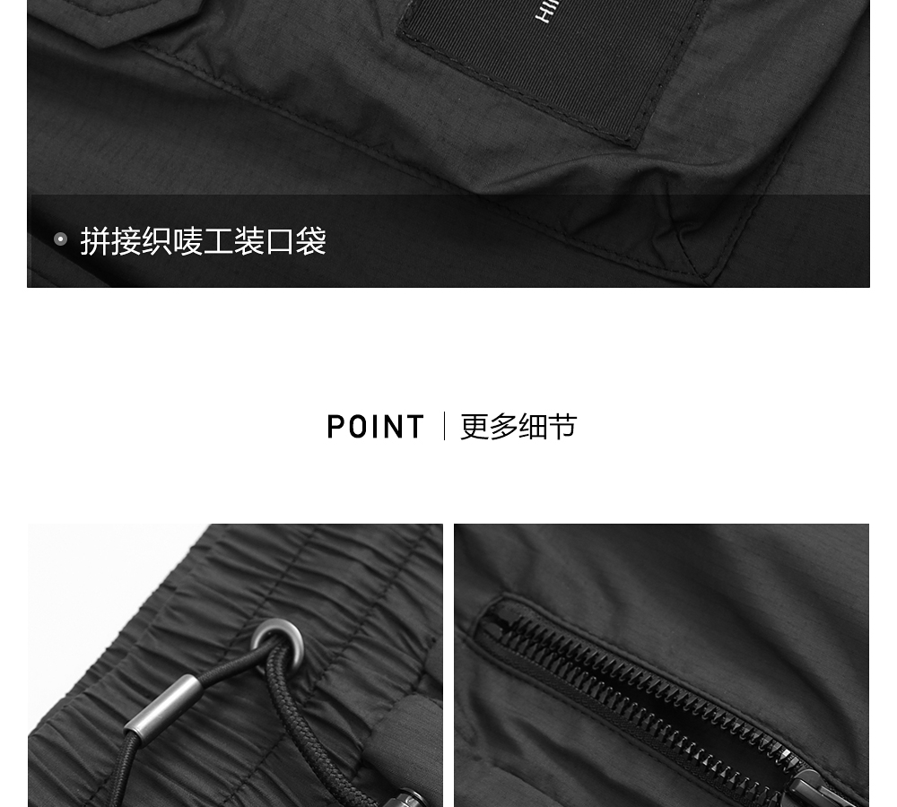 HIM漢崇 工装休闲裤男舒适透气微弹立体袋修身束脚九分裤2024夏季