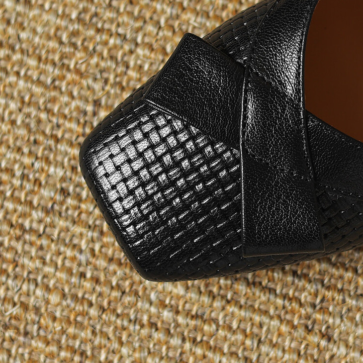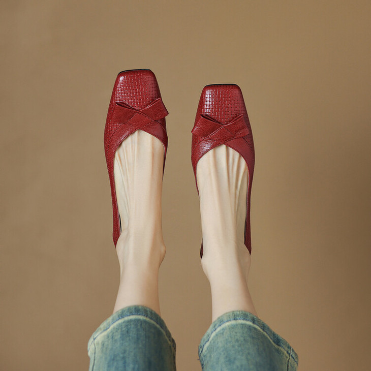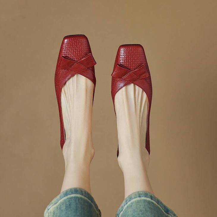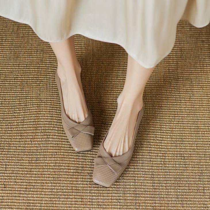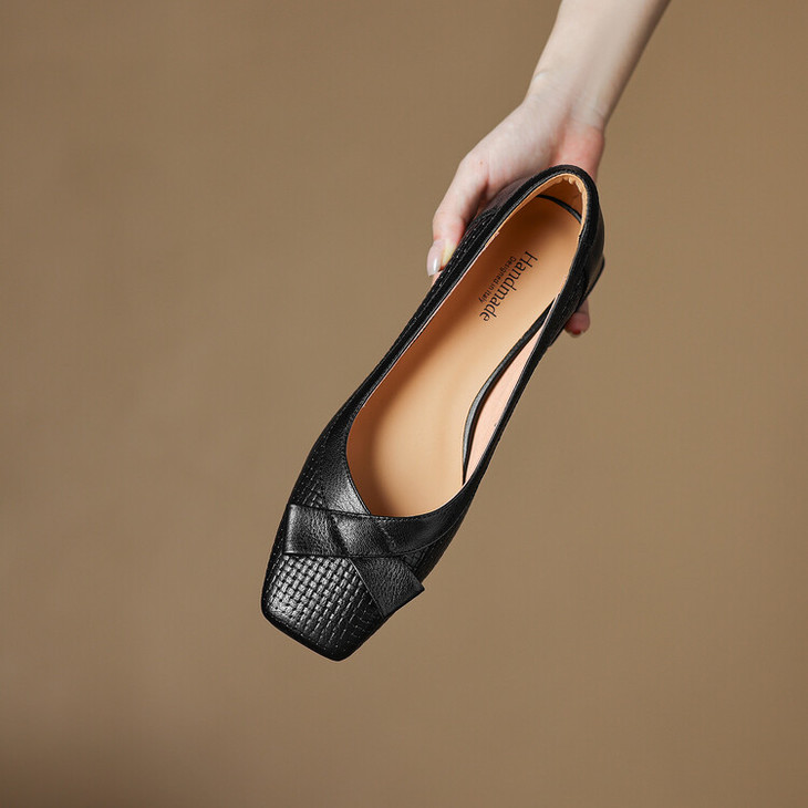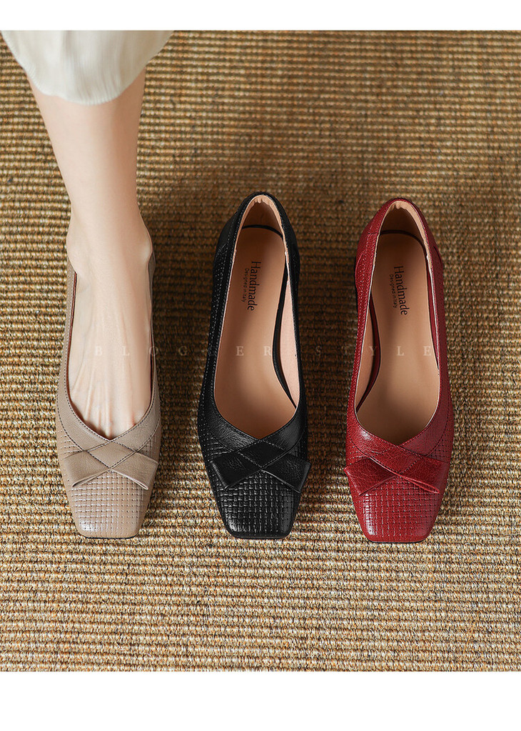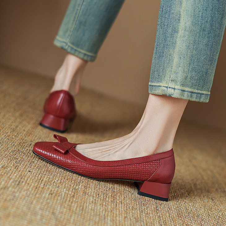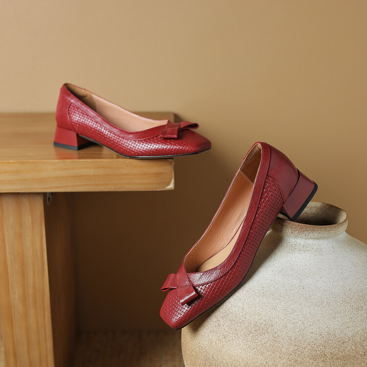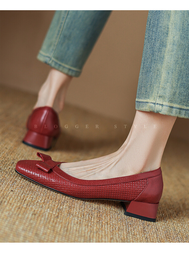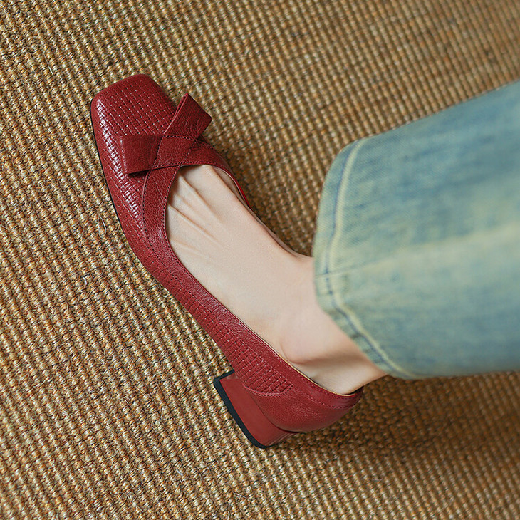 【预售5天】蝴蝶结方头粗跟高跟鞋,新款浅口中跟黑色单鞋LD&6850