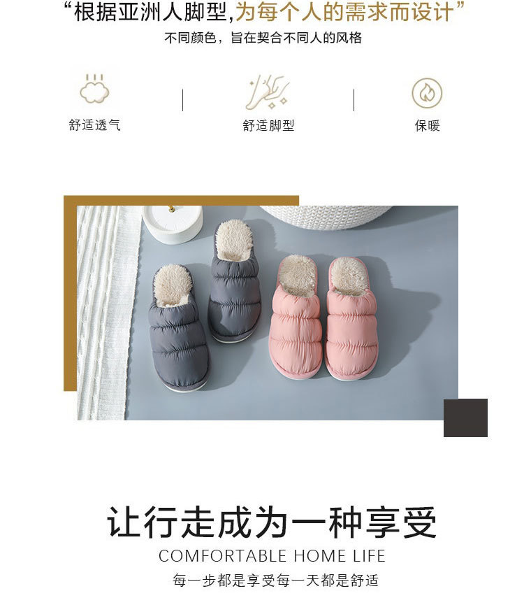 羽绒布家居棉拖鞋,情侣居家保暖拖鞋XKT-羽绒布