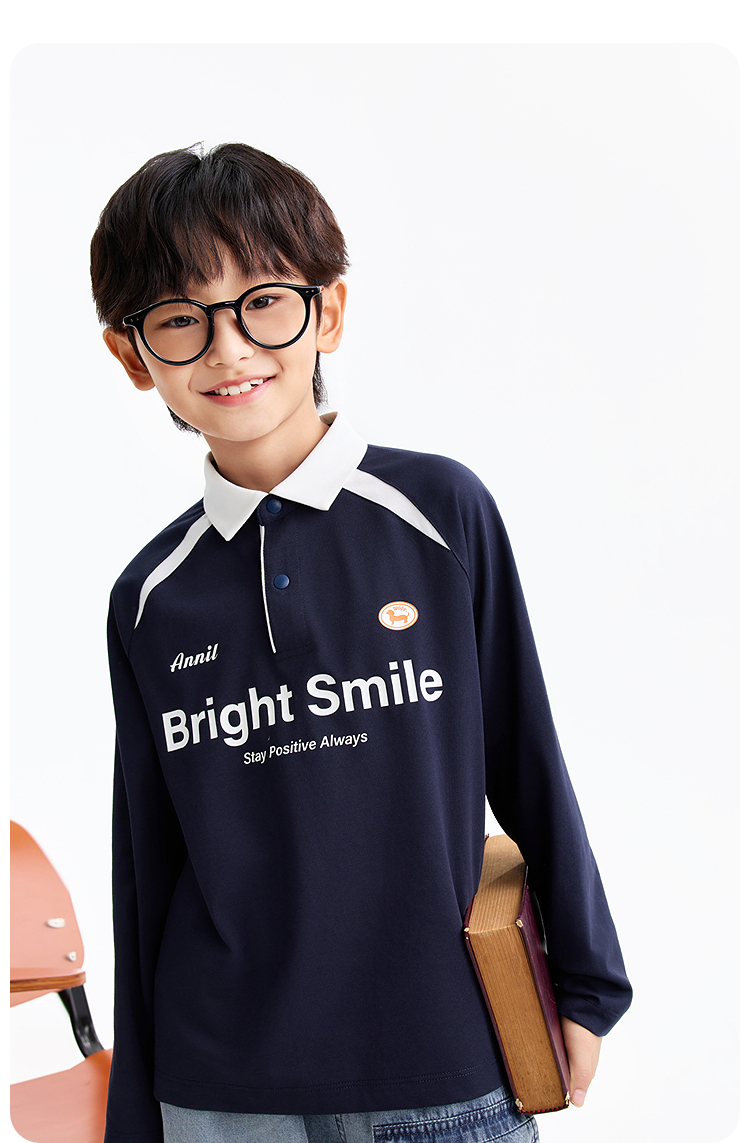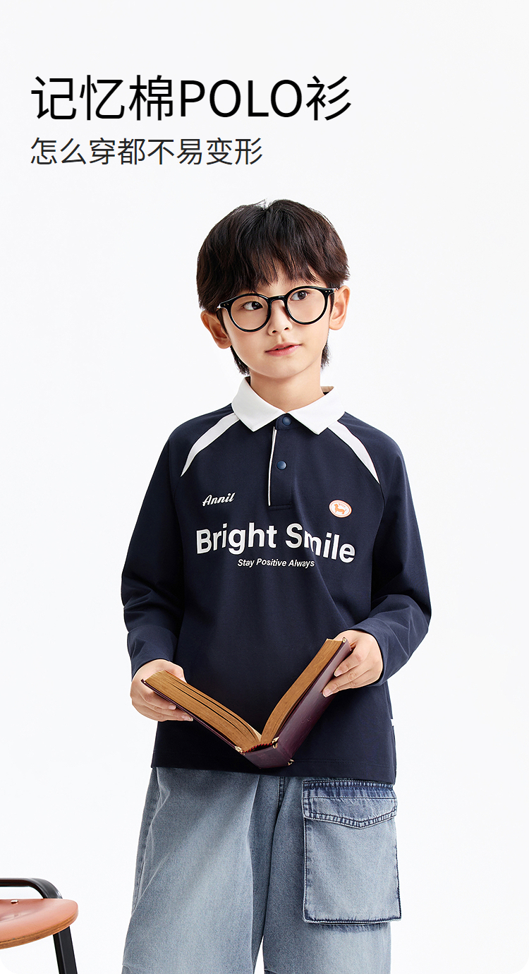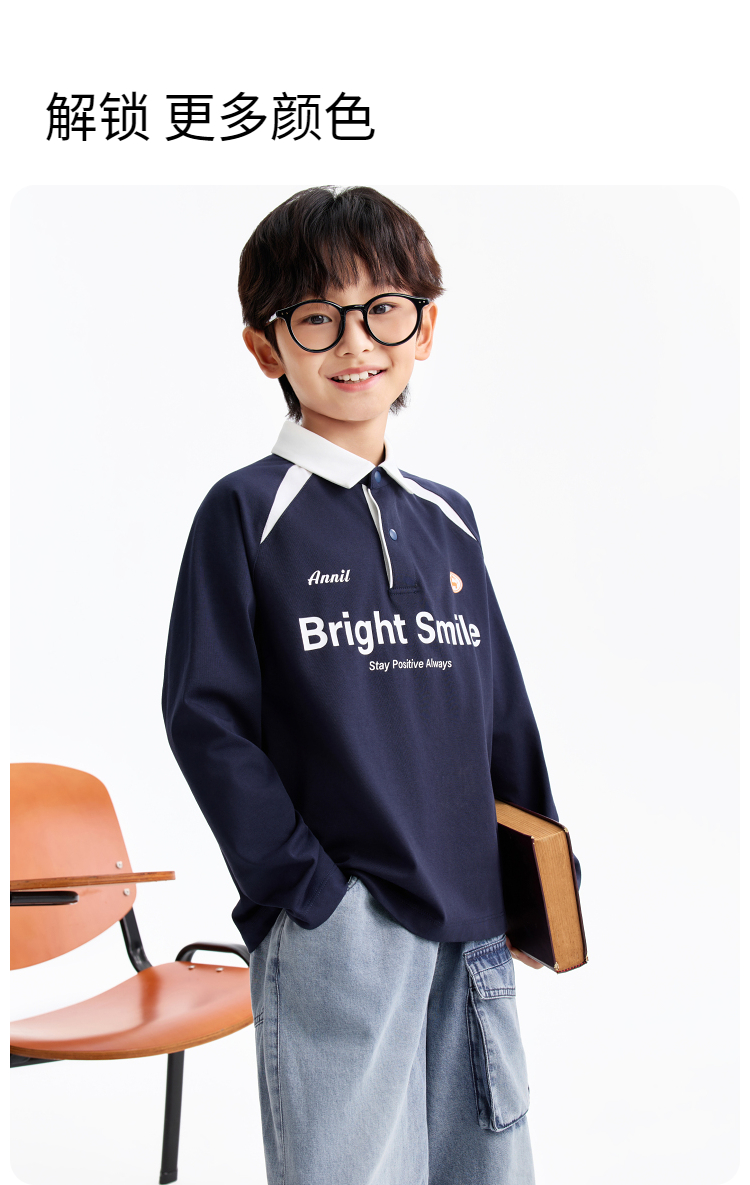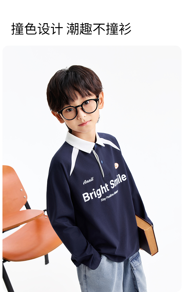 男童翻领长袖针织衫春季新款安奈儿童装EB611588