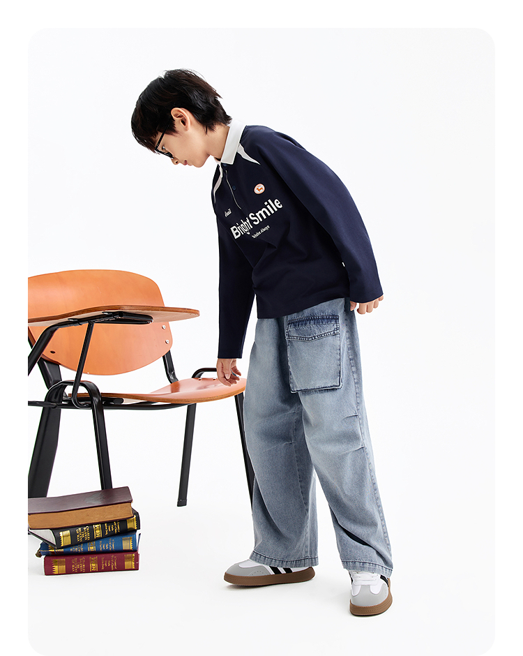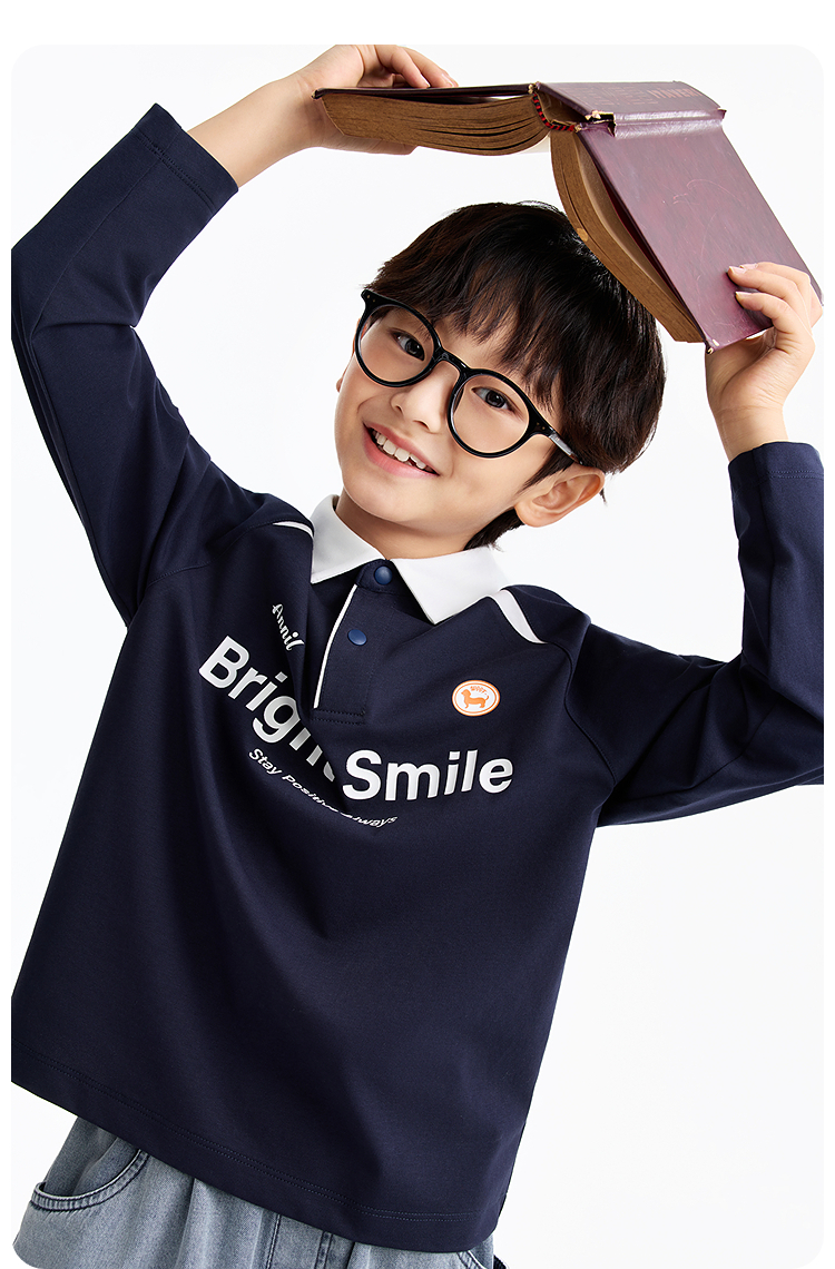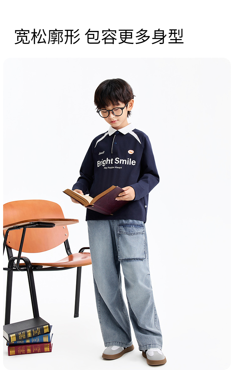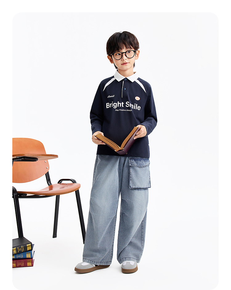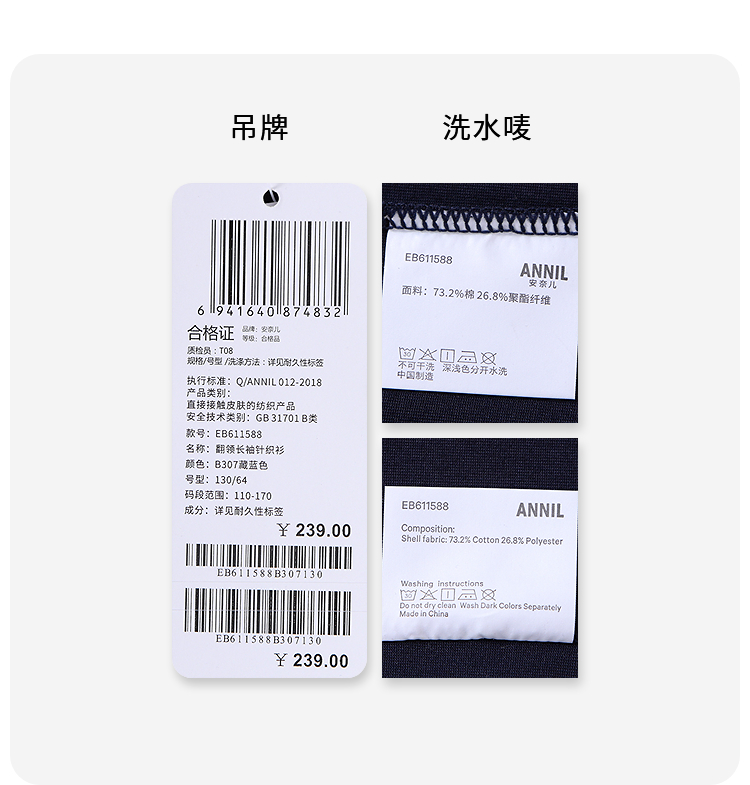 男童翻领长袖针织衫春季新款安奈儿童装EB611588