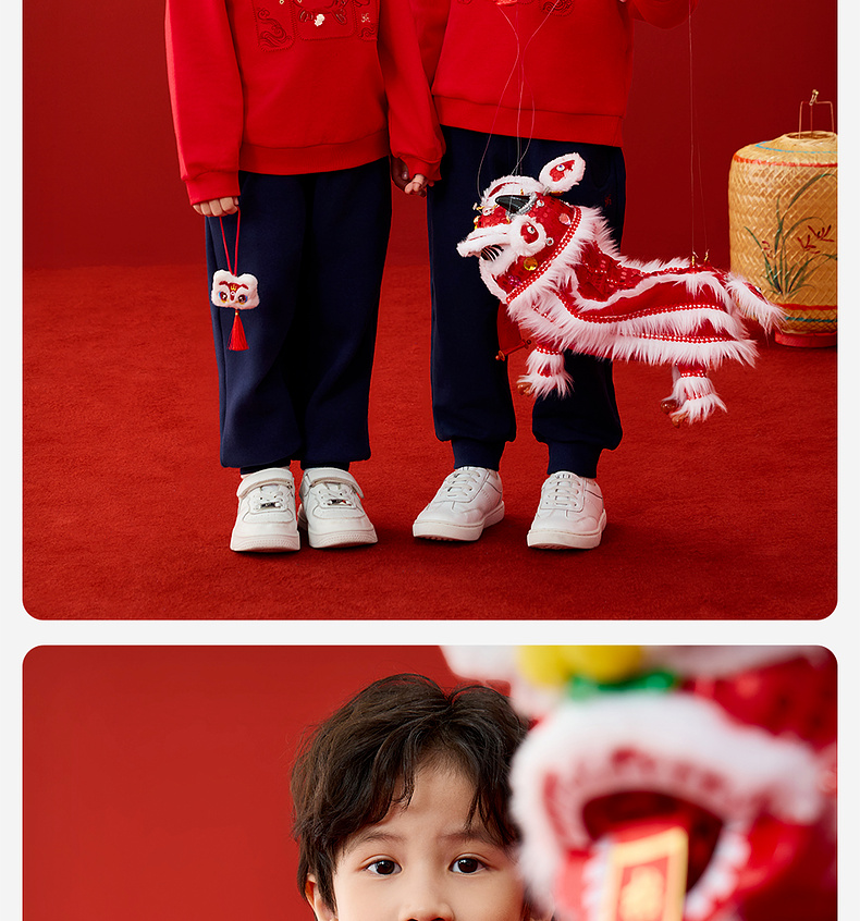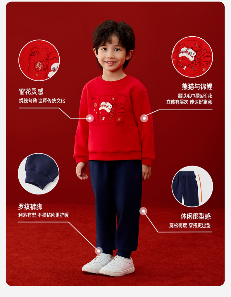 【商场同款】英氏儿童针织衫长裤套装保暖防寒喜庆新年拜年服新款