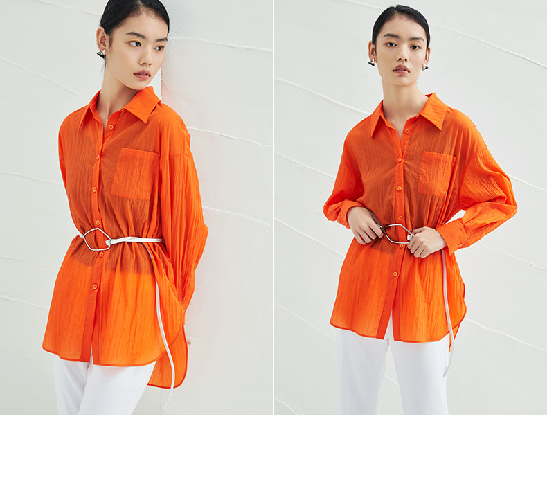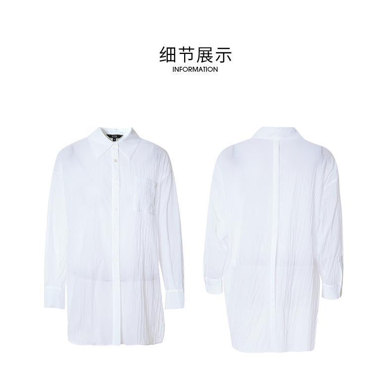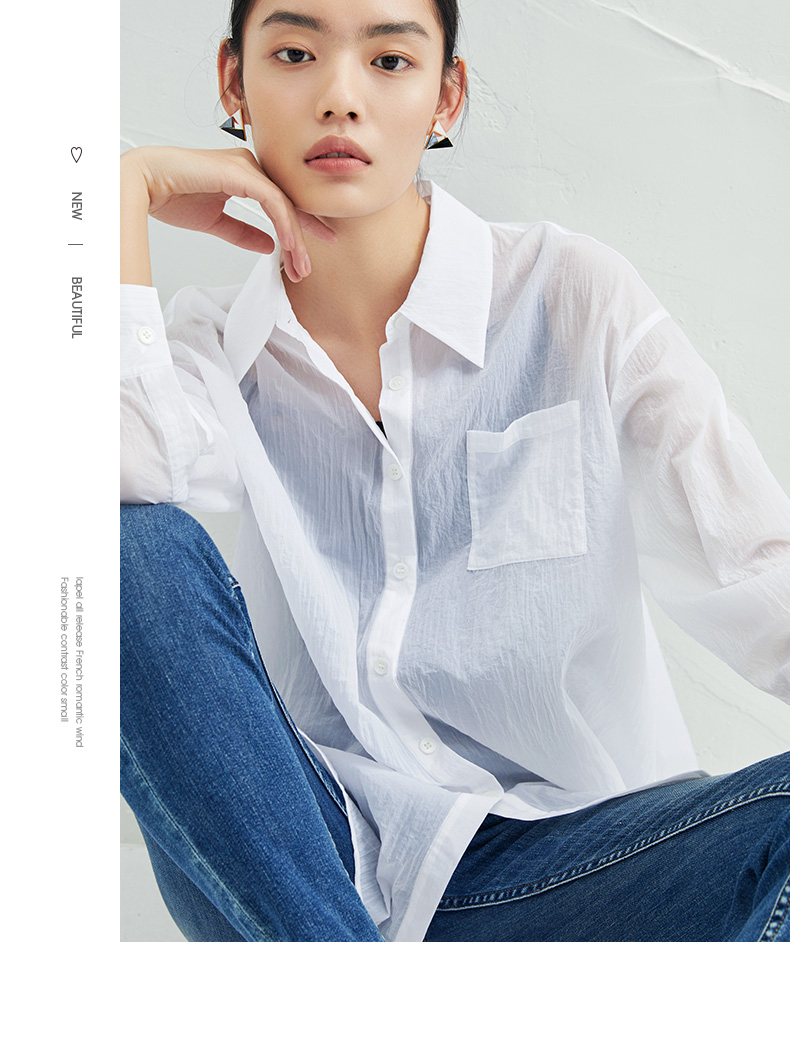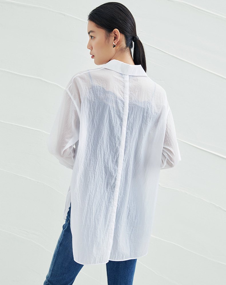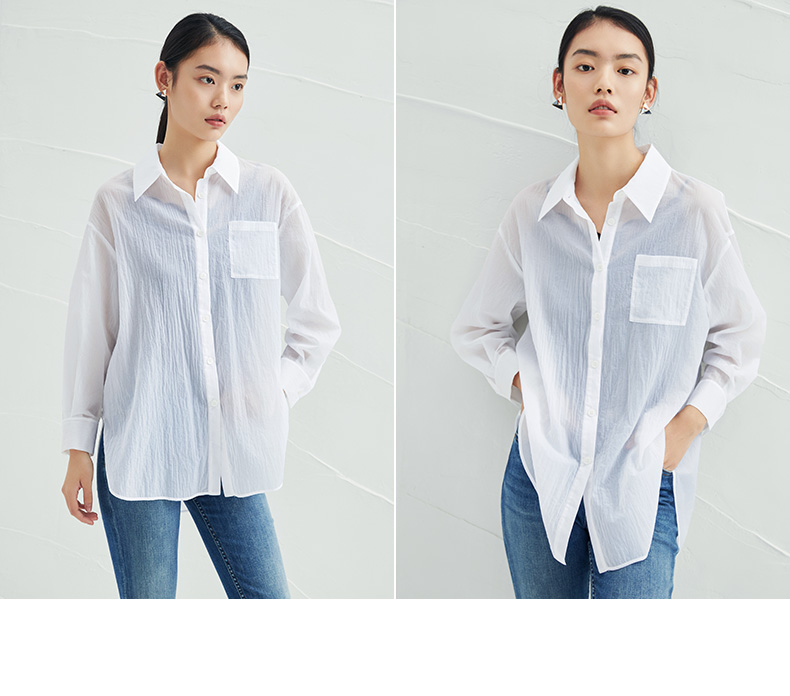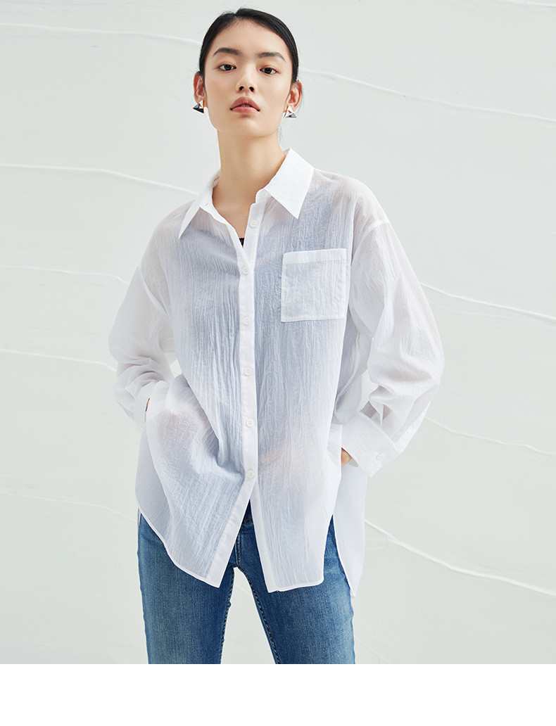 EITIE爱特爱夏季新款时尚显瘦通勤百搭薄款宽松纯色防晒衬衫B2209908