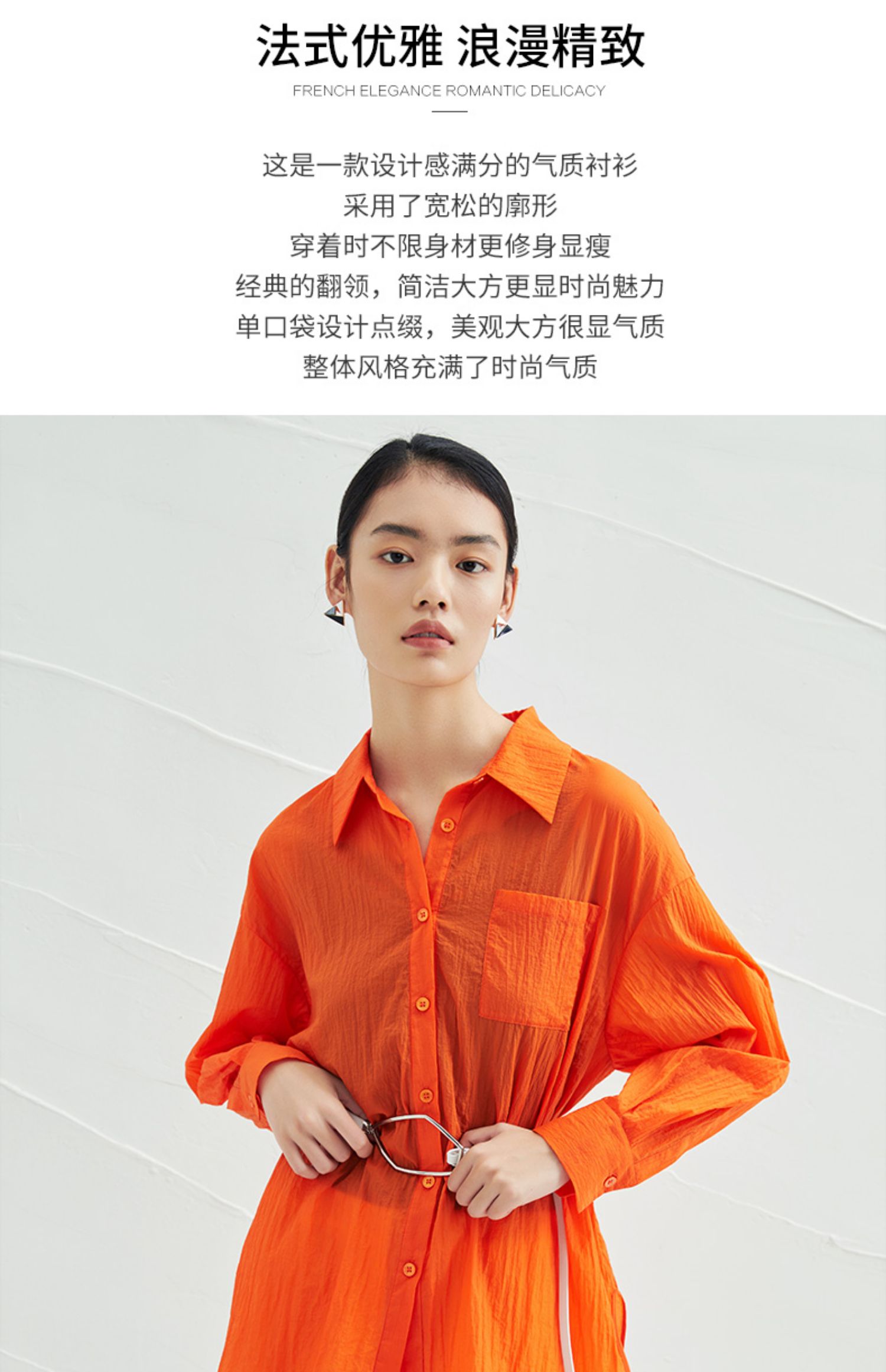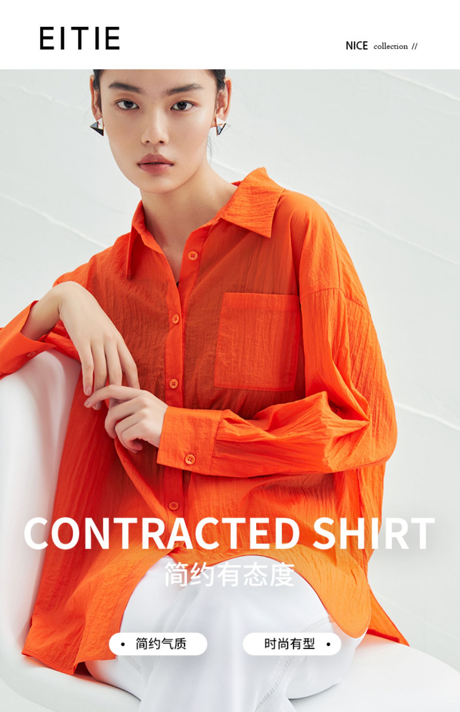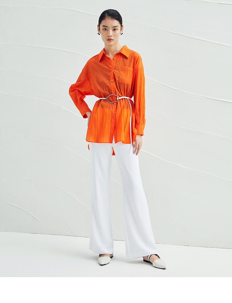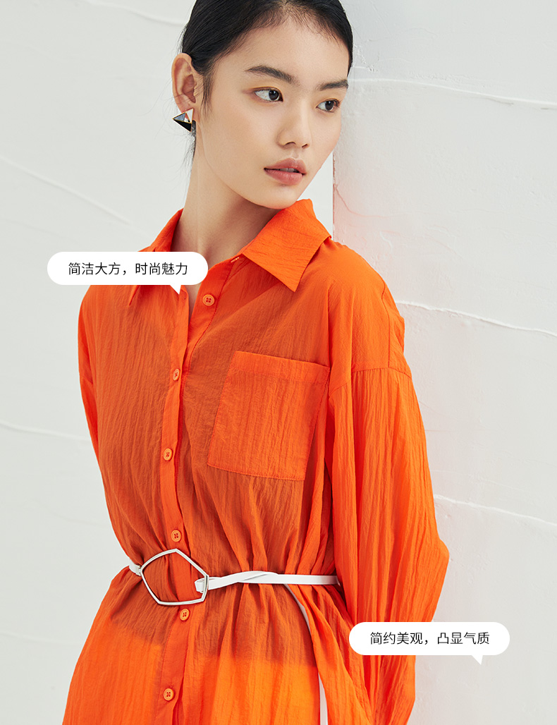 EITIE爱特爱夏季新款时尚显瘦通勤百搭薄款宽松纯色防晒衬衫B2209908