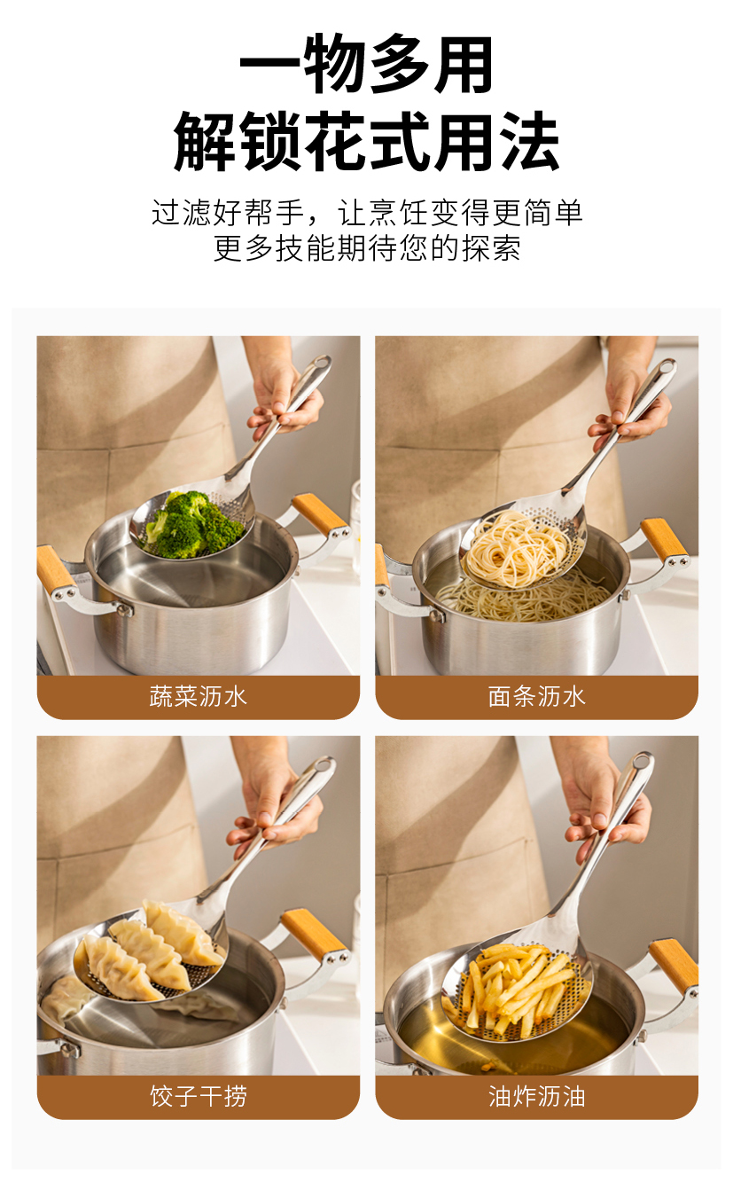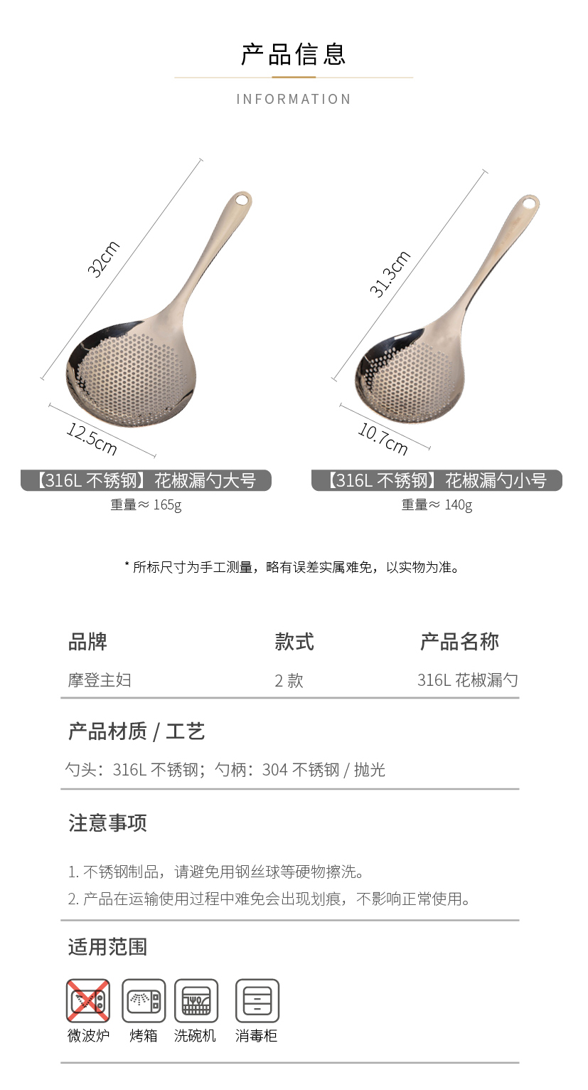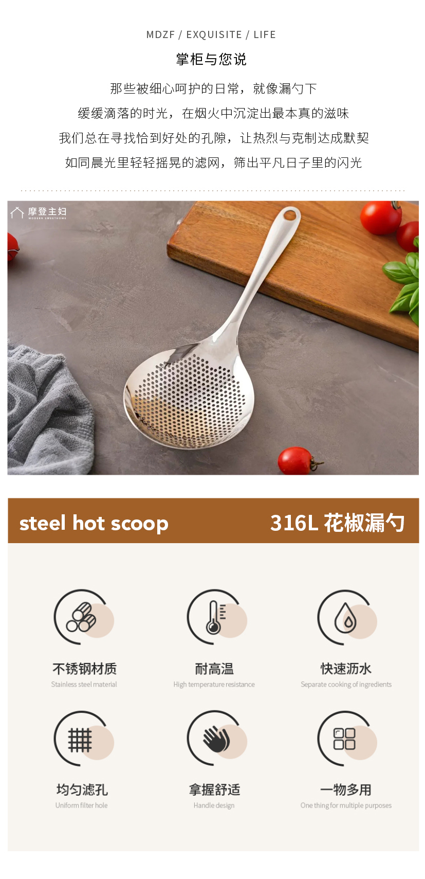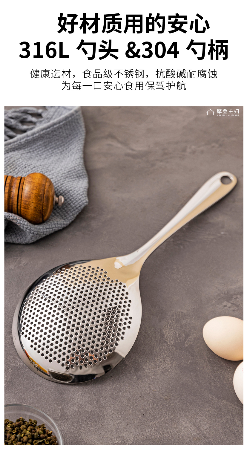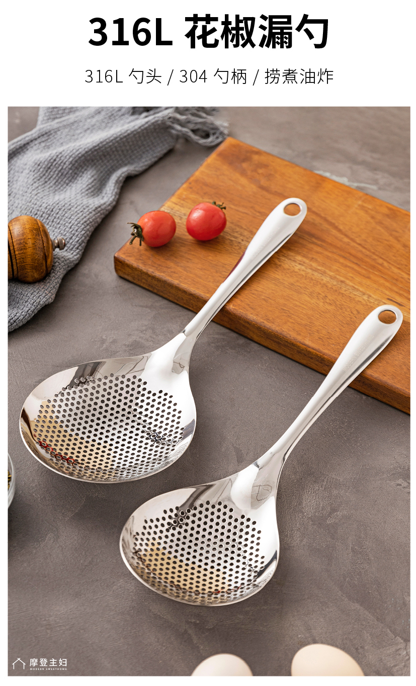 摩登主妇花椒漏勺316L不锈钢家用厨房过滤漏网饺子沥水油炸大捞勺