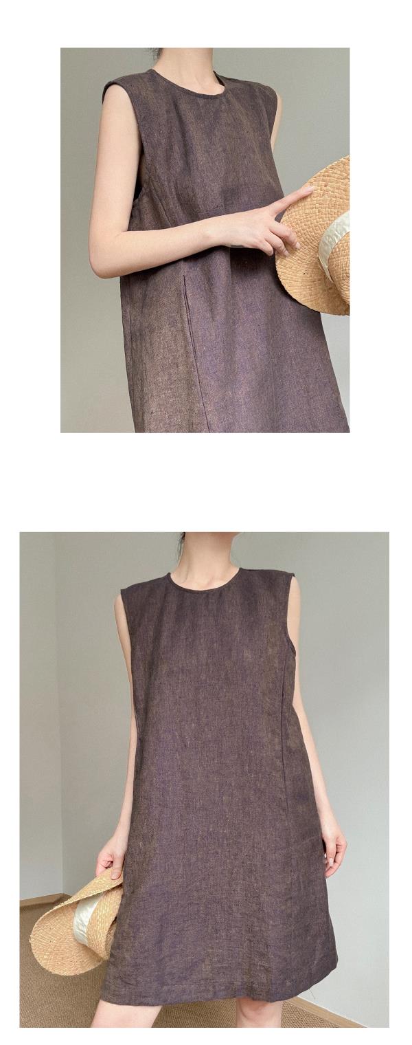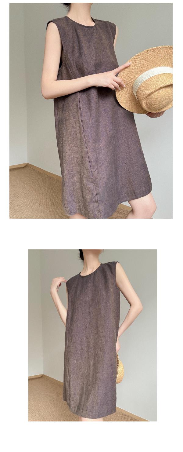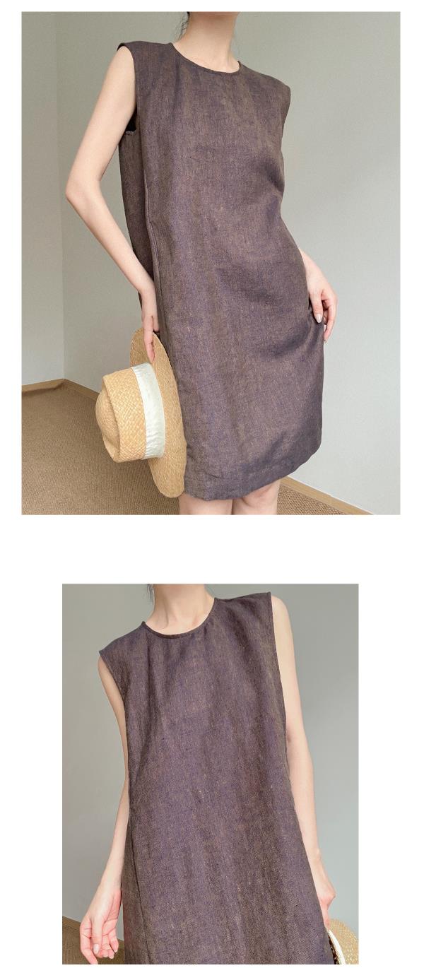 奥篇微闪金丝冰麻纱 简极宽松无袖背心连衣裙