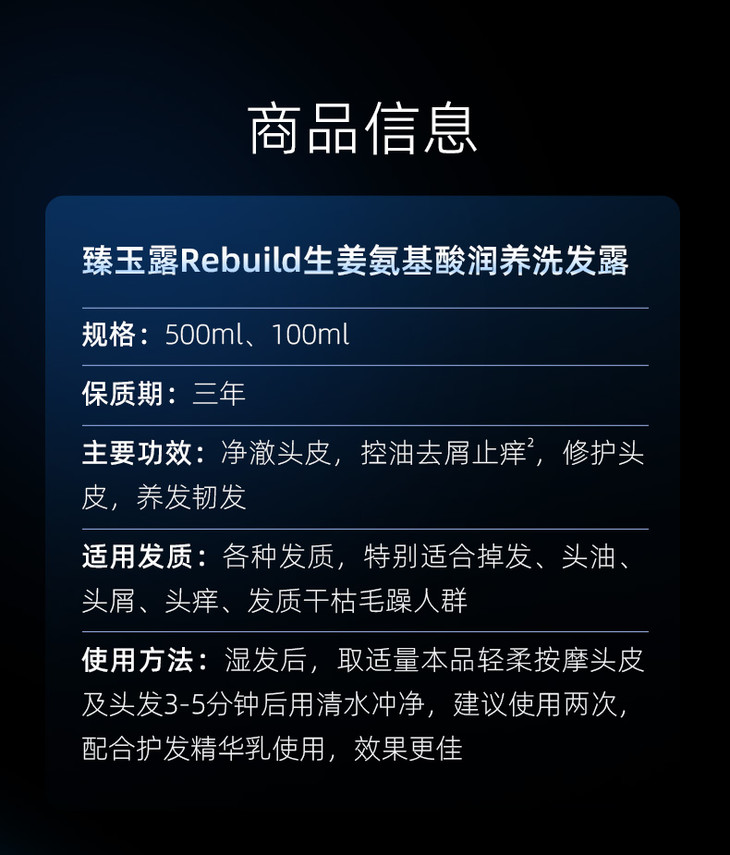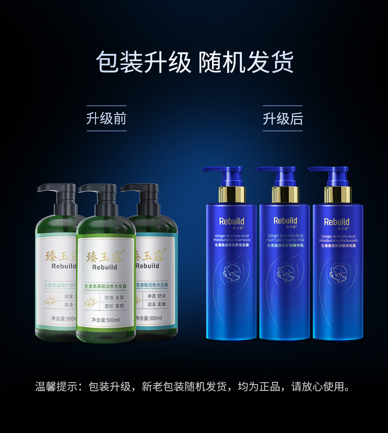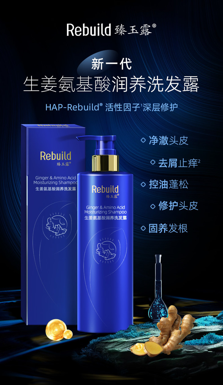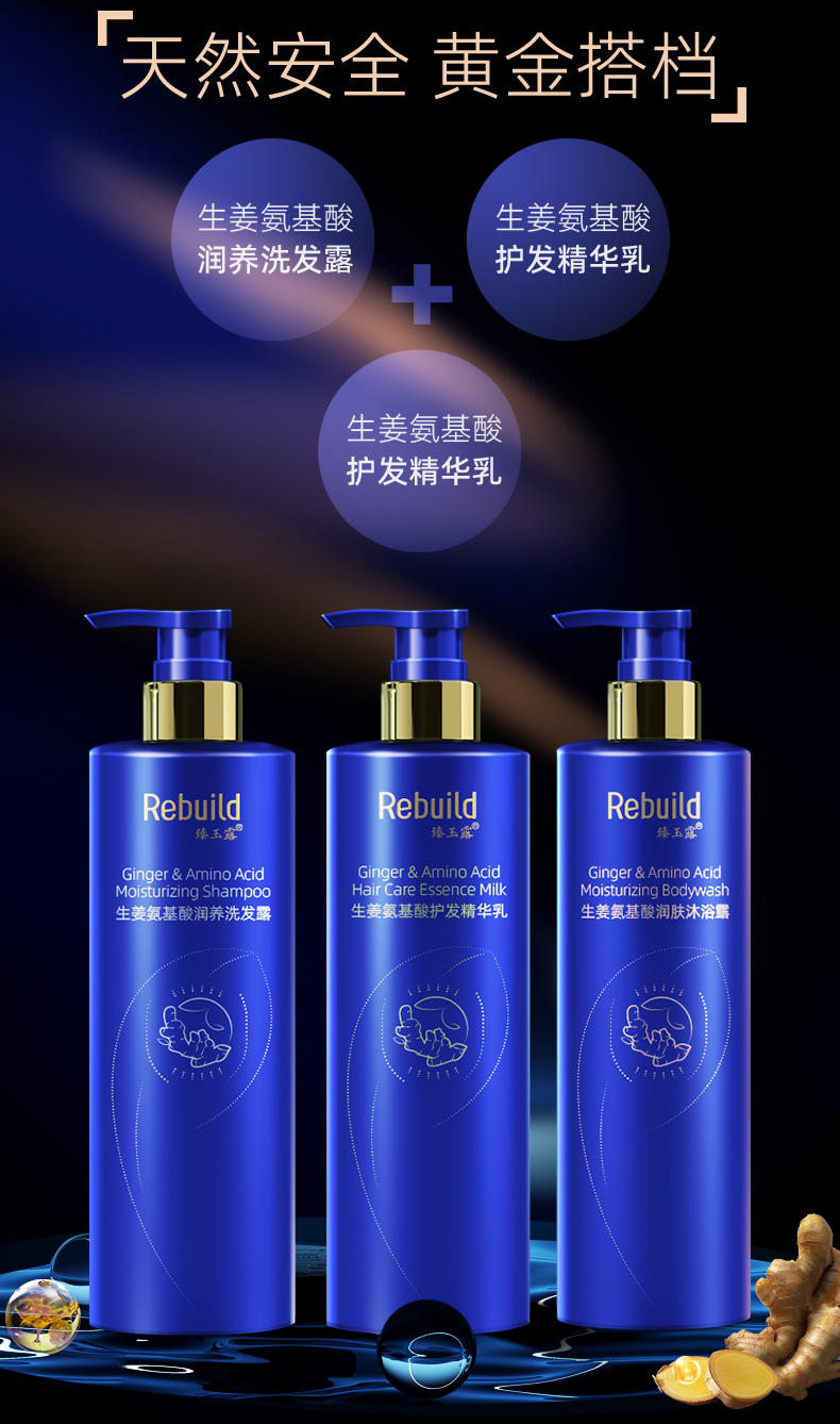 【北大博士科研团队研发 独特修护因子配方 根源解决头发、皮肤护理问题】臻玉露Rebuild生姜氨基酸润养洗发露/护发精华乳/润肤沐浴露(购1瓶送同款100ml装1瓶试用,试用不满意正装未拆可全额退款)