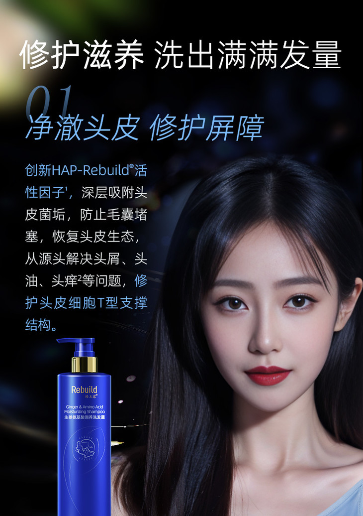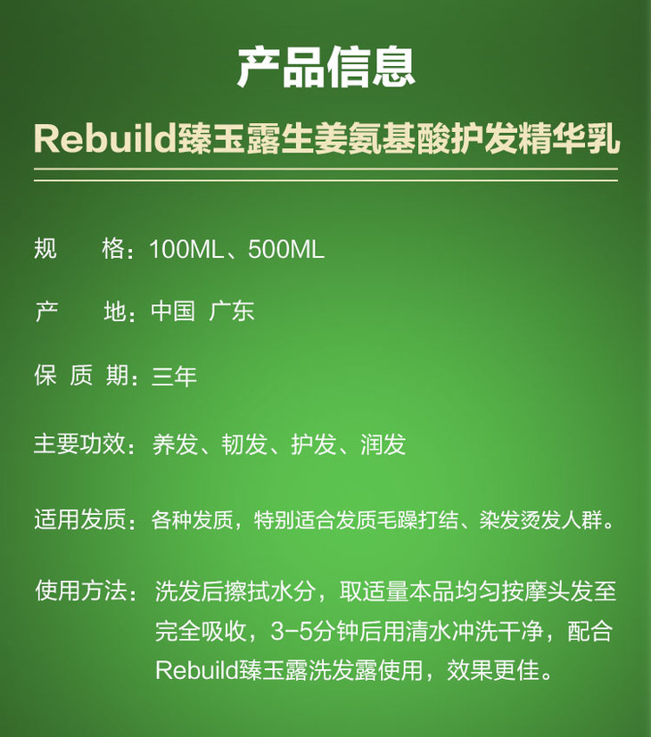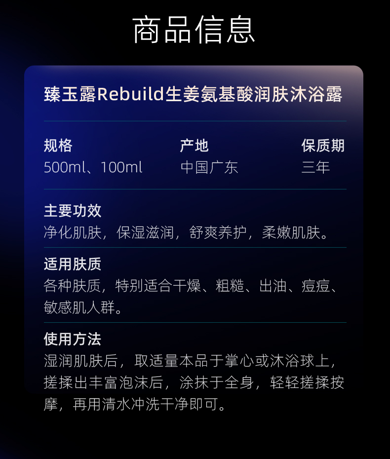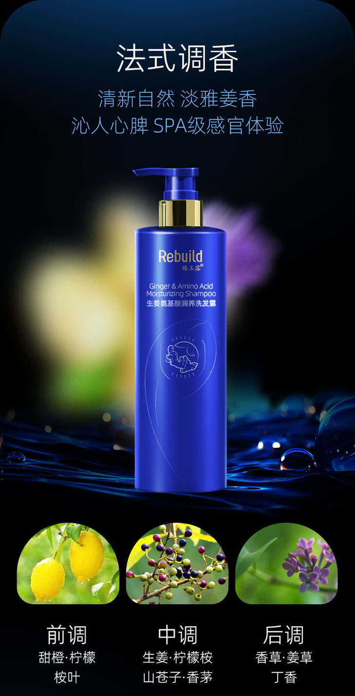 【北大博士科研团队研发 独特修护因子配方 根源解决头发、皮肤护理问题】臻玉露Rebuild生姜氨基酸润养洗发露/护发精华乳/润肤沐浴露(购1瓶送同款100ml装1瓶试用,试用不满意正装未拆可全额退款)