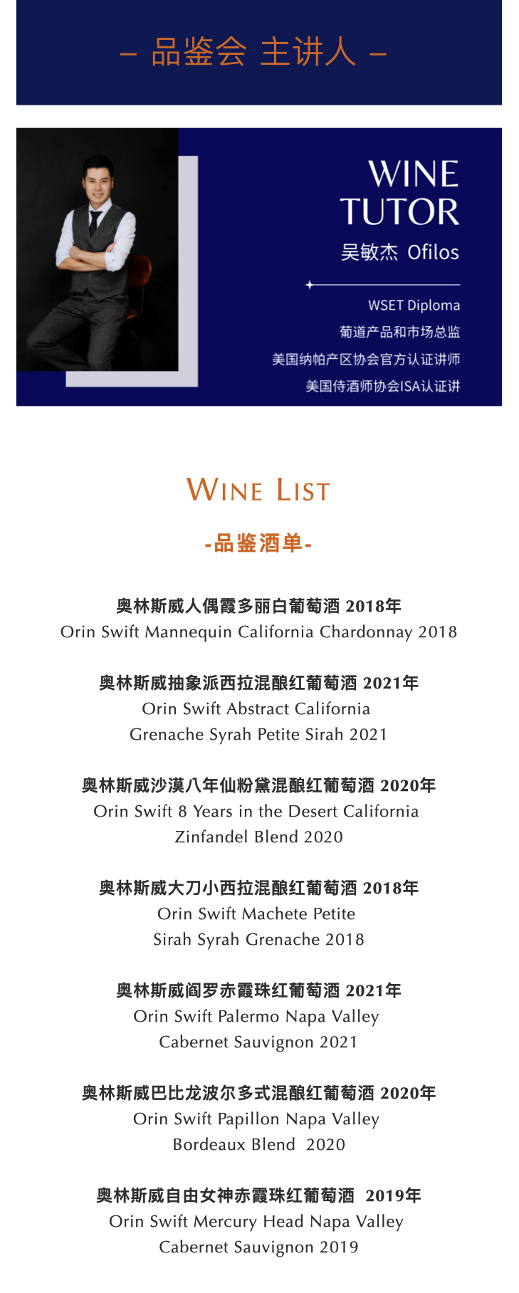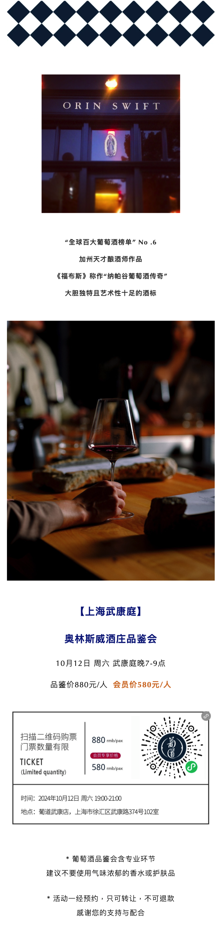 【2024.10.12武康门票 Wukang Ticket】纳帕谷Orin Swift明星酒庄品鉴会|邂逅非凡酒体与前卫艺术