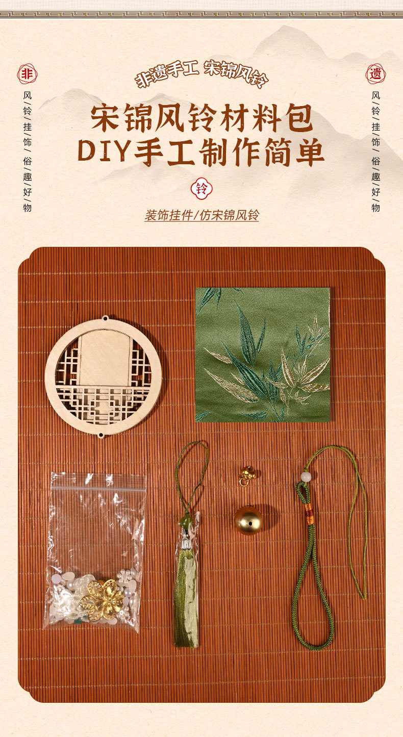 【织锦珍珠风铃手工】仿宋锦DIY材料包新中式手工铃铛挂饰亲子活动团建