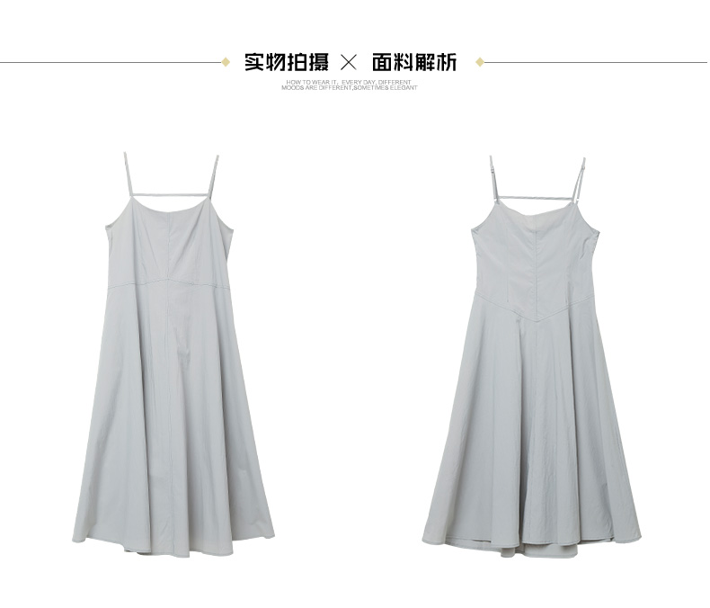 细肩带吊带连衣裙女 2026 春夏装新品 浅灰色宽松垂感显瘦通勤中长裙