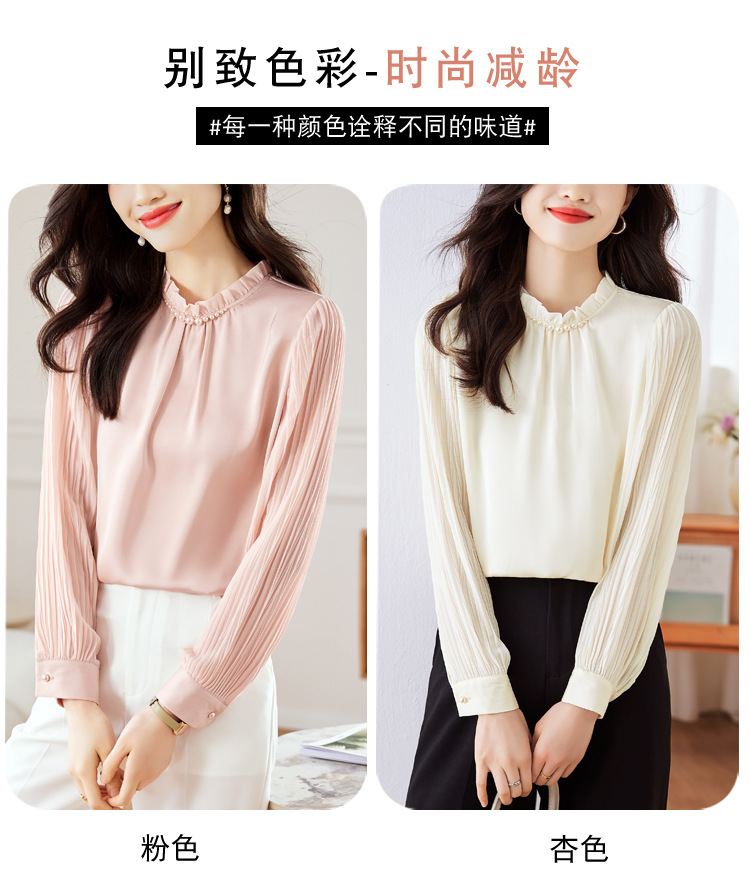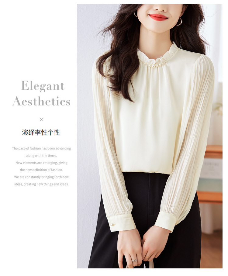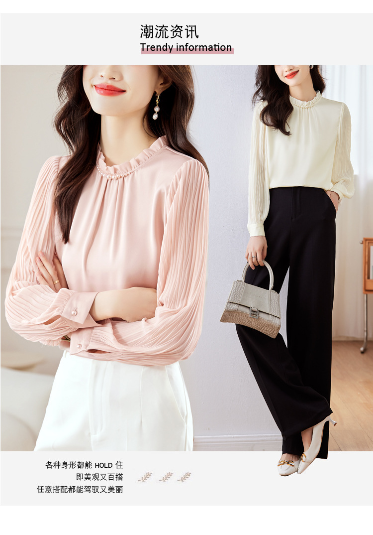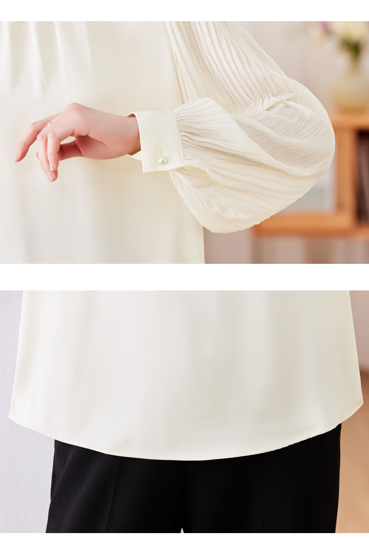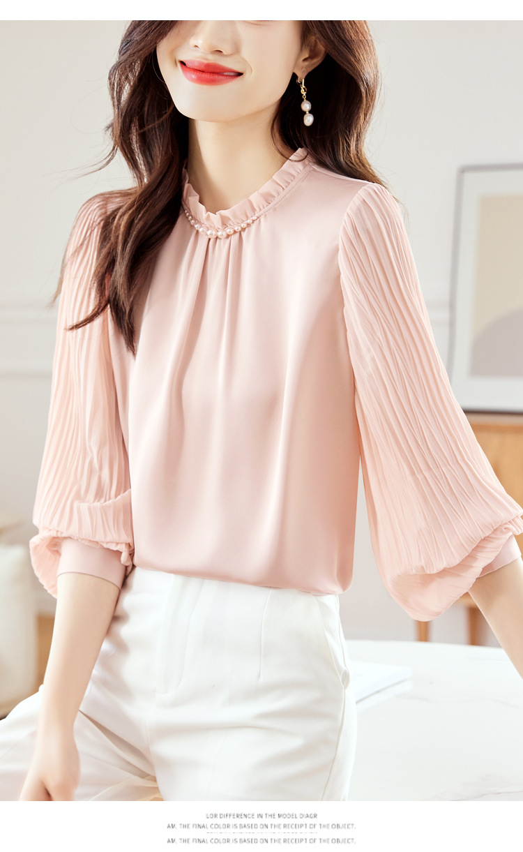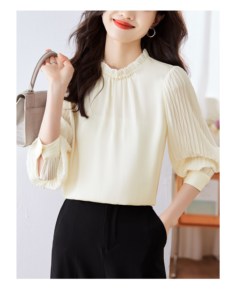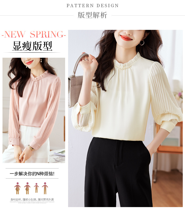 KQL-645T8388纯色压褶泡泡袖雪纺衫女2023新款秋季简约时尚洋气质小衫上衣