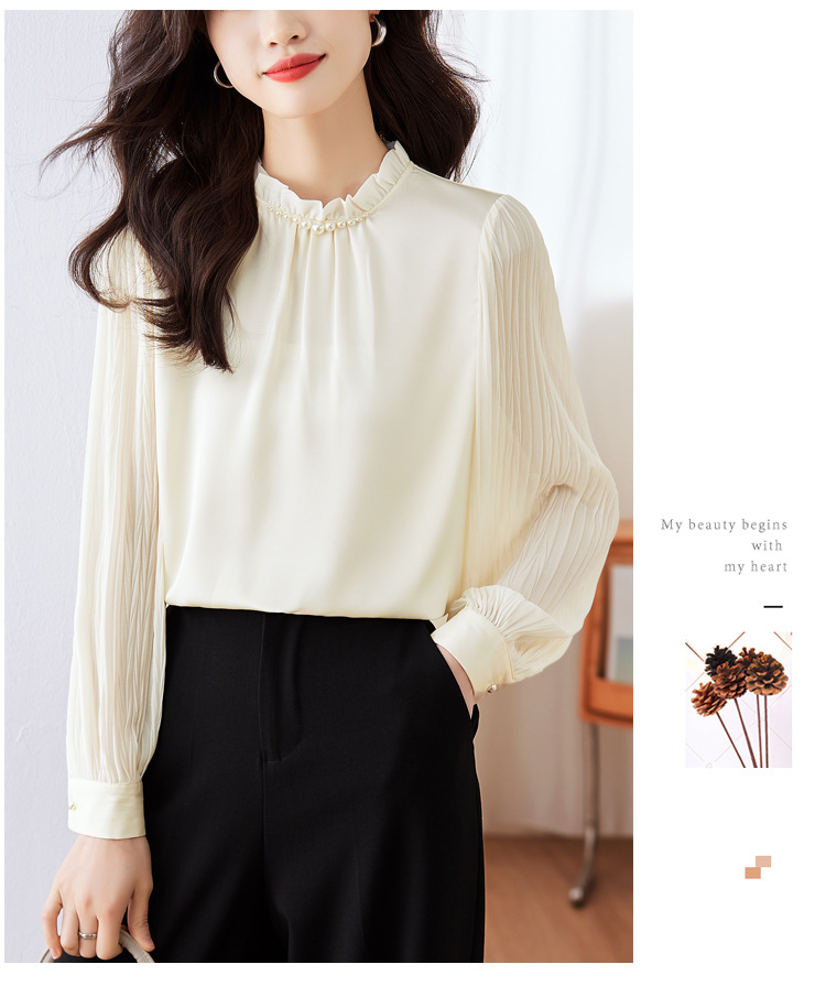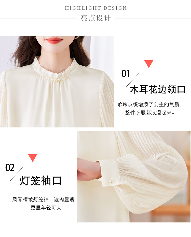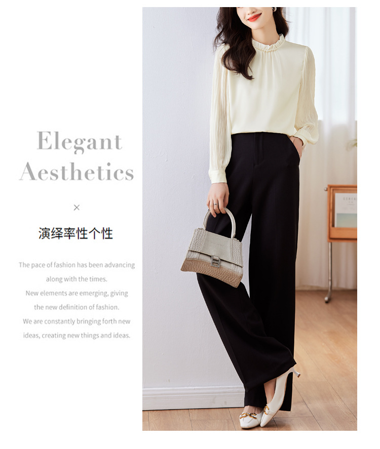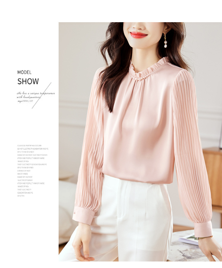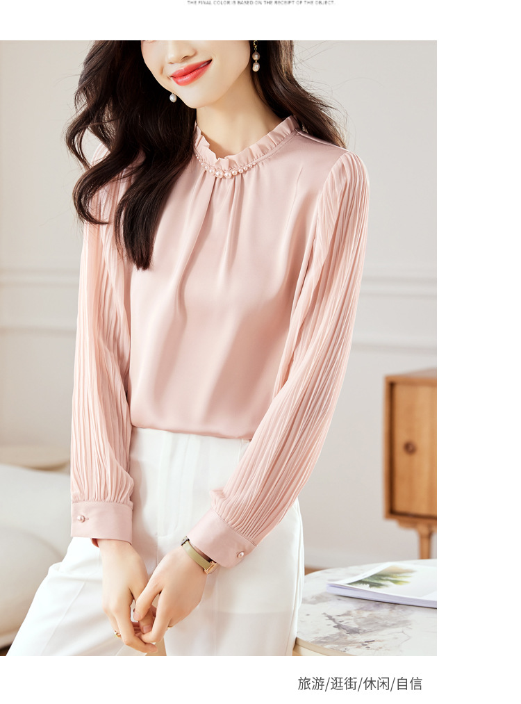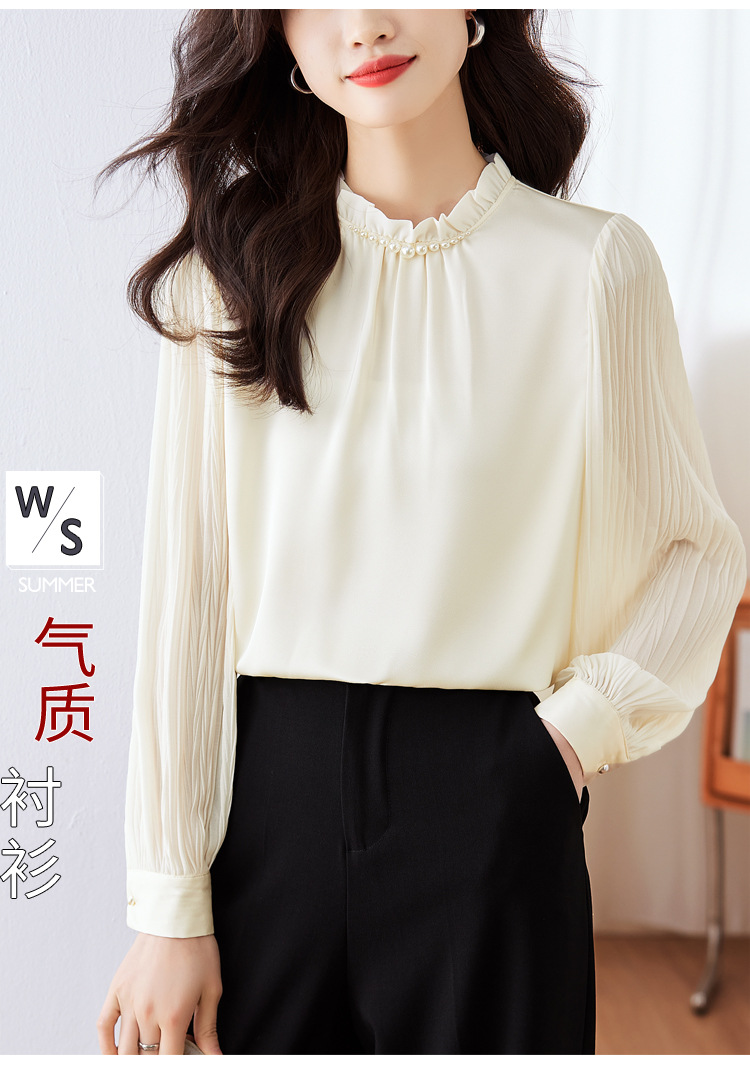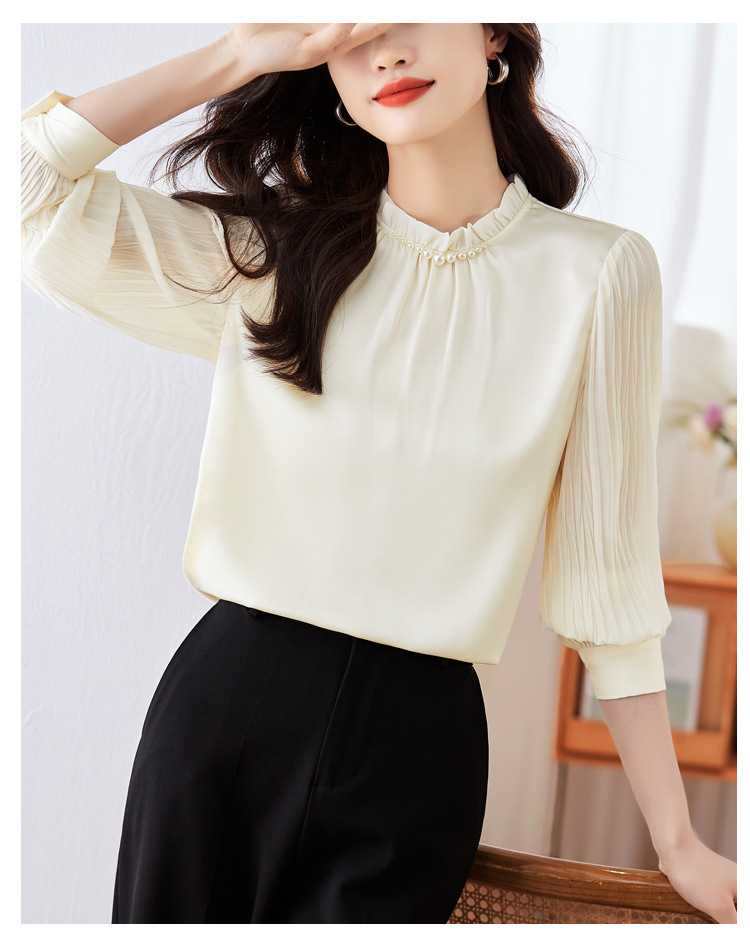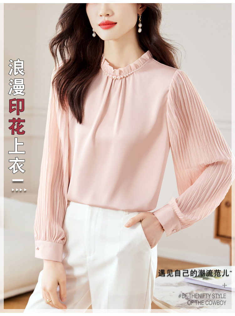 KQL-645T8388纯色压褶泡泡袖雪纺衫女2023新款秋季简约时尚洋气质小衫上衣