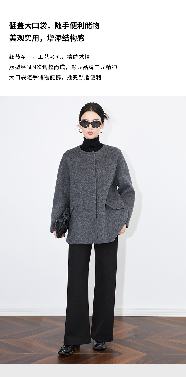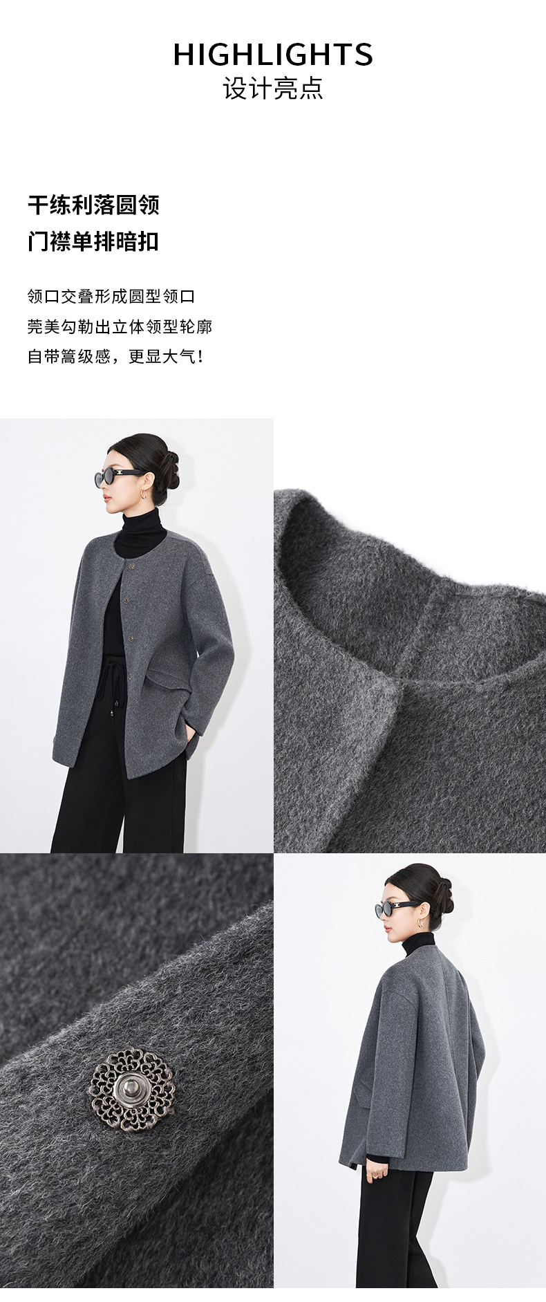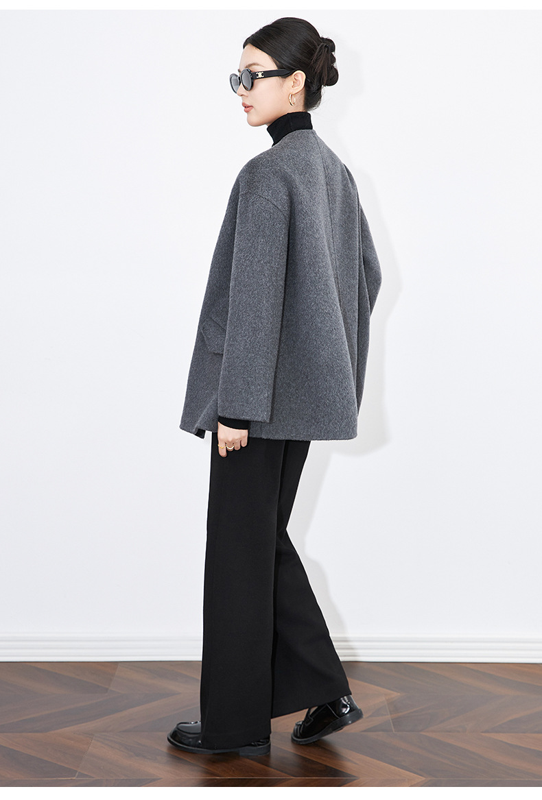 【高货wl】全新升级【铂金会员569/天猫779/差价210】(13005)洛诗琳秋冬新款纯羊毛气质高级感时髦圆领短款双面呢外套