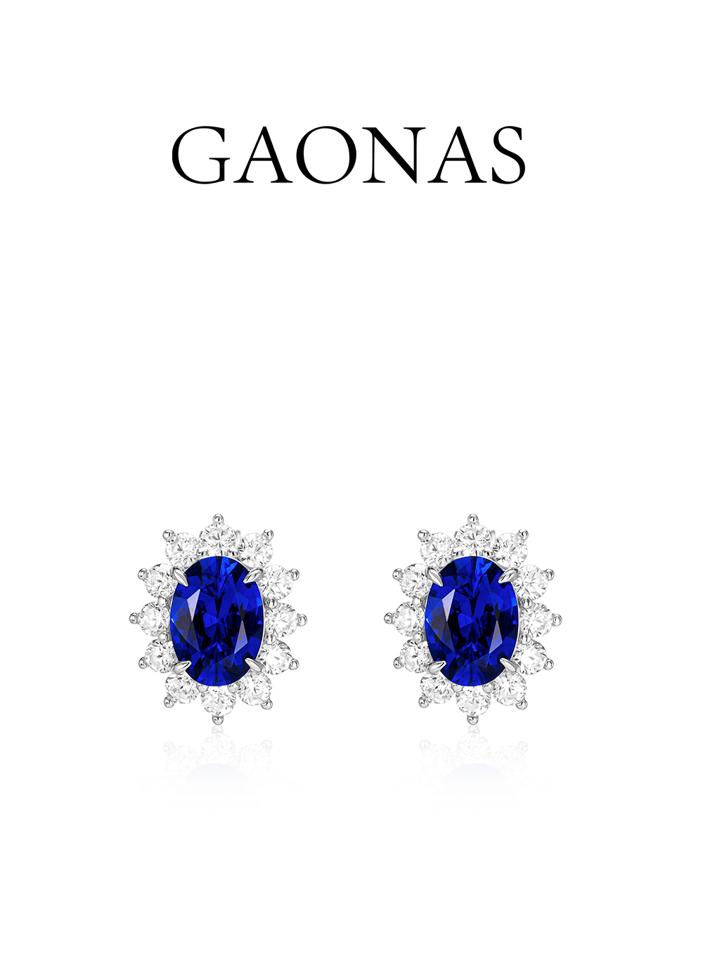 GAONAS 培育蓝宝石【矿工的眼泪】经典椭圆贵气奢华蓝色耳钉10161EB