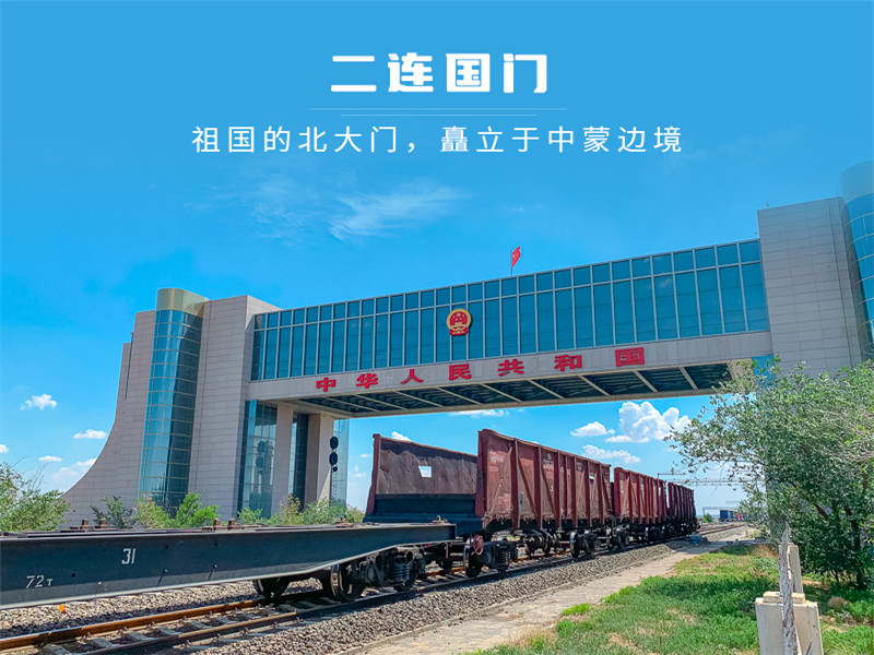二连国门被誉为祖国的北大门,矗立于中蒙边境, 门楣上嵌有“中华人民共和国”七个大字。国门横跨铁路,拾级而上,站在国门顶层向北远眺,具有俄罗斯建筑风格的蒙古国边城扎门乌德火车站大楼,具有民族特色的居民小木楼及具有草原风情的蒙古包群尽收眼底,通过高倍望远镜,蒙古边城扎门乌德可以一览无余。国门下方的中蒙铁路,是连接首都北京和乌兰巴托、莫斯科的铁路交通大动脉,被誉为“欧亚大陆桥”。