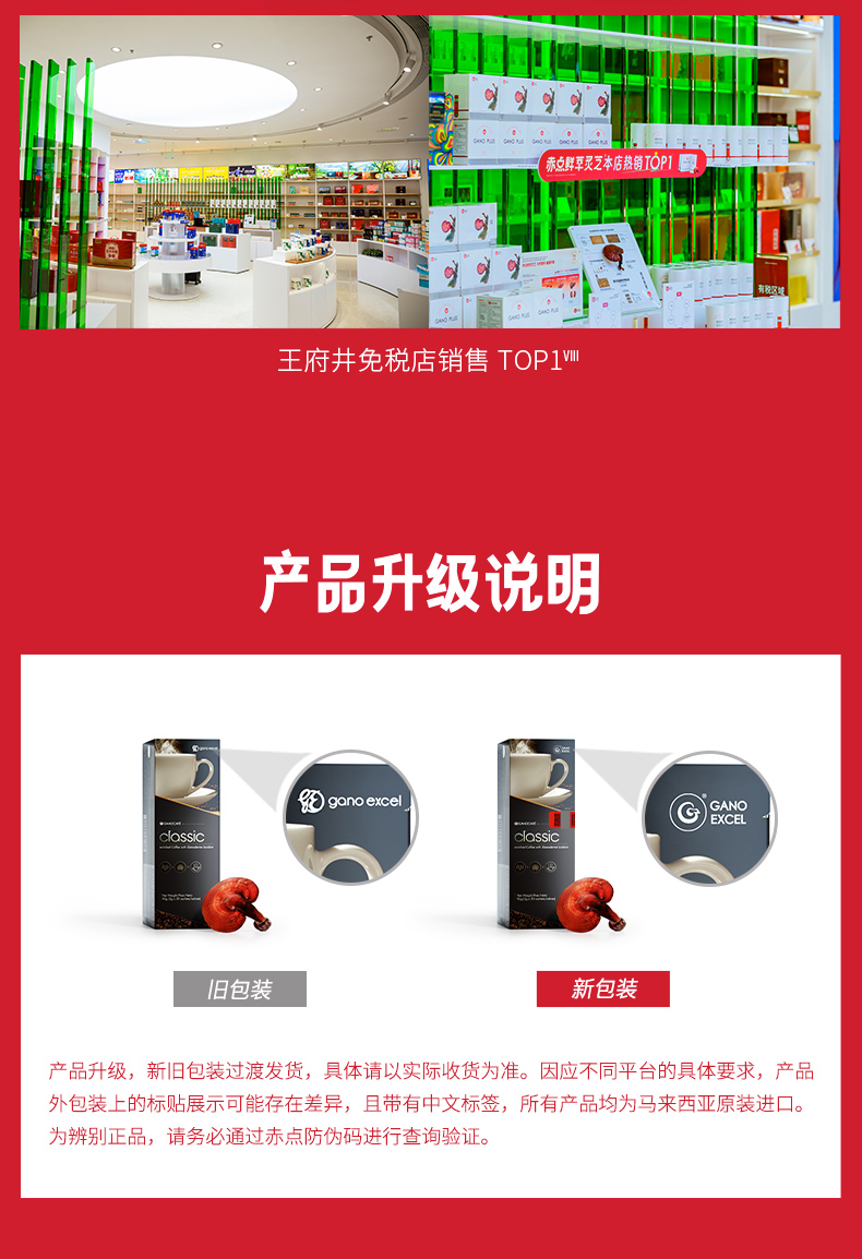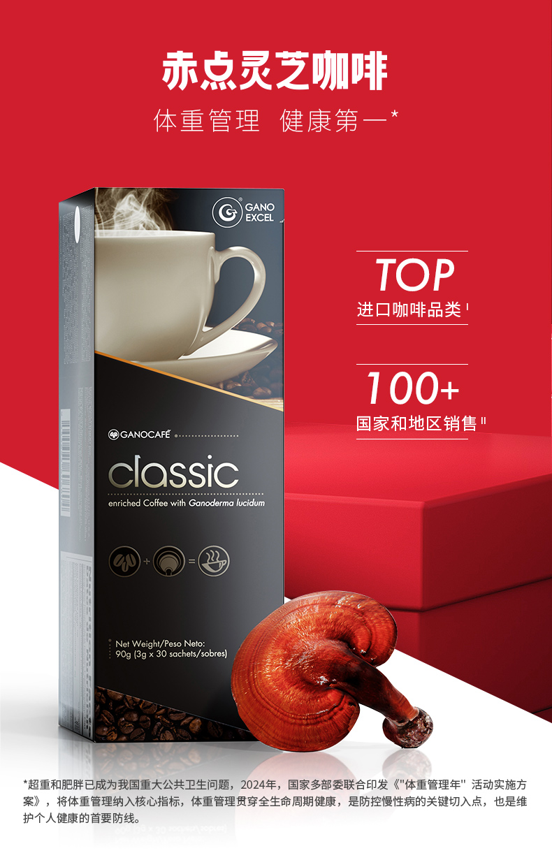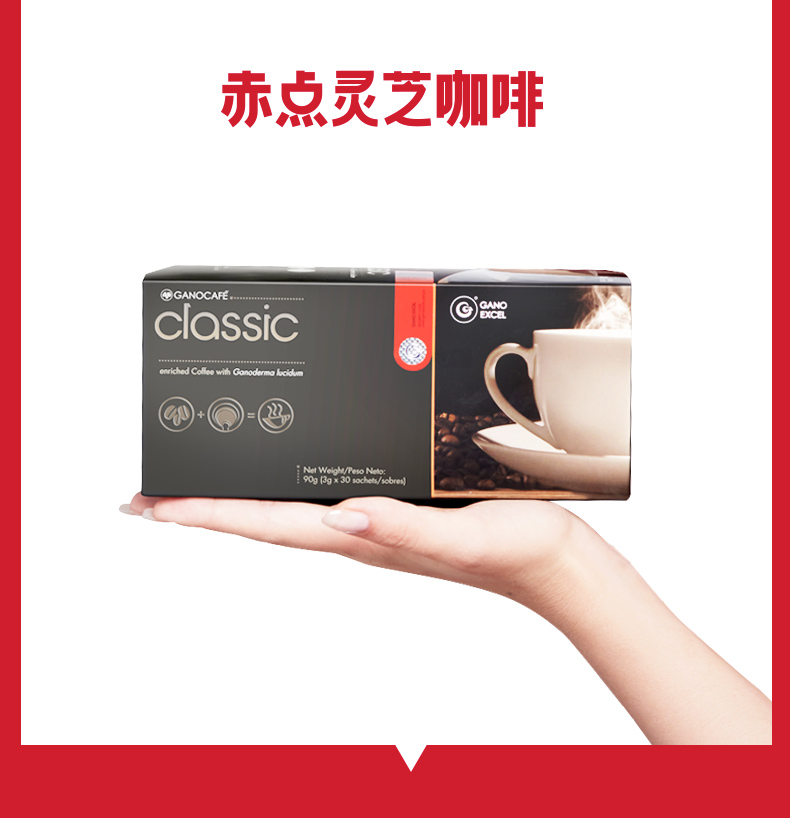 GanoExcel赤点灵芝黑咖啡鲜萃灵芝咖啡健身浓缩进口咖啡30杯装