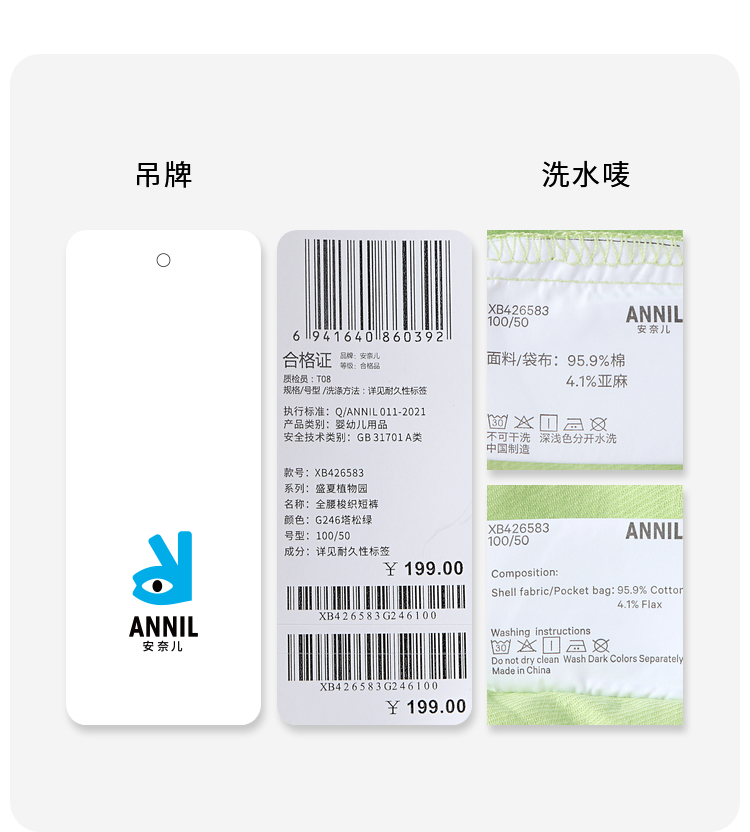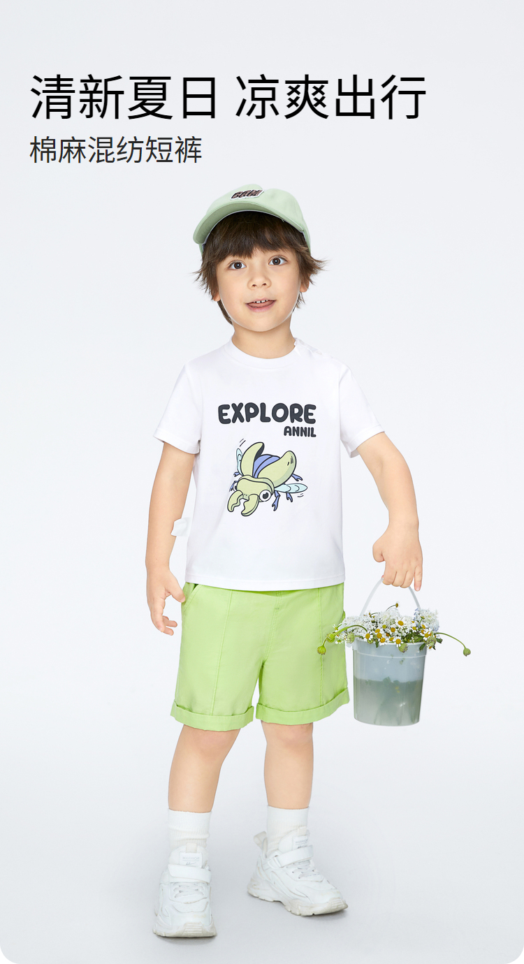 男童棉麻混纺短裤裤子新款安奈儿童装实体店同款XB426583
