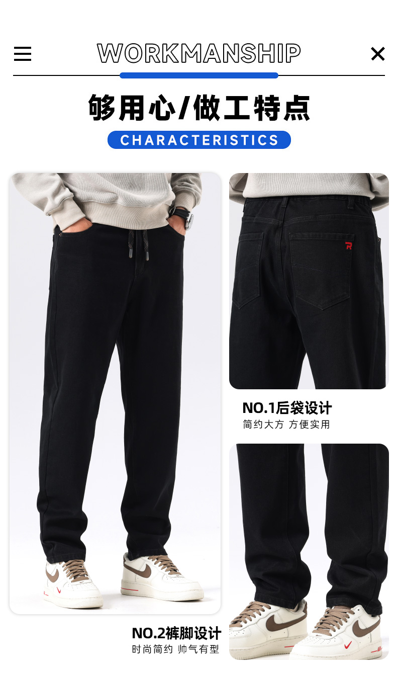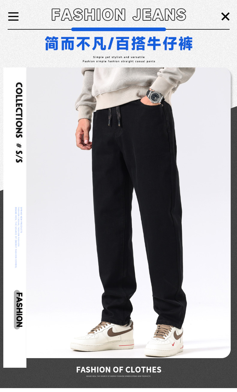 【新款DQ】大依优型大码直筒松紧腰牛仔裤长裤男舒适休闲简约百搭加肥加大男装潮款
