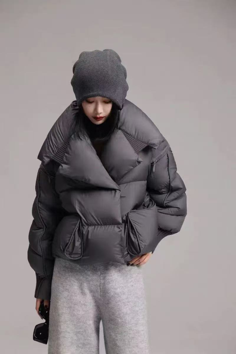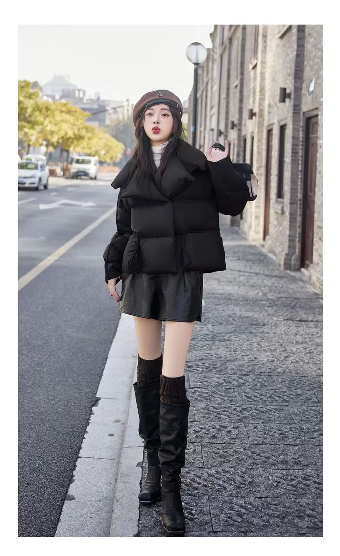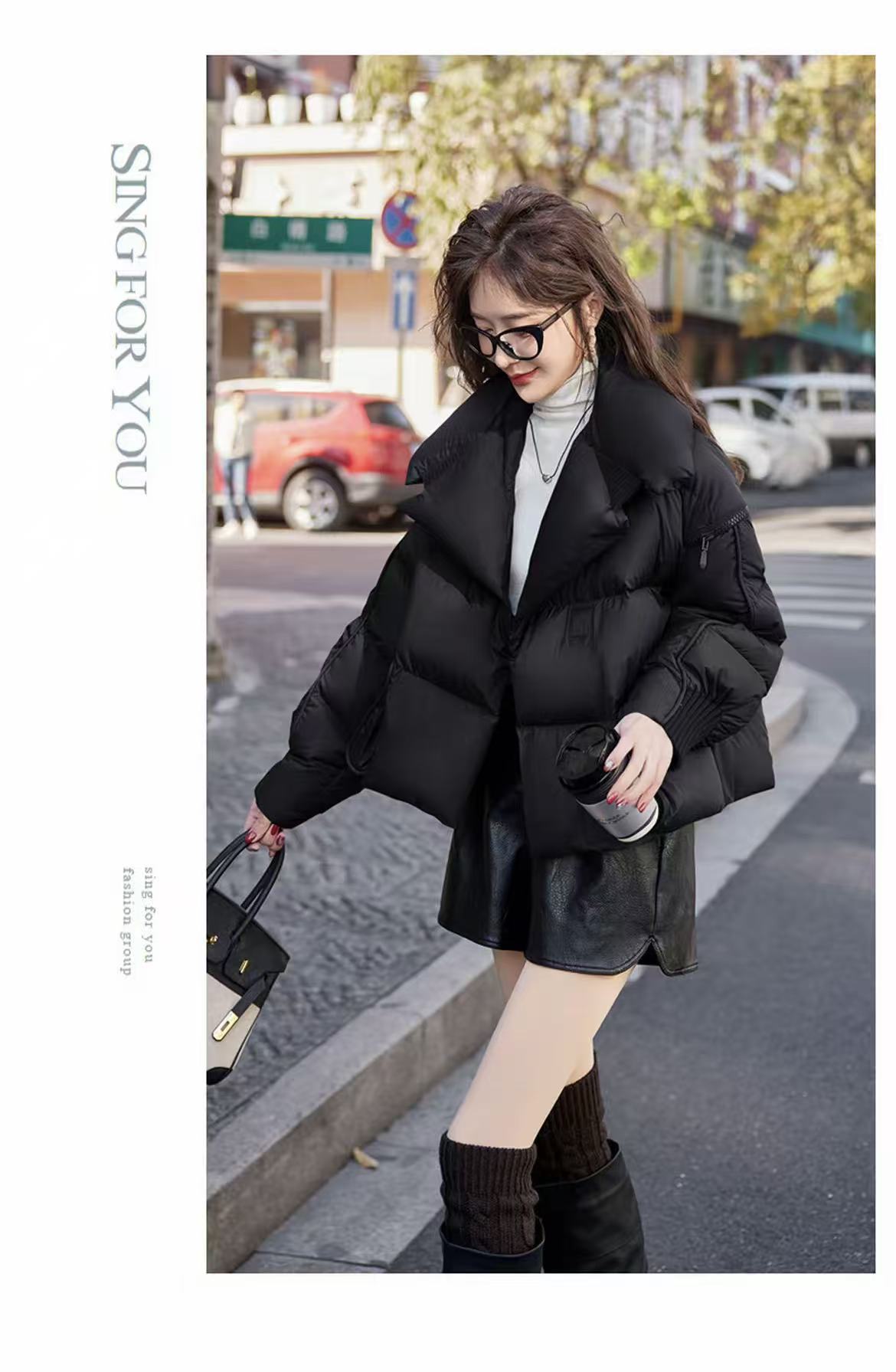 蓬松爆款【羽绒服】绒子含量90% 泡芙磁吸扣翻领蓬松保暖短款羽绒服-喜出