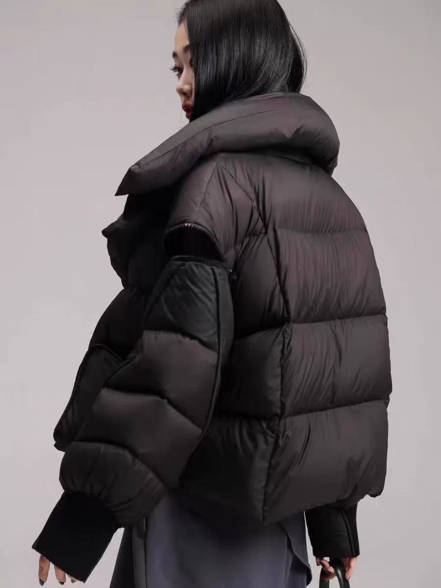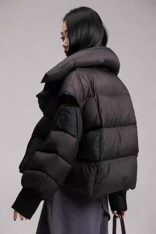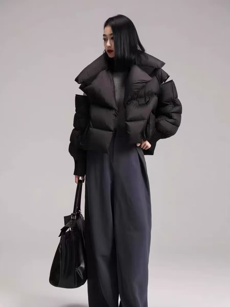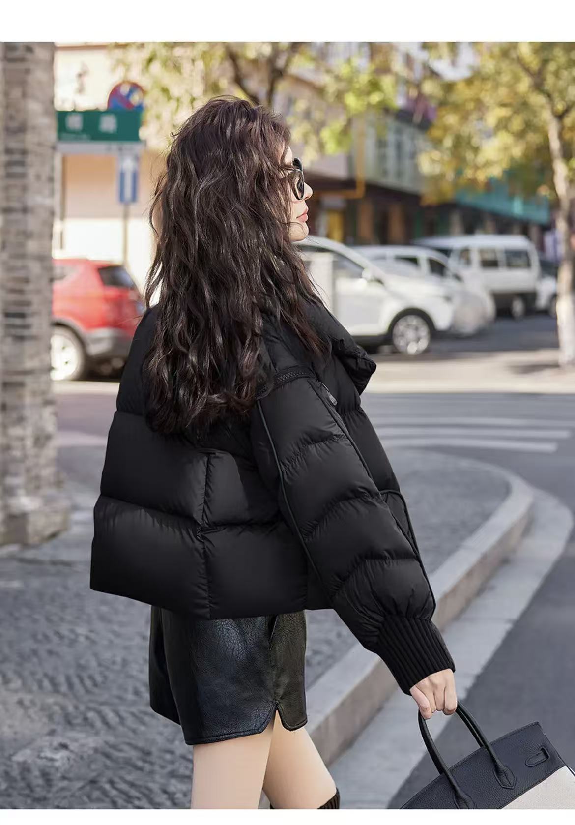 蓬松爆款【羽绒服】绒子含量90% 泡芙磁吸扣翻领蓬松保暖短款羽绒服-喜出
