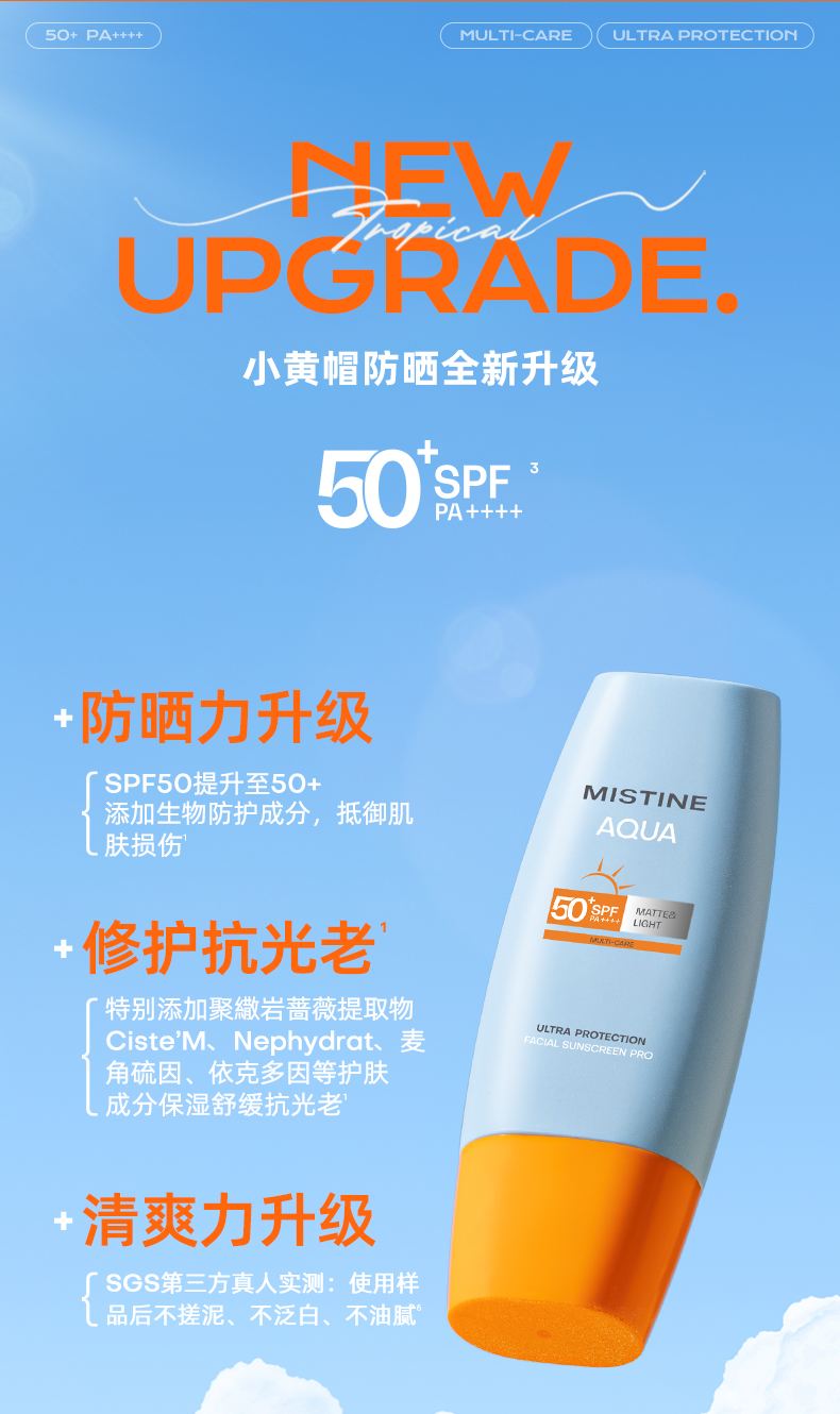 蜜丝婷mistine防晒小黄帽防晒霜60ml PA++++