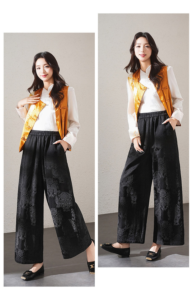 提花九分裤2026年早春新款阔腿裤宽松休闲裤QYM-K607