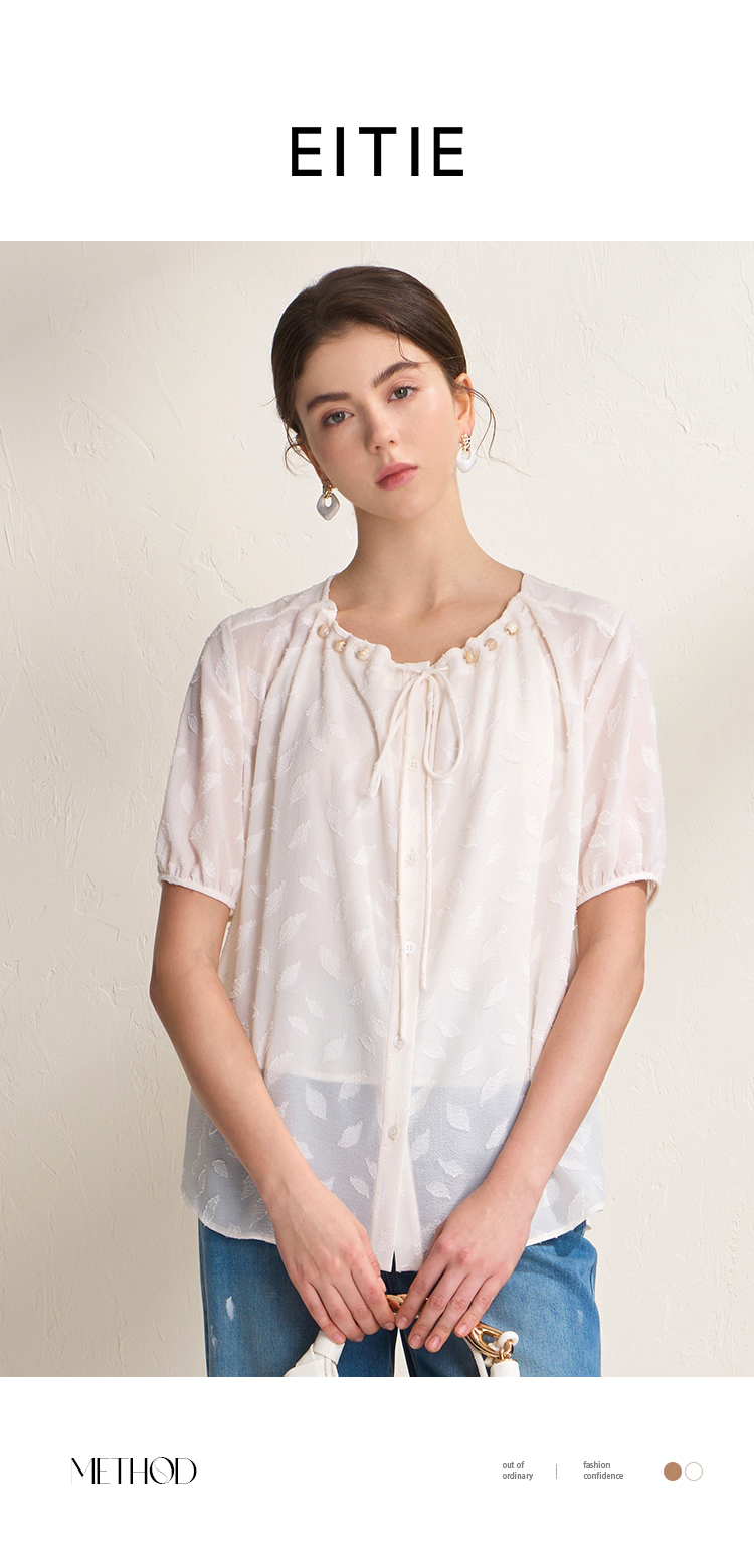 EITIE/爱特爱可机洗羊毛通勤气质衬衫式显瘦纯色针织开衫秋新款C2301220