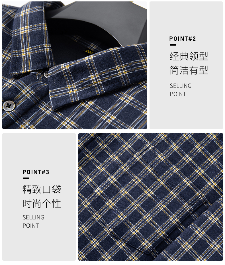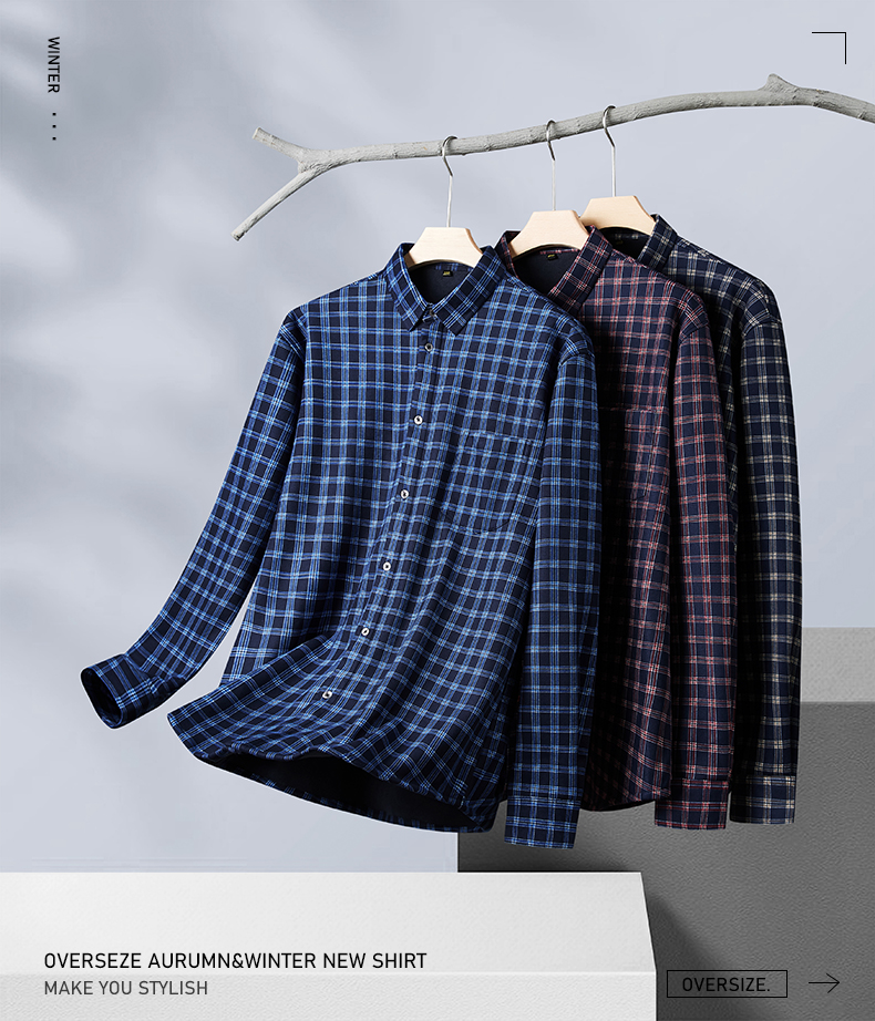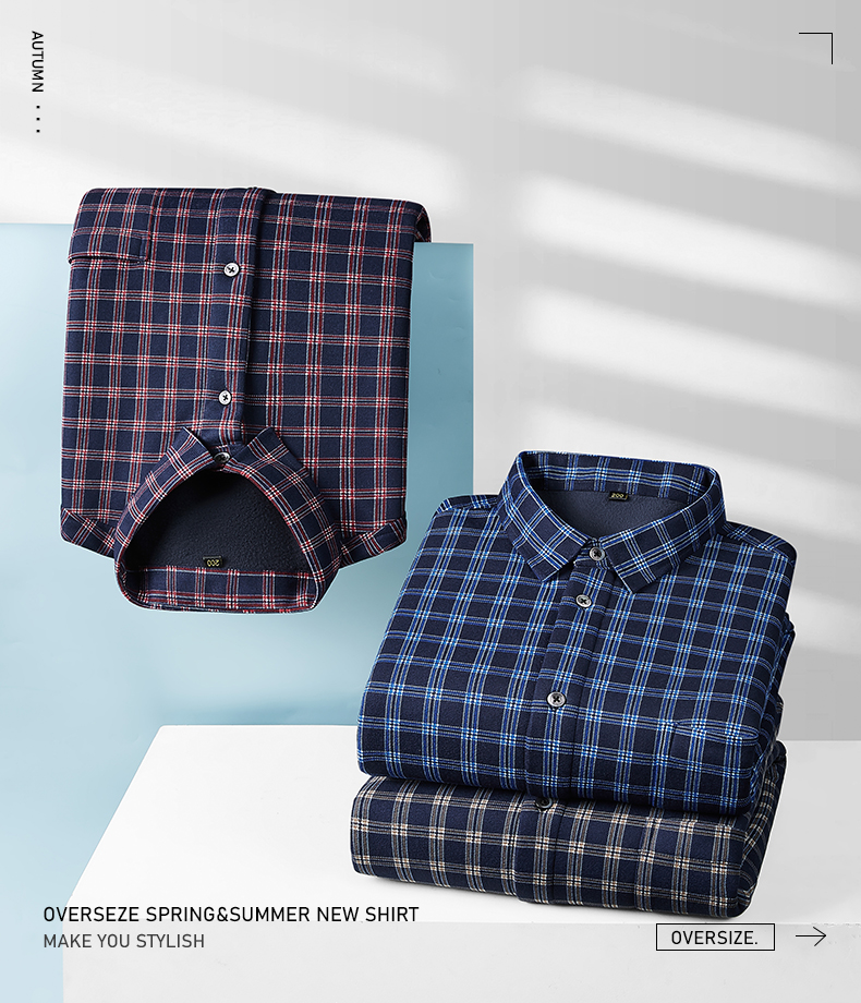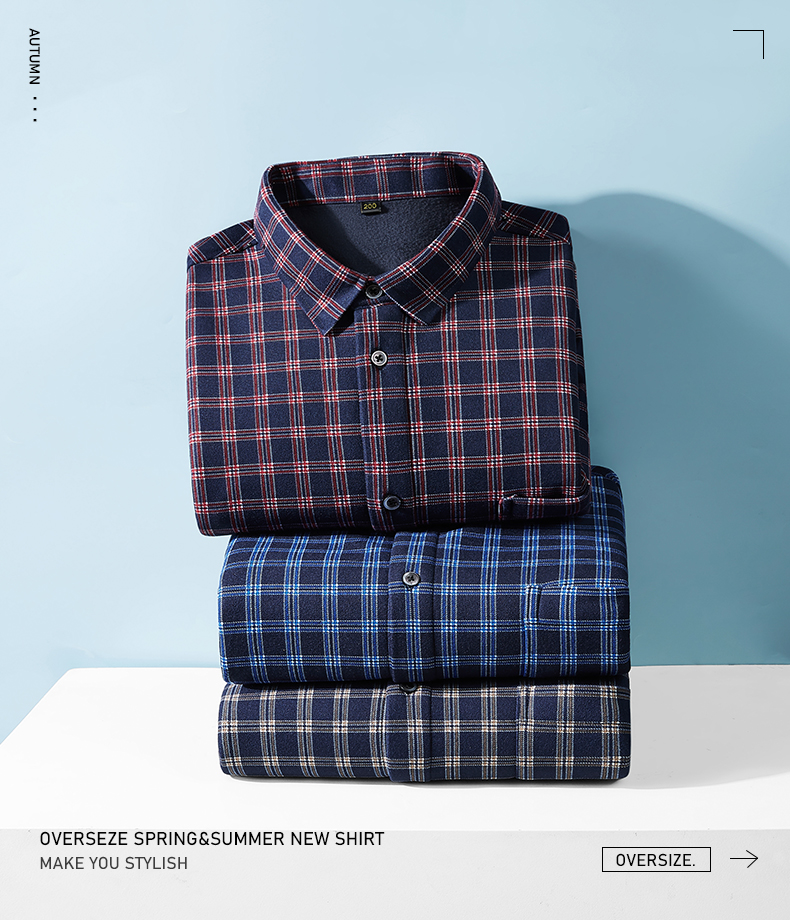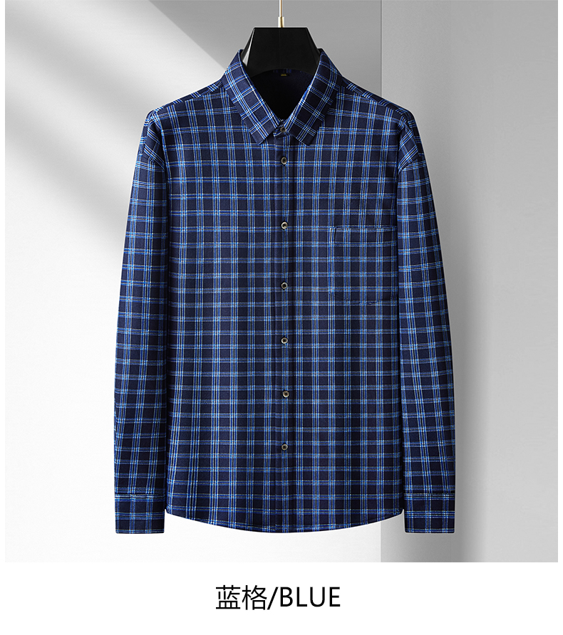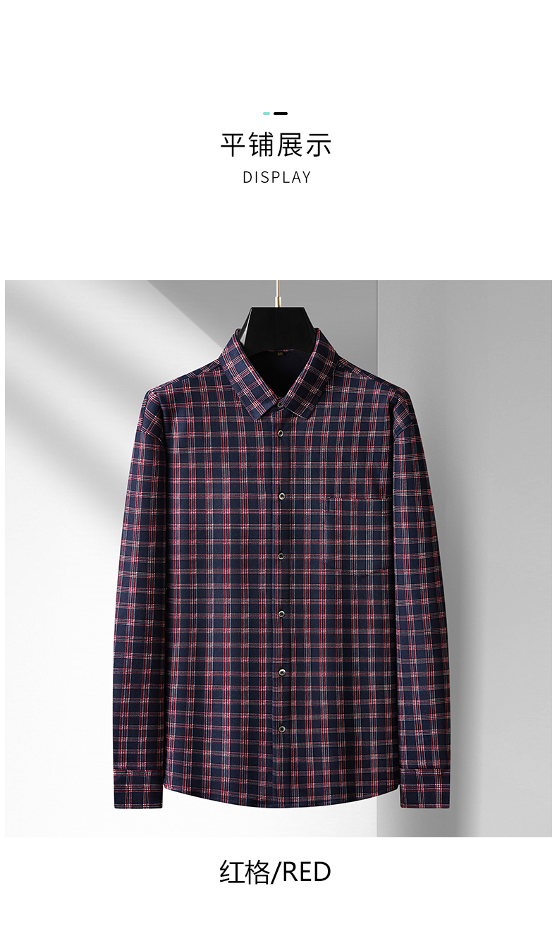 【加绒】【新款DM】大依优型大码加绒高弹长袖衬衫男宽松加肥加大码男士休闲商务方格衬衣上衣胖子