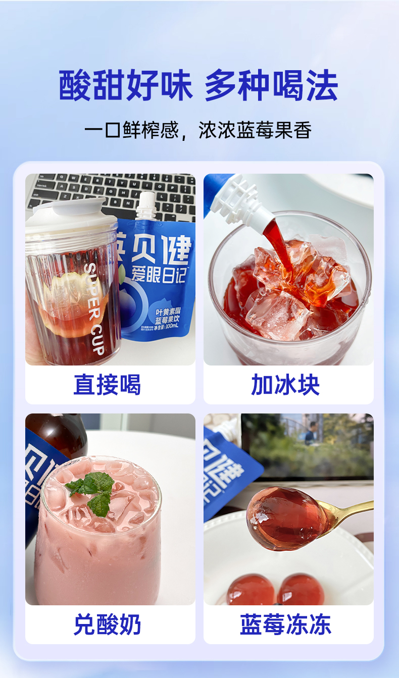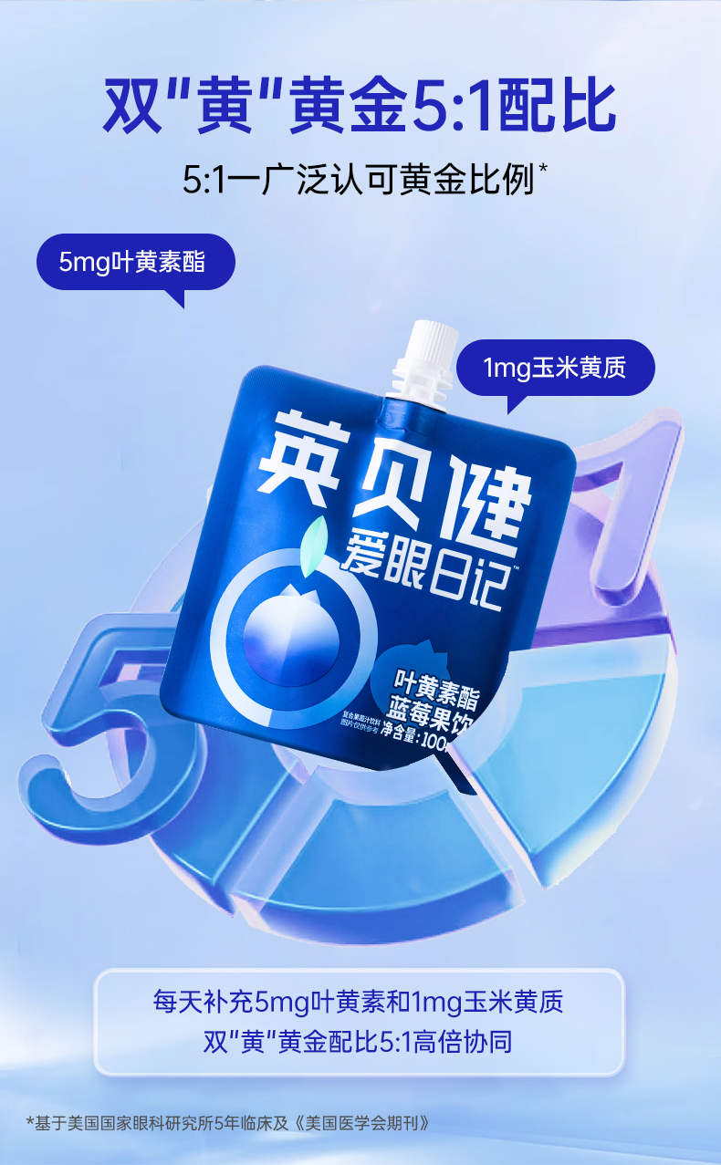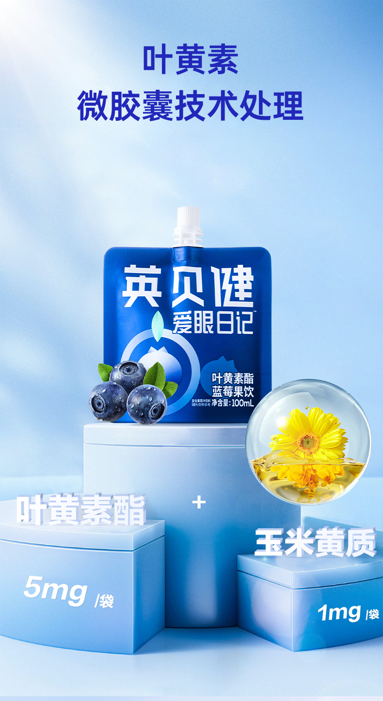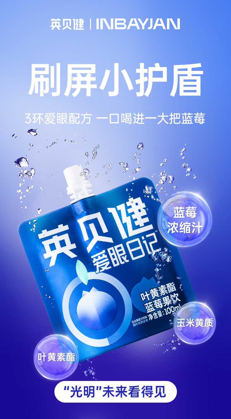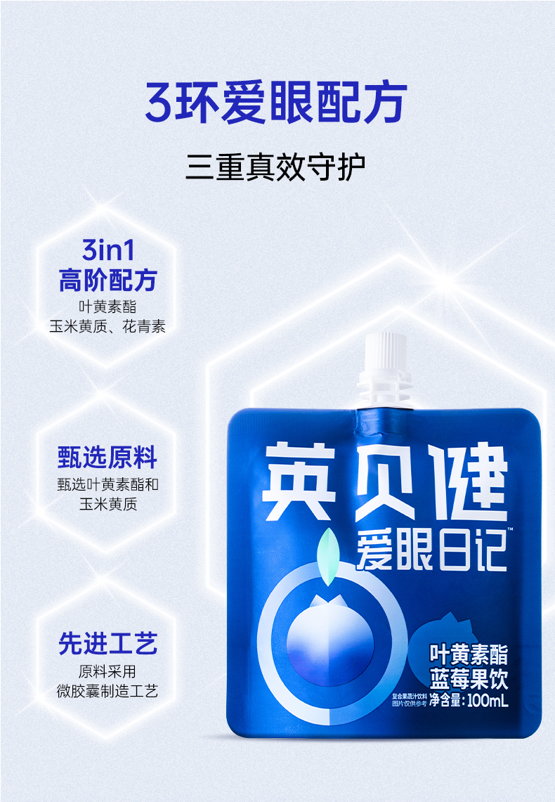 英贝健爱眼日记叶黄素酯蓝莓汁饮100ml*14袋✅ 3环爱眼配方:叶黄素酯+玉米黄质+蓝莓,5:1黄金配比