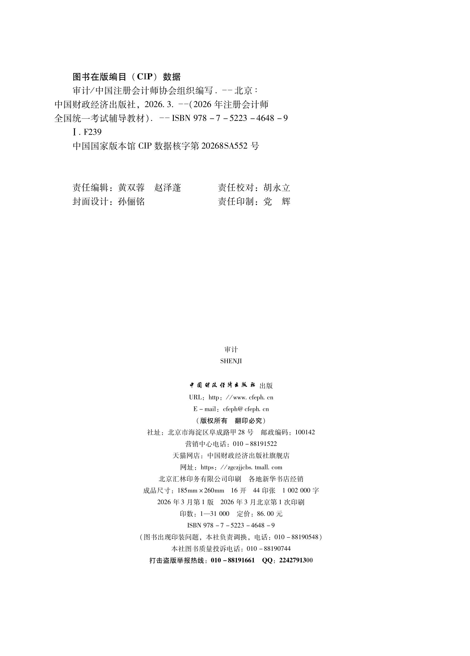 审计(2026年注会教材)2026年注册会计师全国统一考试辅导教材 CPA注会 中国注册会计师协会组织编写
