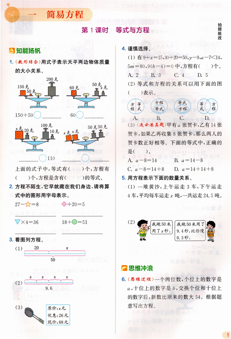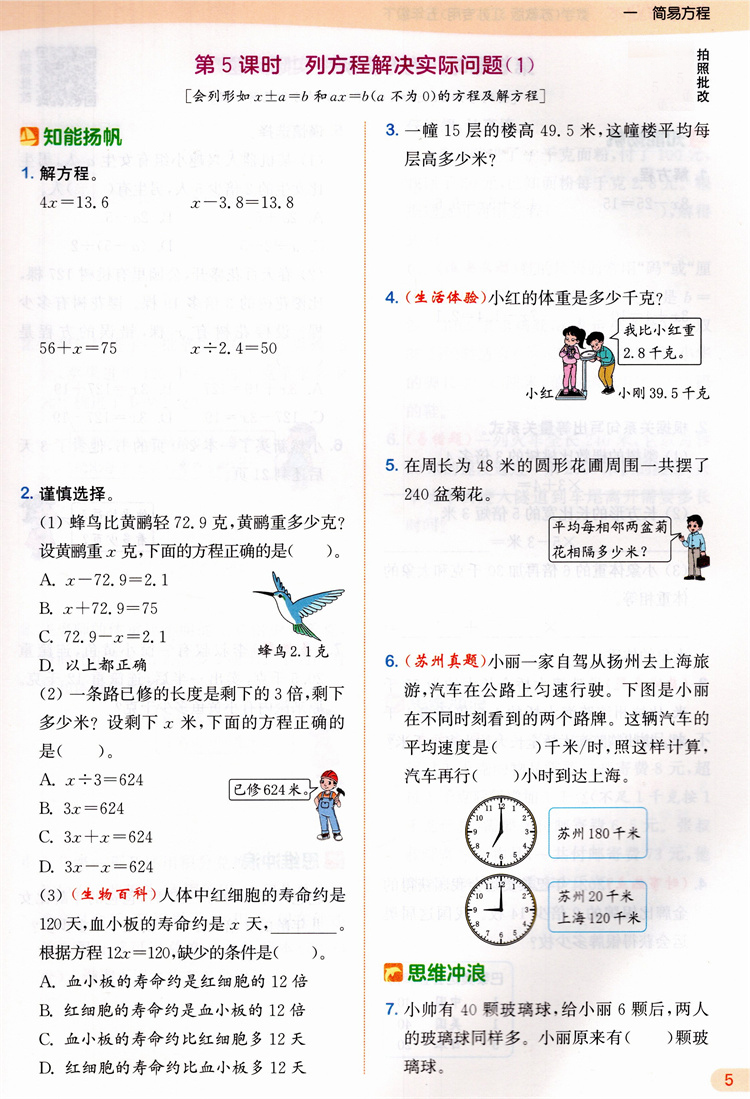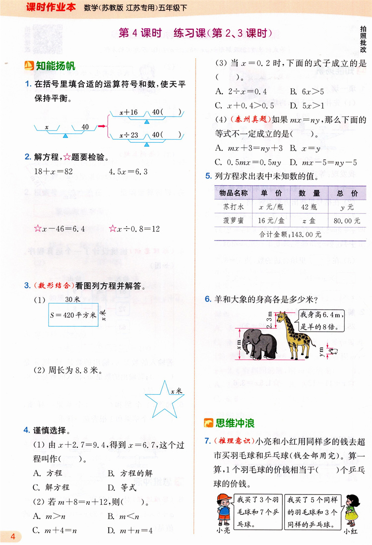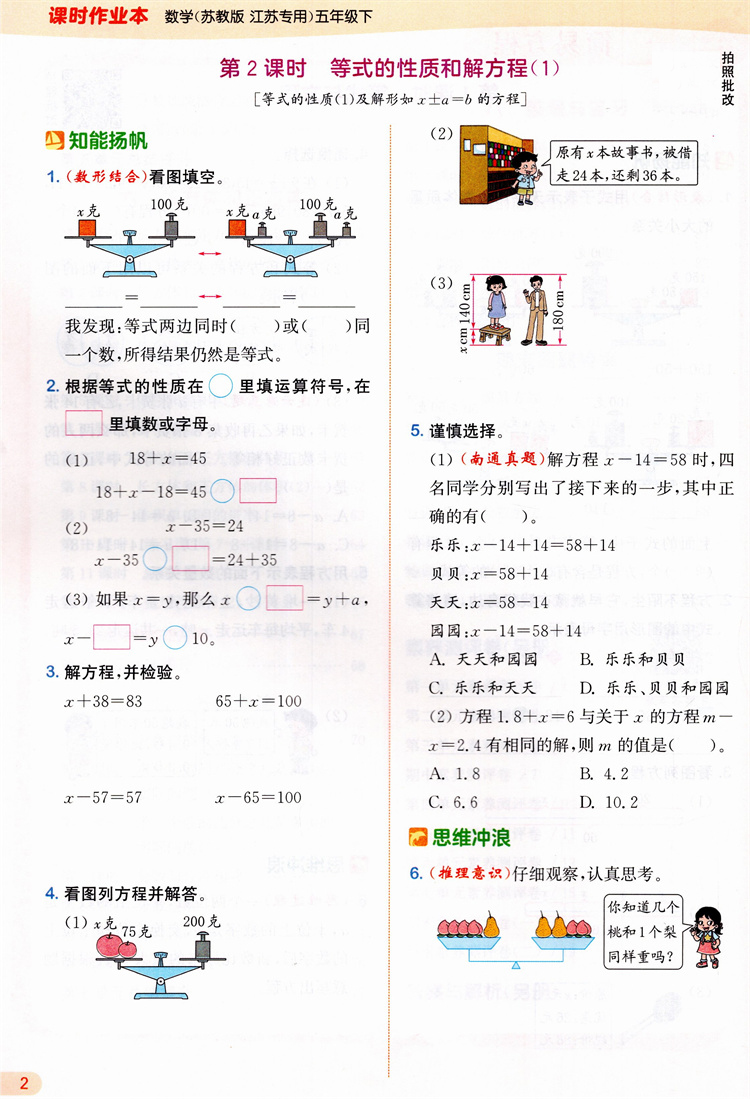 2026春 课时作业本 数学5下 五年级下册 苏教版 小学教辅 教材辅导培优同步练习 通城学典 浙江教育出版社