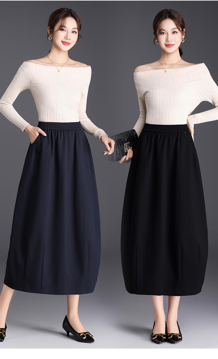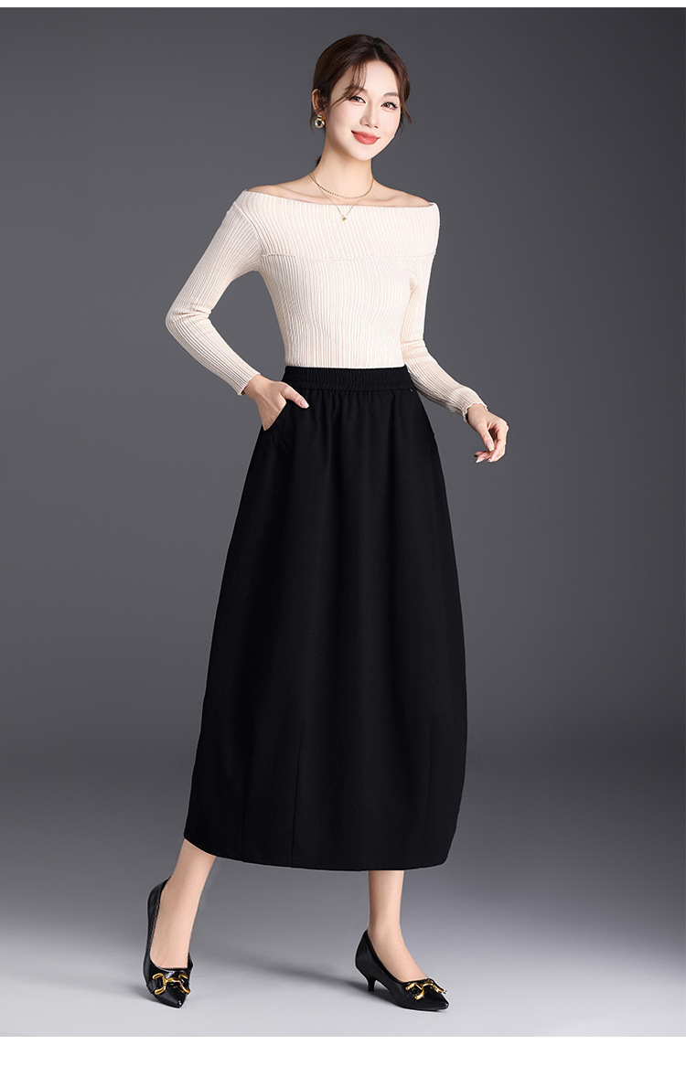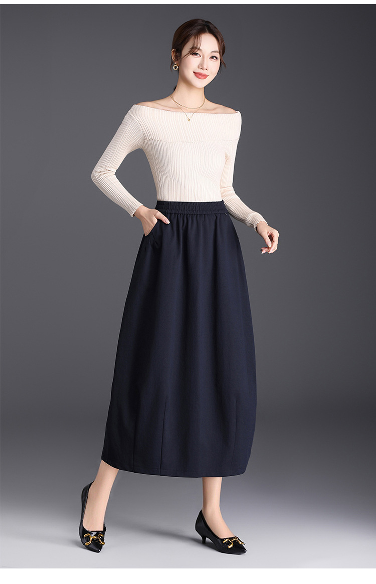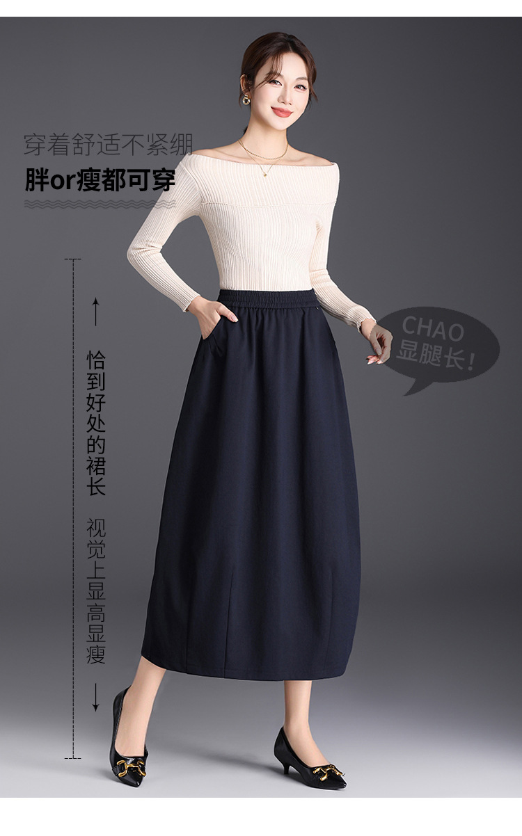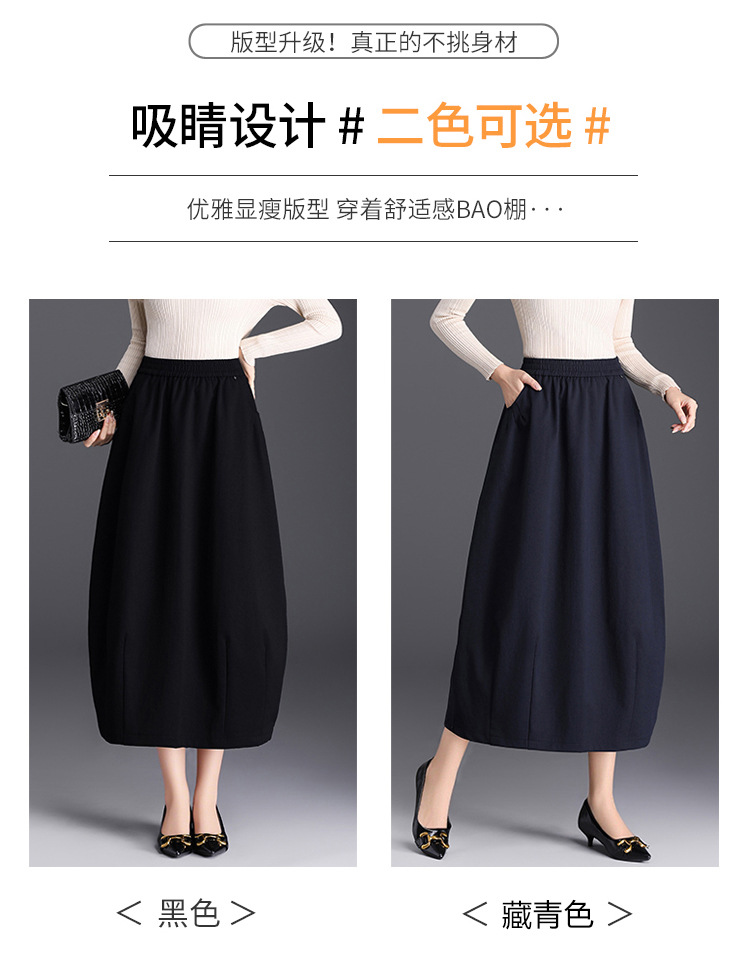 QYM 2588-Y花苞灯笼裙松紧高腰半身裙时尚口袋中长裙