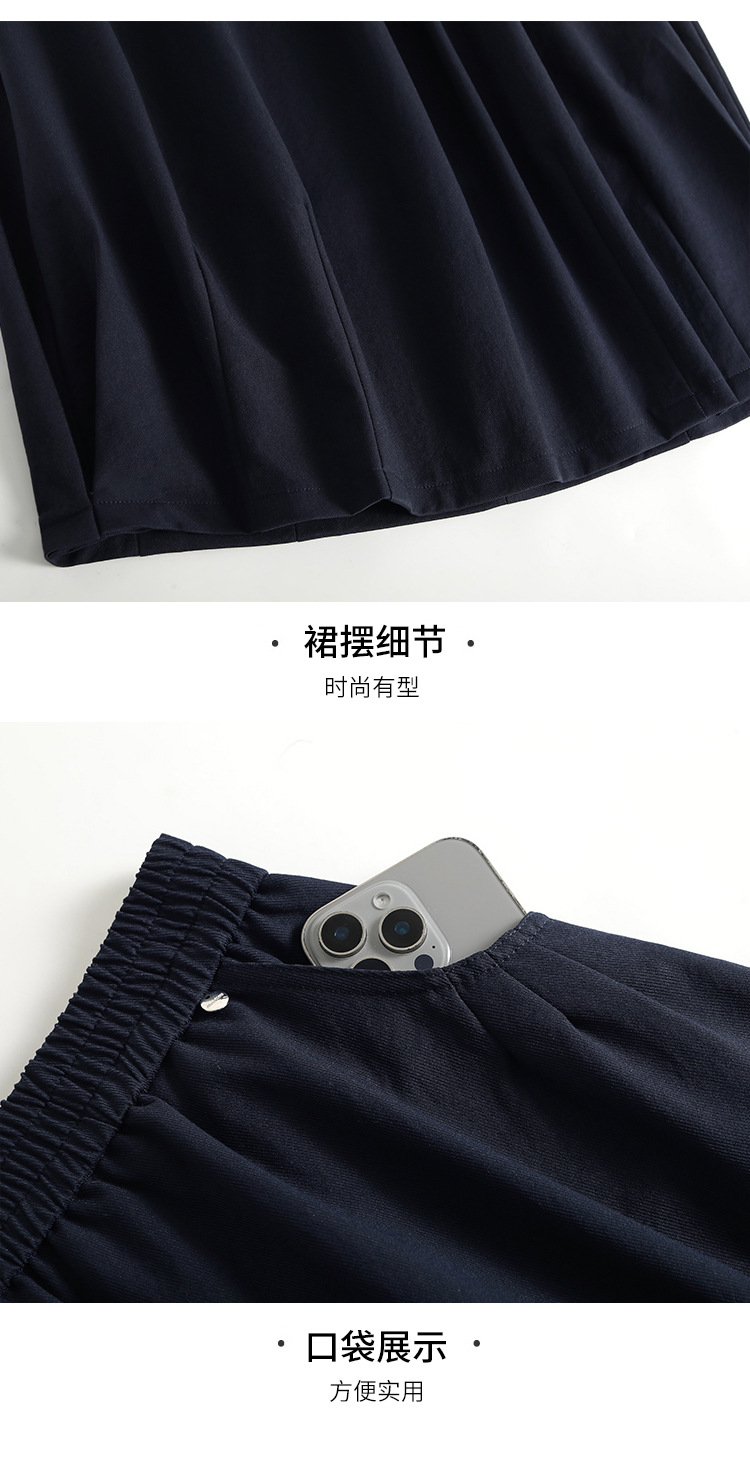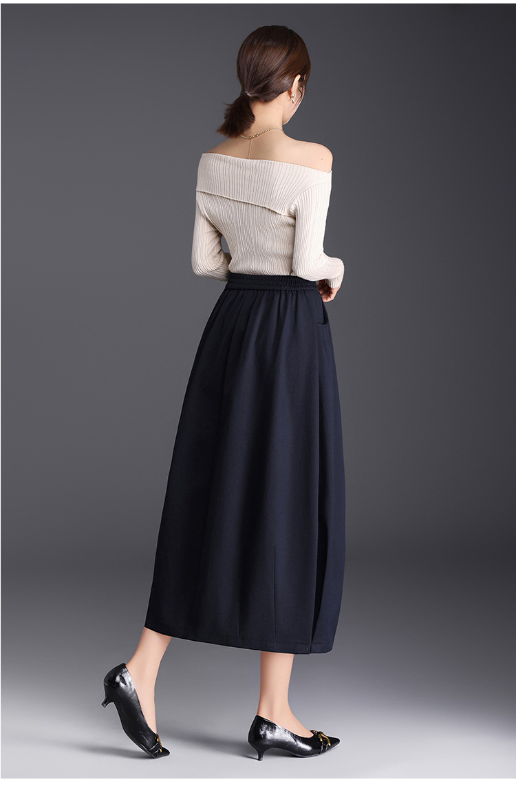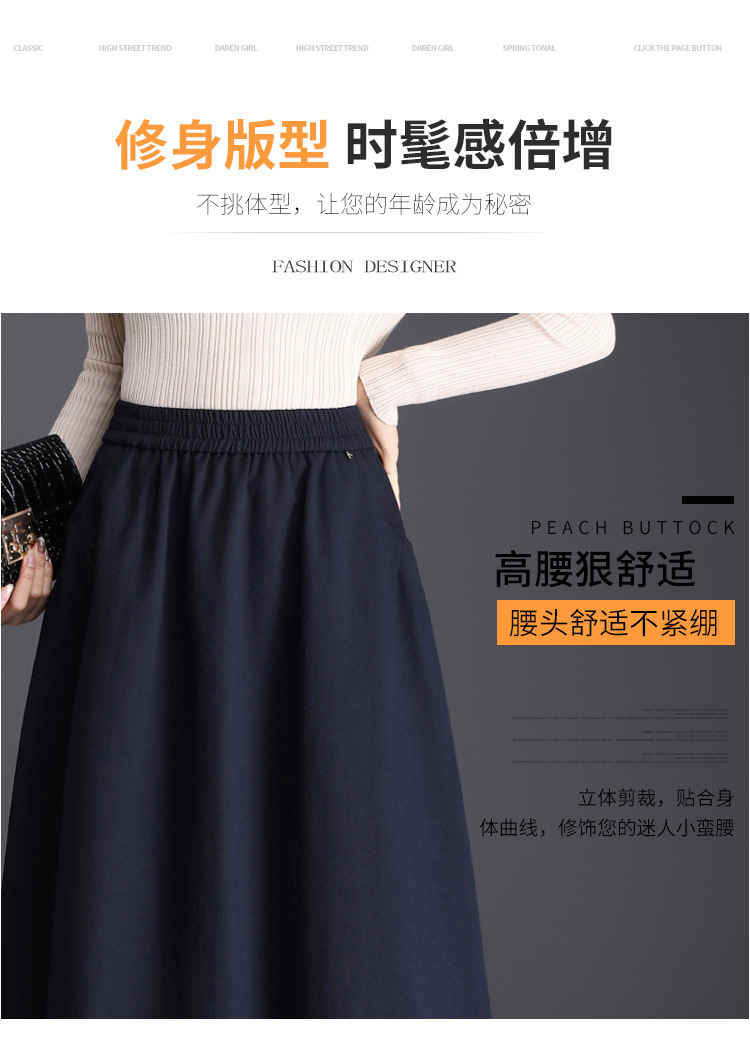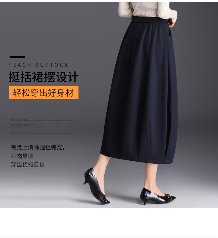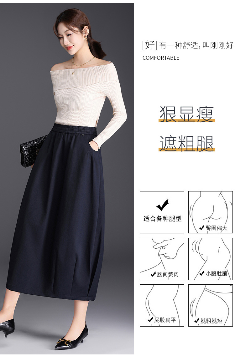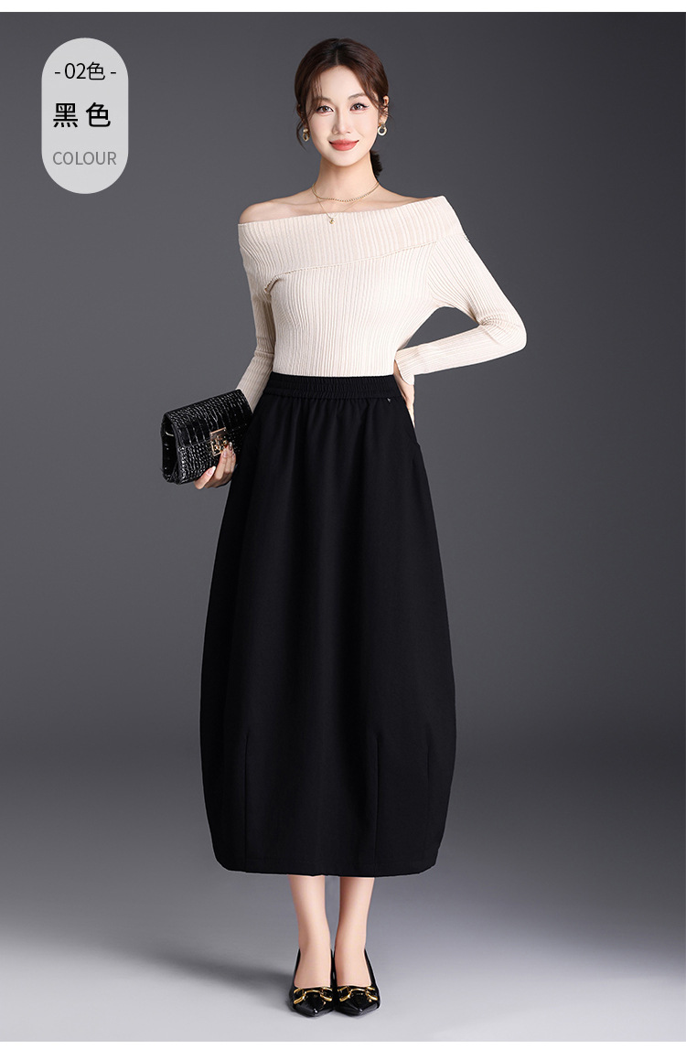 QYM 2588-Y花苞灯笼裙松紧高腰半身裙时尚口袋中长裙